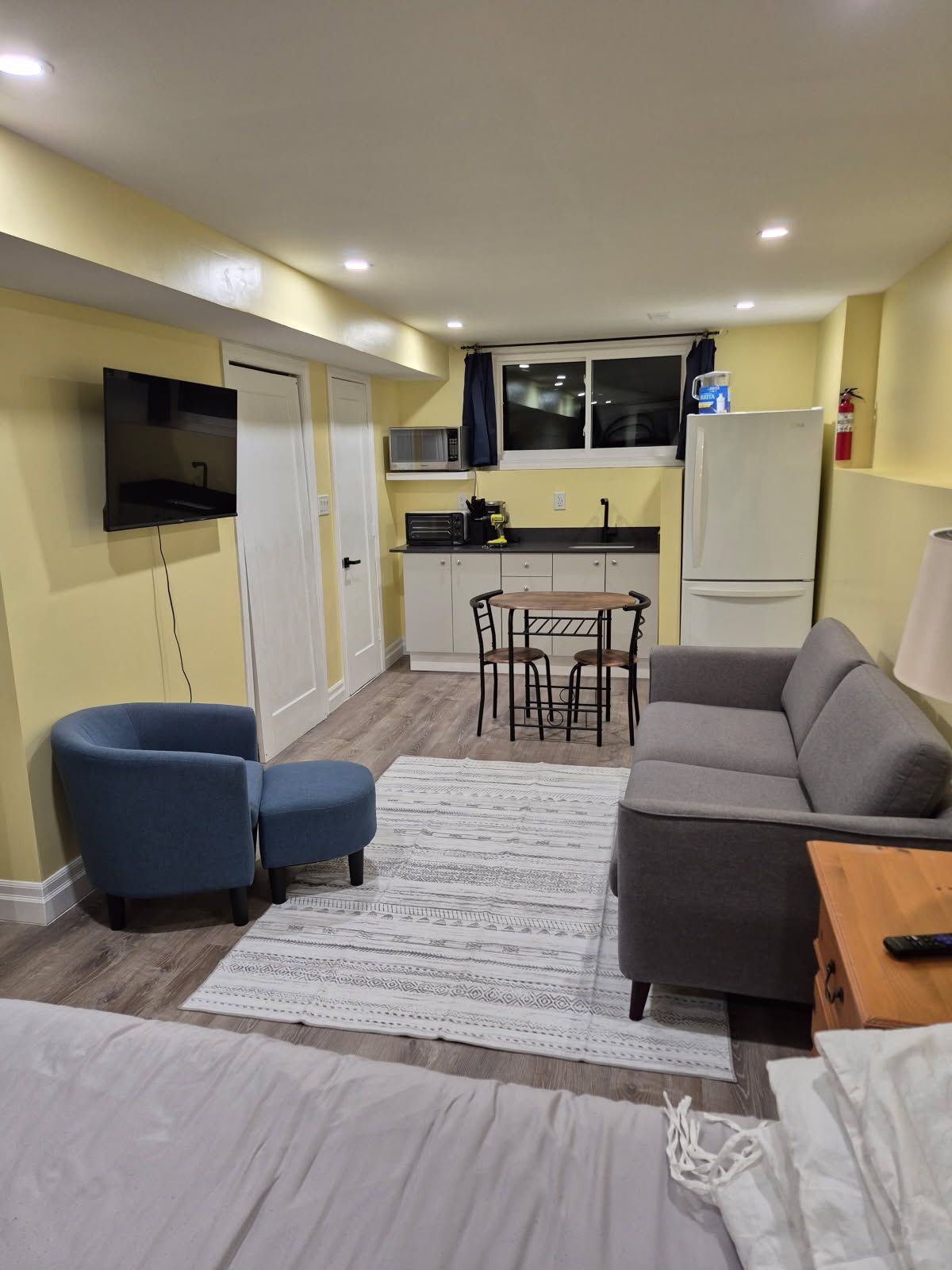 Fully furnished and equipped bachelor rental basement apartment of approximately 350 sq. Ft.. It is ready for immediate occupancy. The main entrance is shared, and there is a common laundry room available for both basement unit tenants. Heat, hydro, and water are included. All furnishings shown in the photos are provided. Driveway parking is available for one vehicle. The unit is bright and includes shared use of the backyard. One closet is available for the tenant; the second closet will remain locked for the landlord's storage. The landlord resides on the main level.