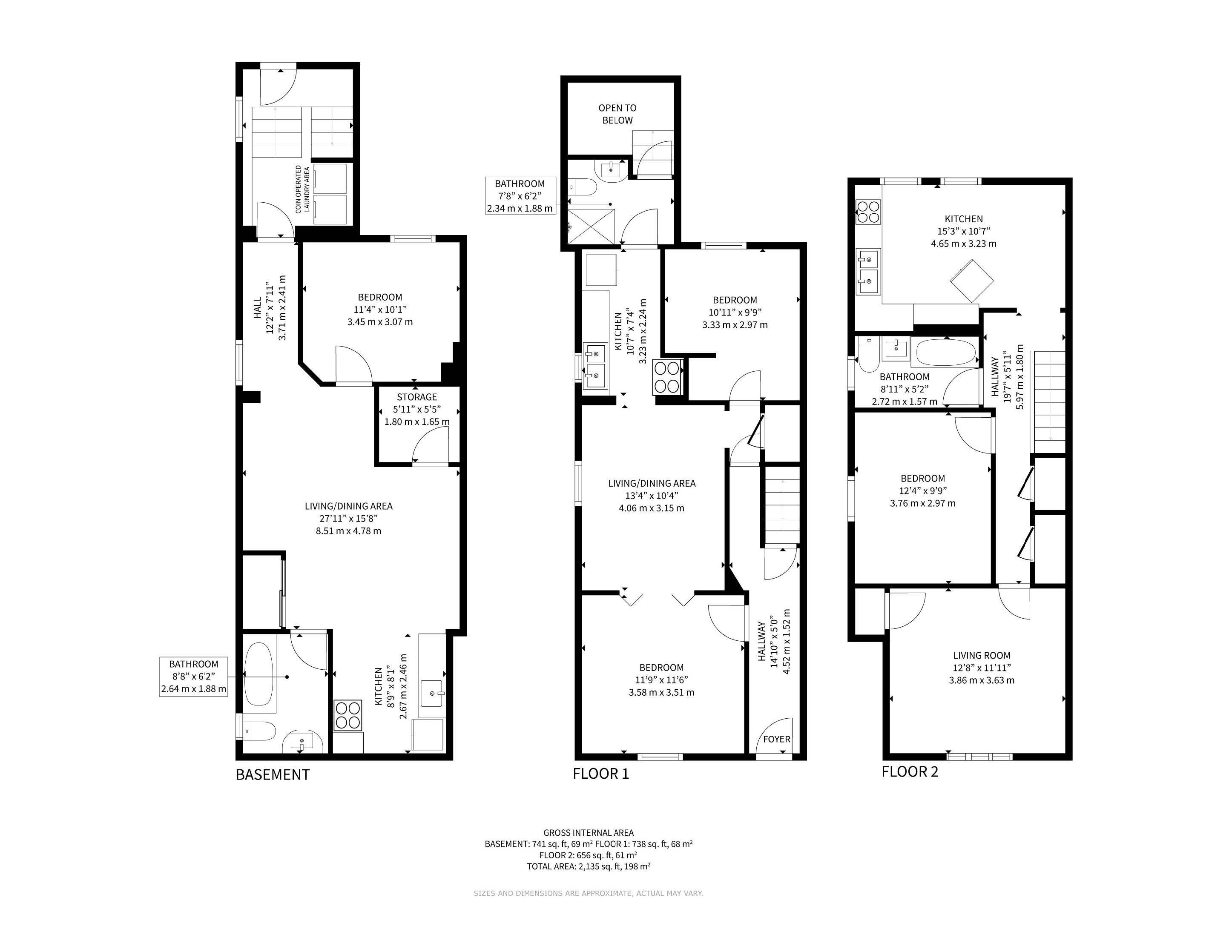 • Upper unit features a bright living room and generous kitchen.