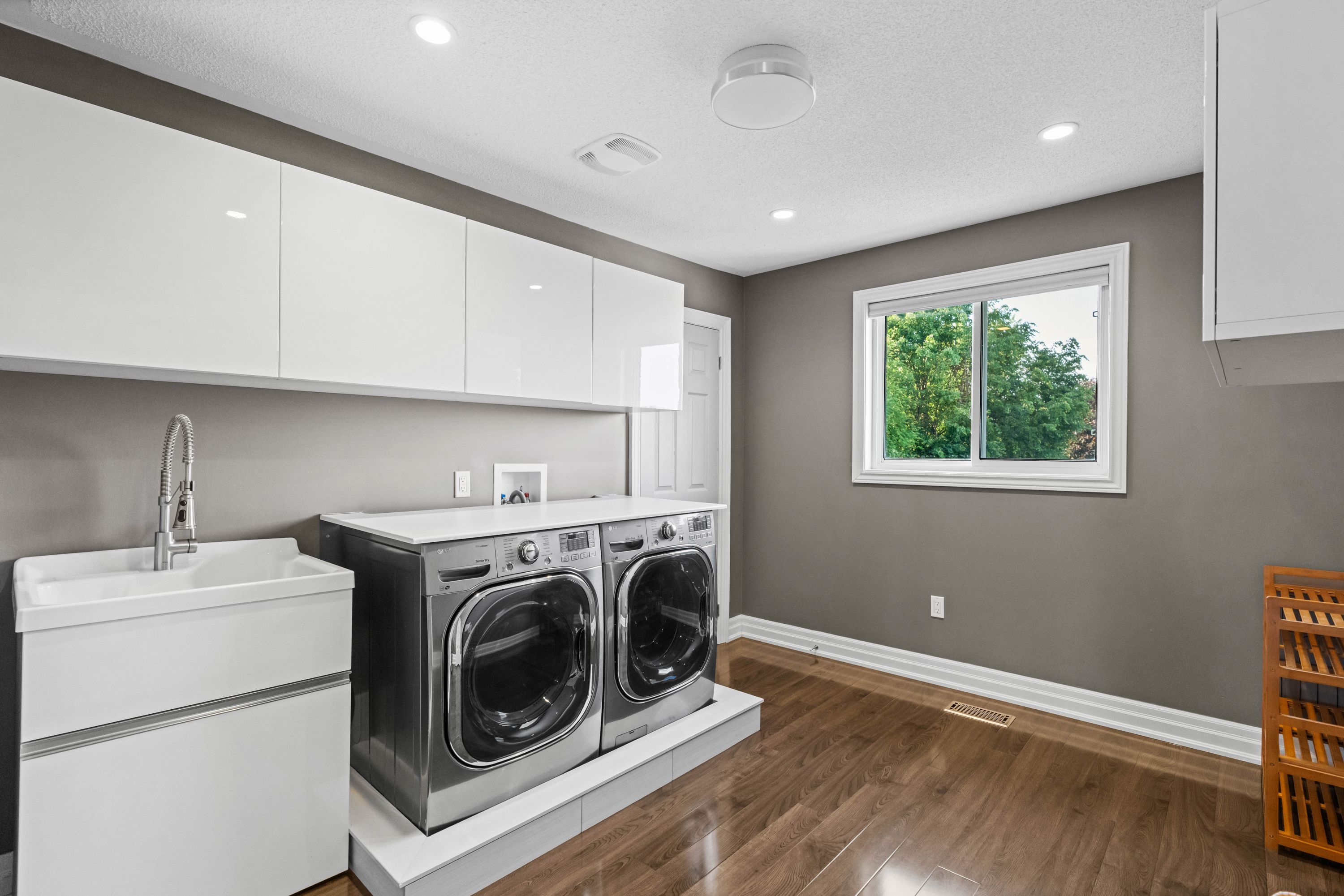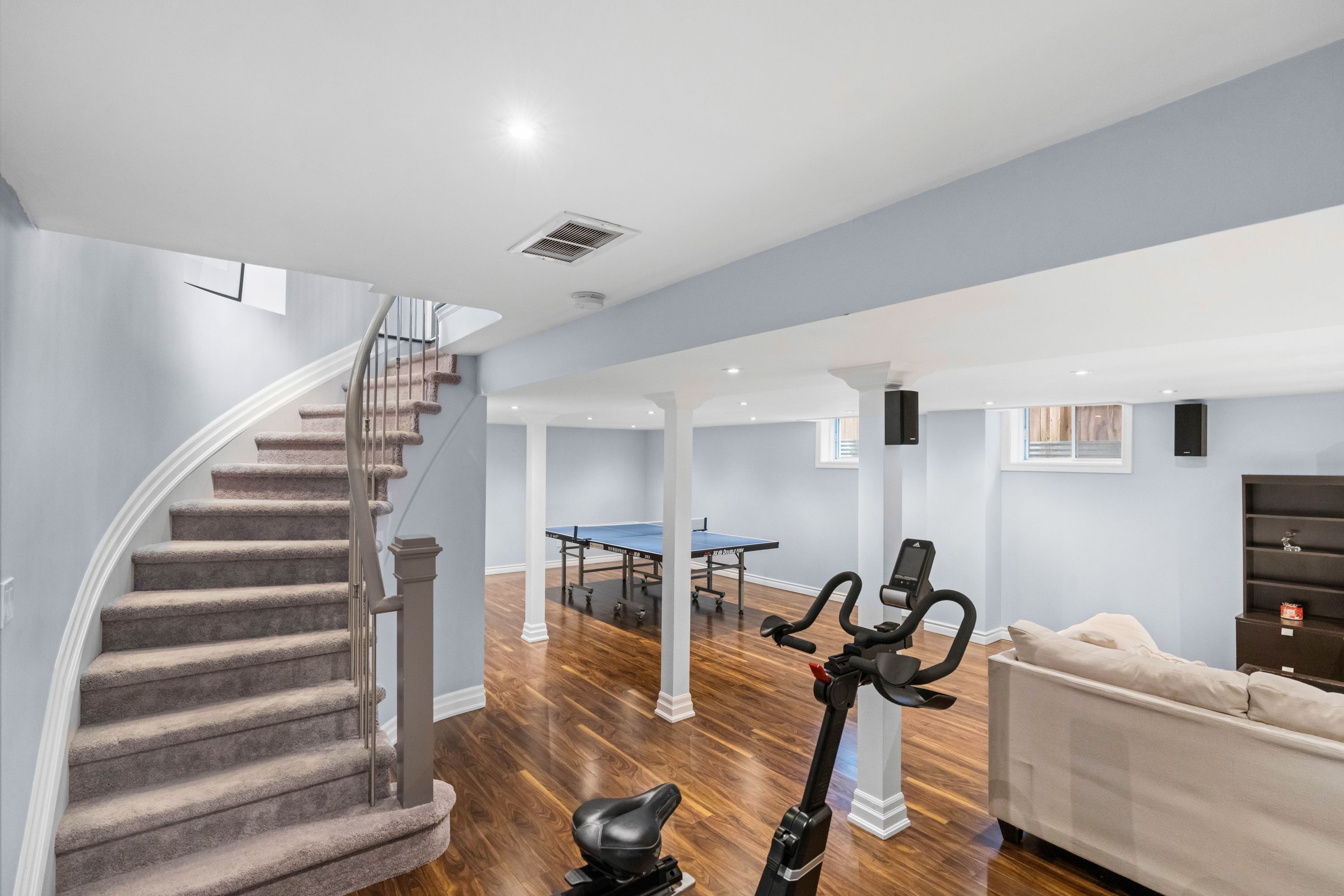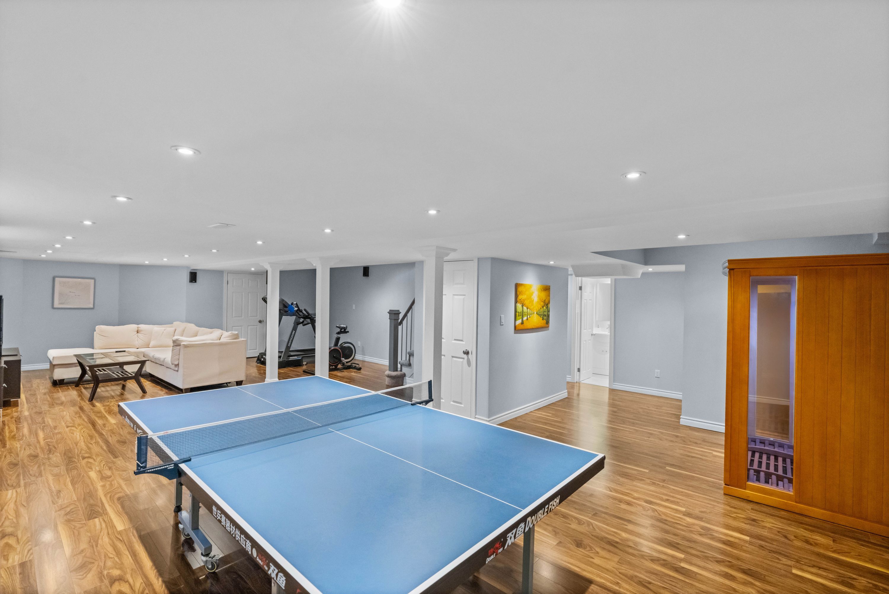 • Fully finished basement with a built-in sauna and extra storage.