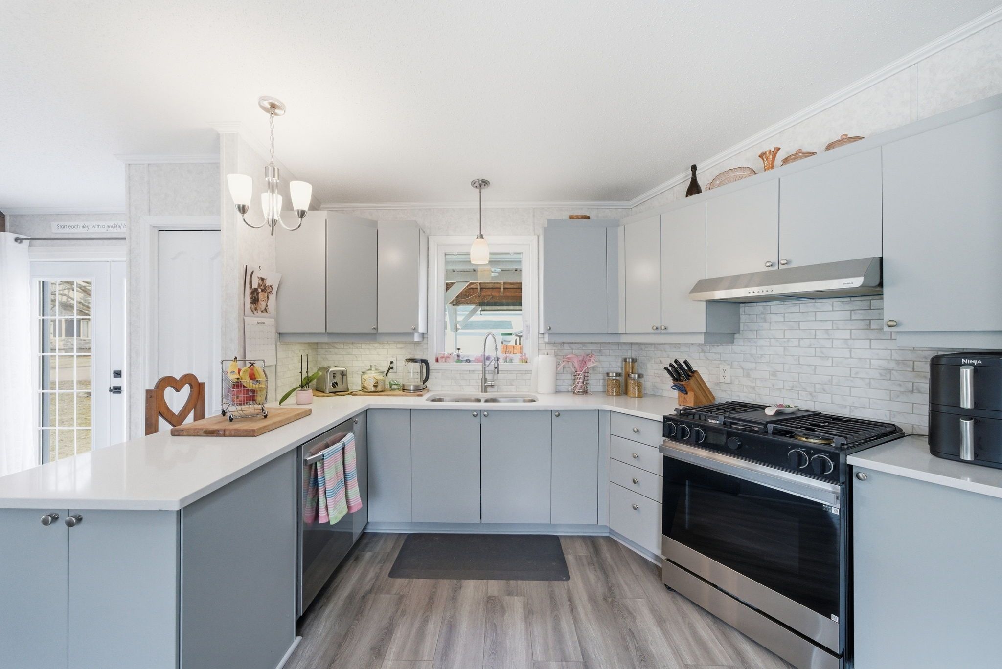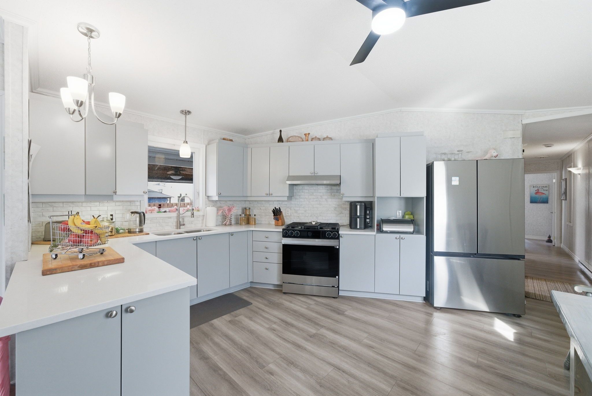 • Modern kitchen and bathroom with quartz countertops from 2025.