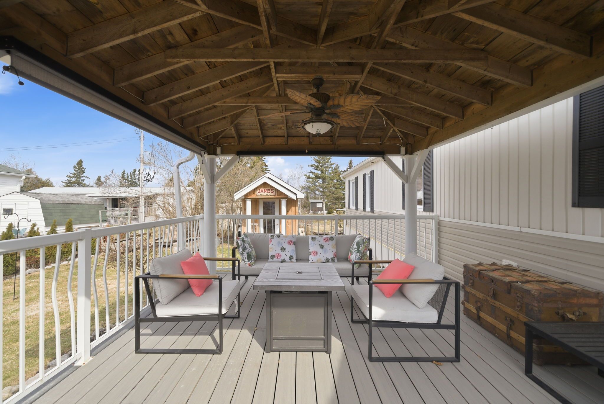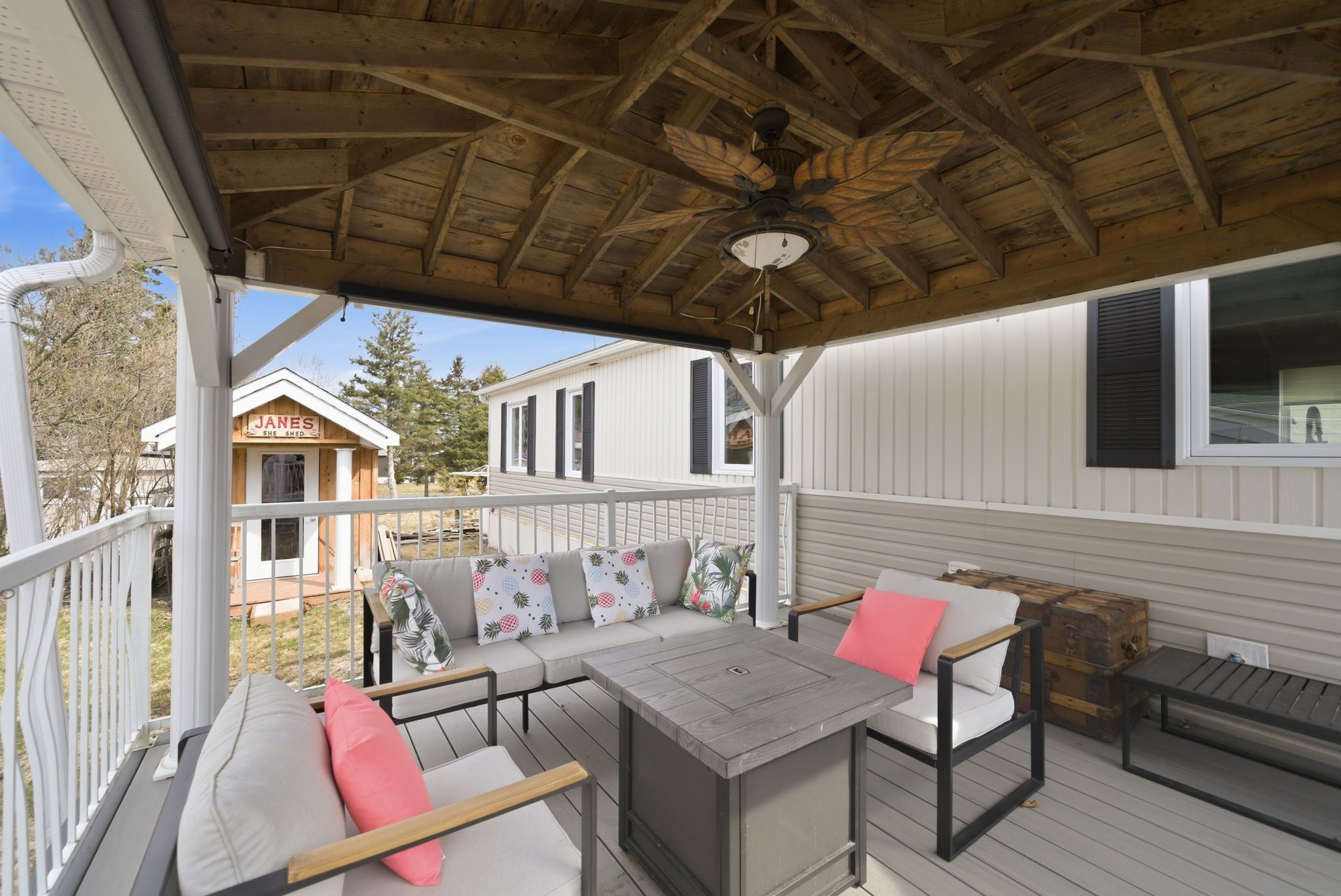 • Open-concept kitchen and living area with a deck for relaxation.