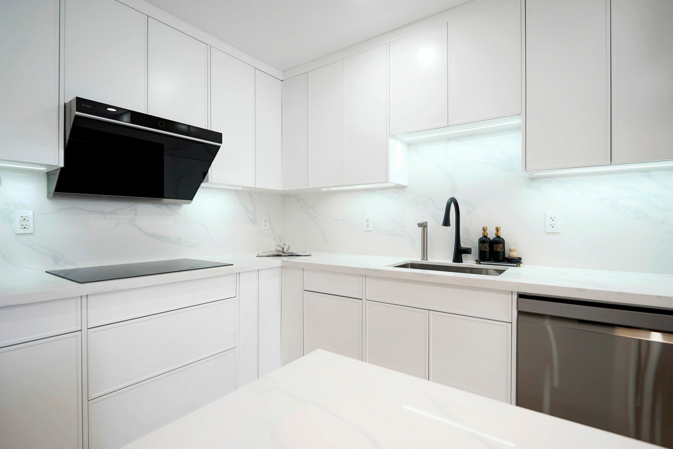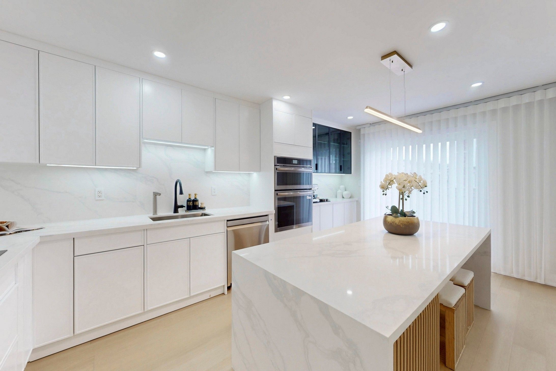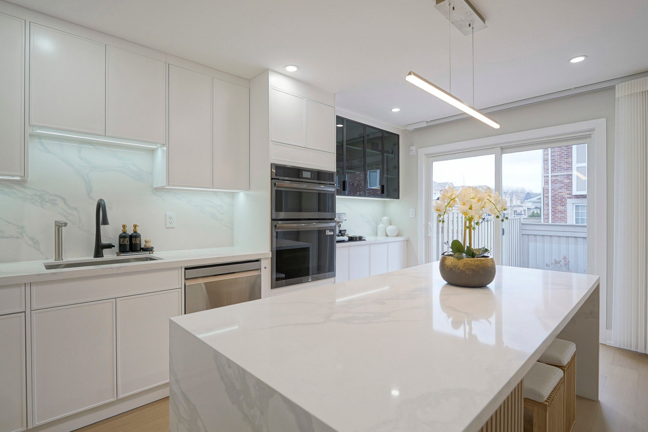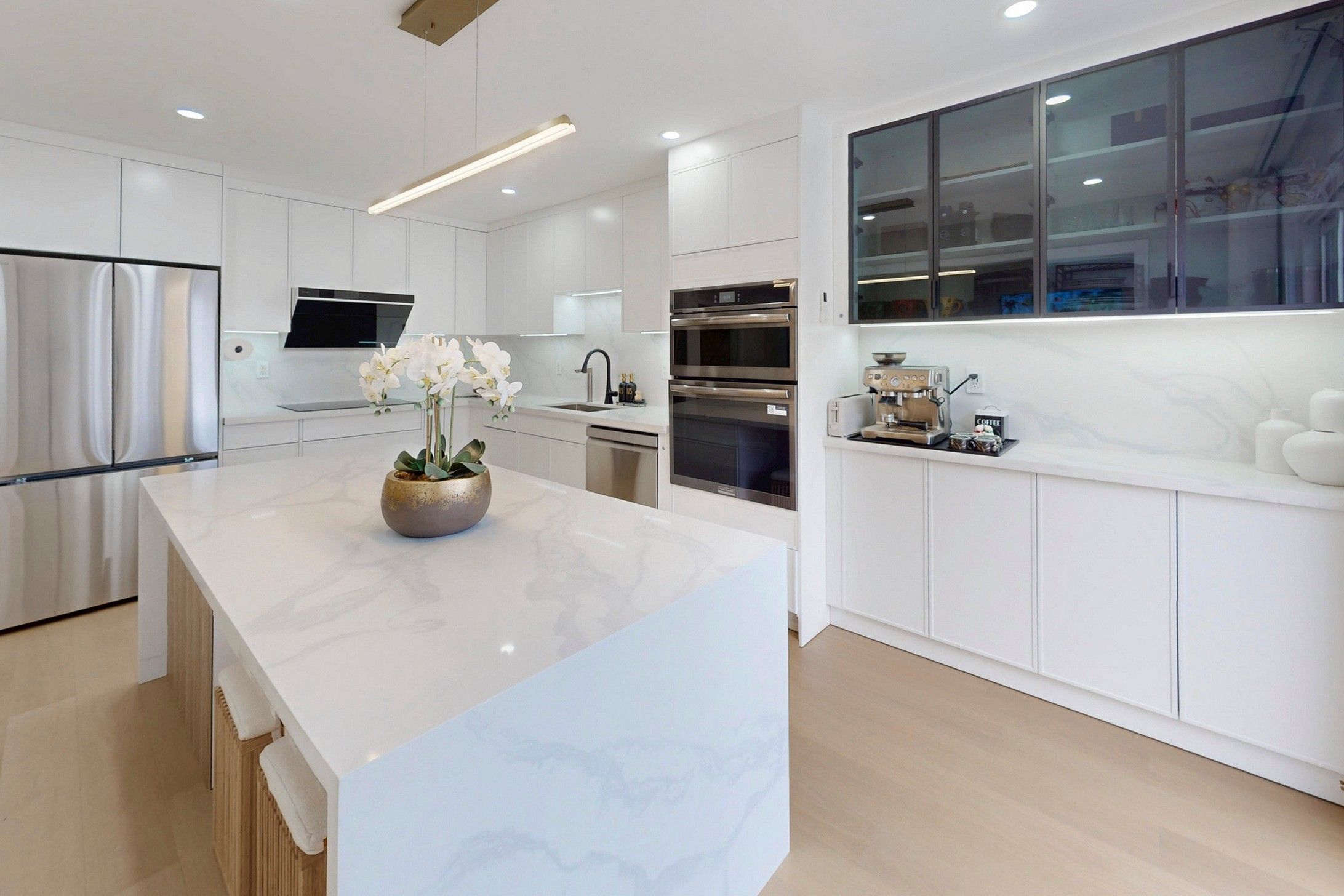 • Stylish open concept kitchen with a large center island.