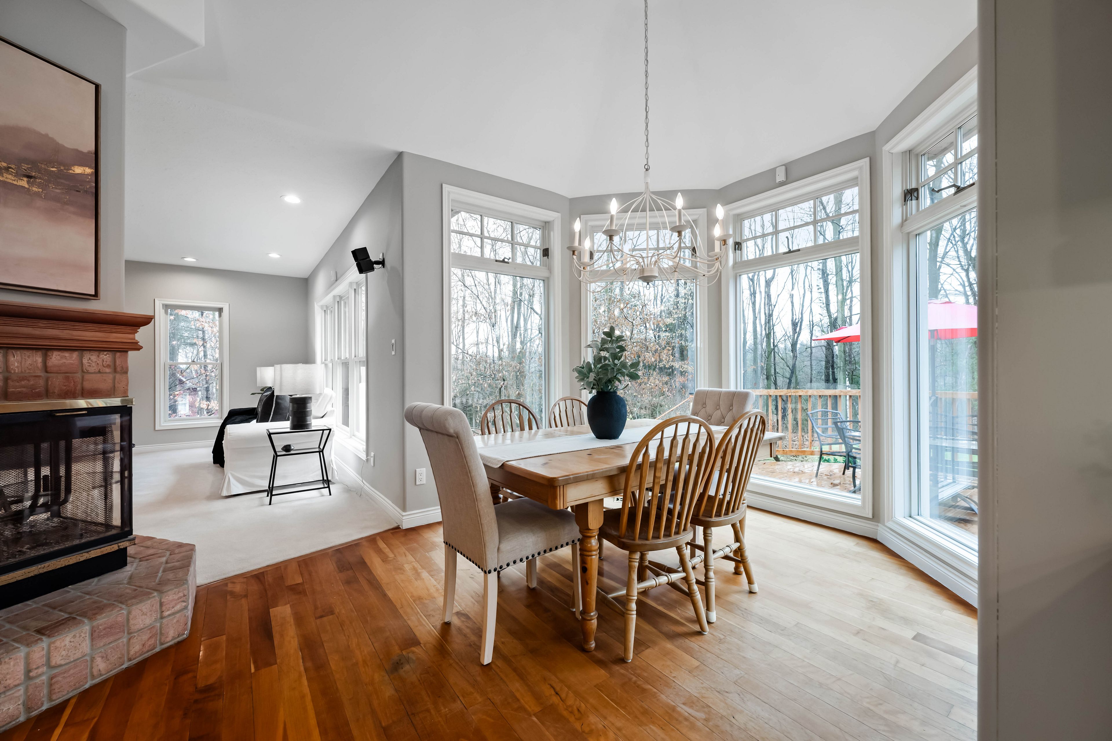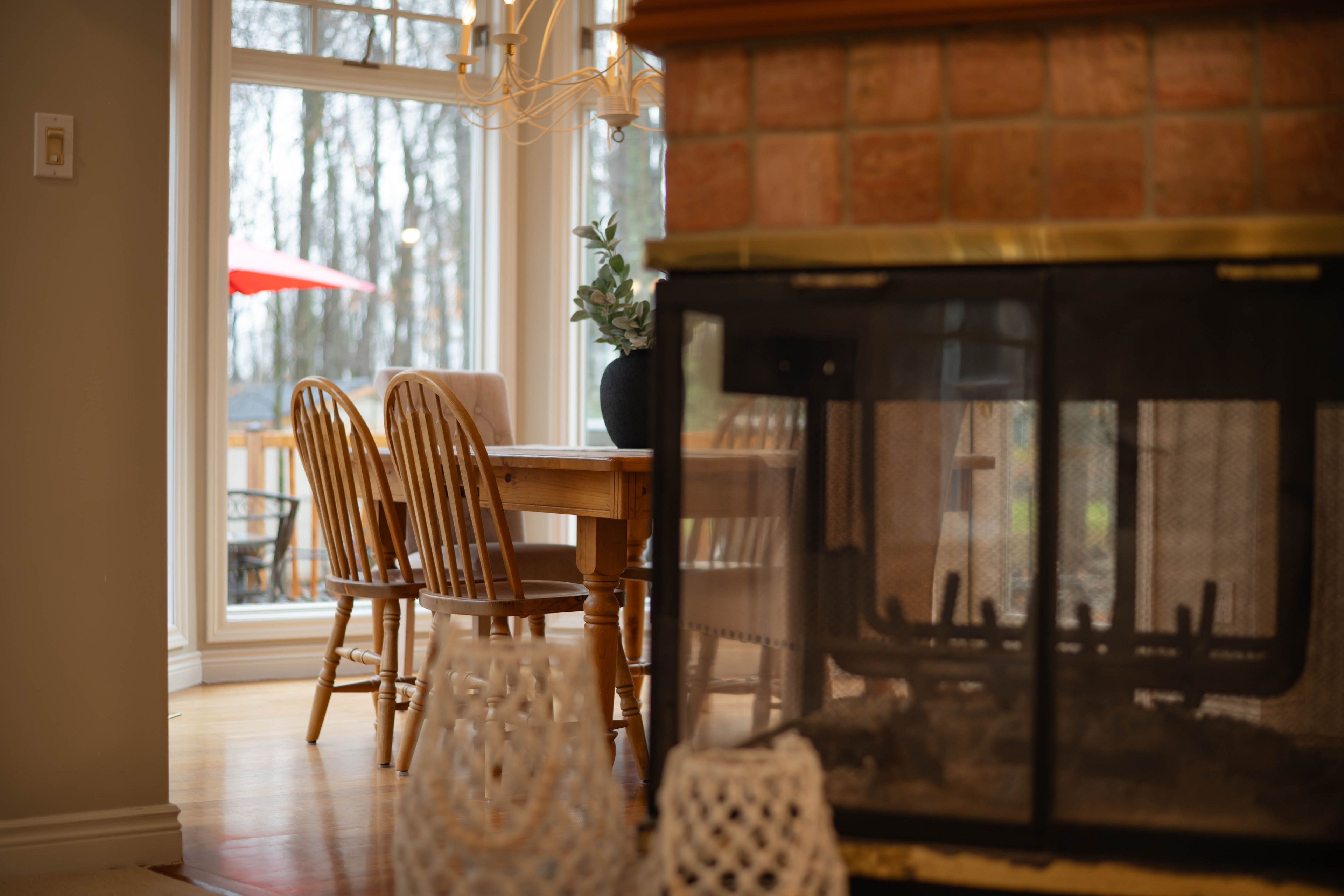 • Spacious home with bright living areas and a charming 3-sided fireplace.