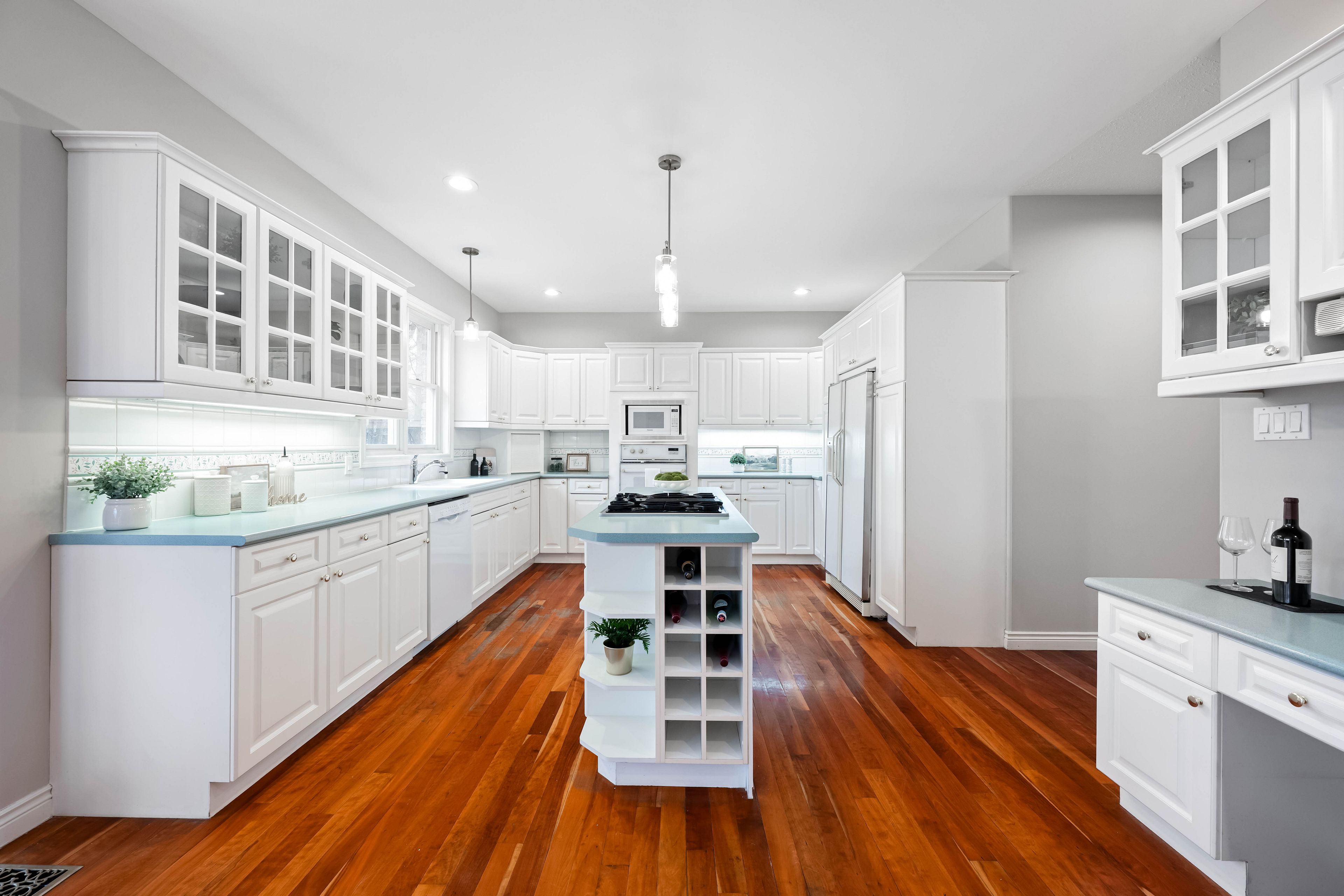 • Kitchen features a gas cooktop, walk-in pantry, and seamless dining room flow.