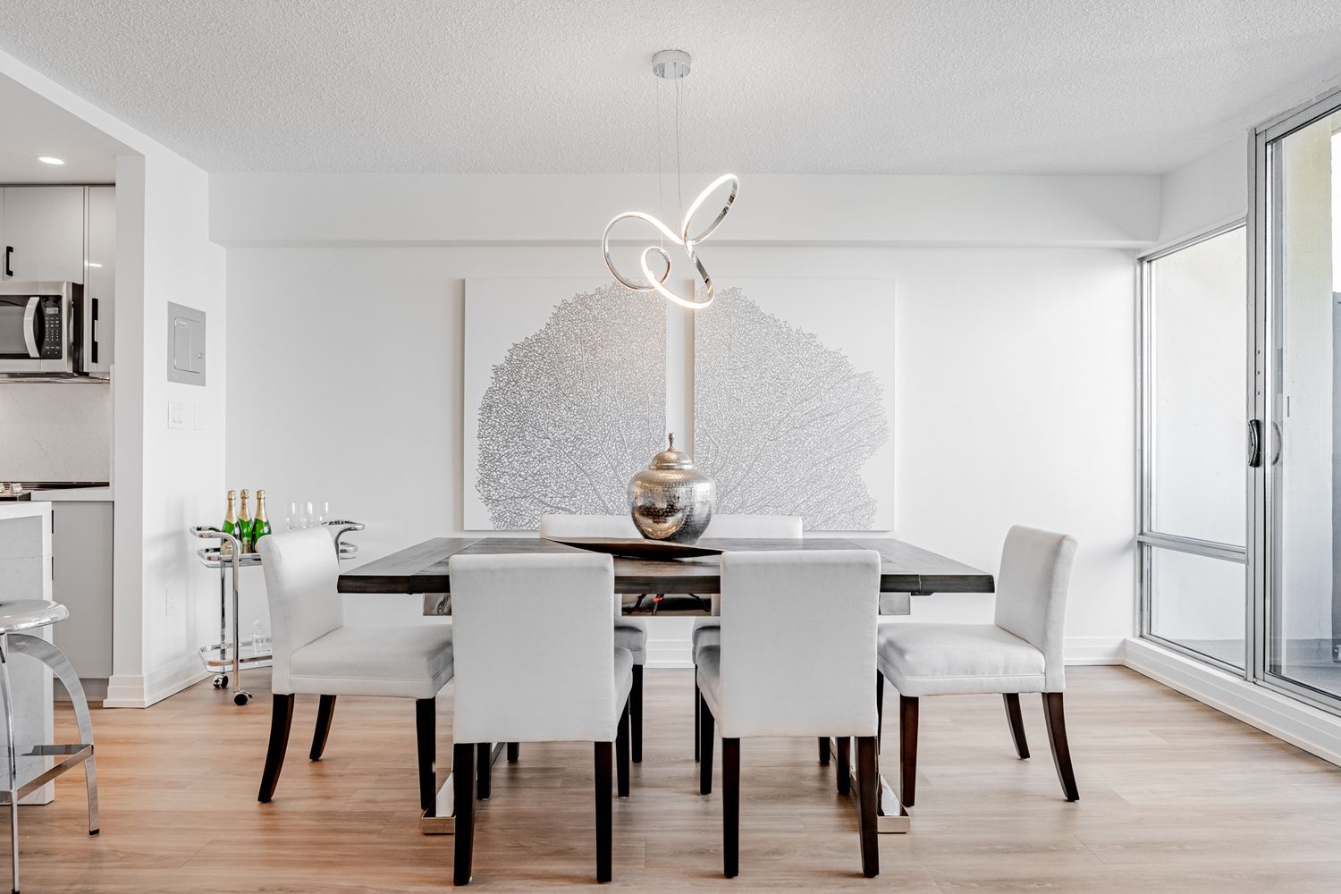 • Engineered hardwood floors add a touch of elegance throughout the unit.