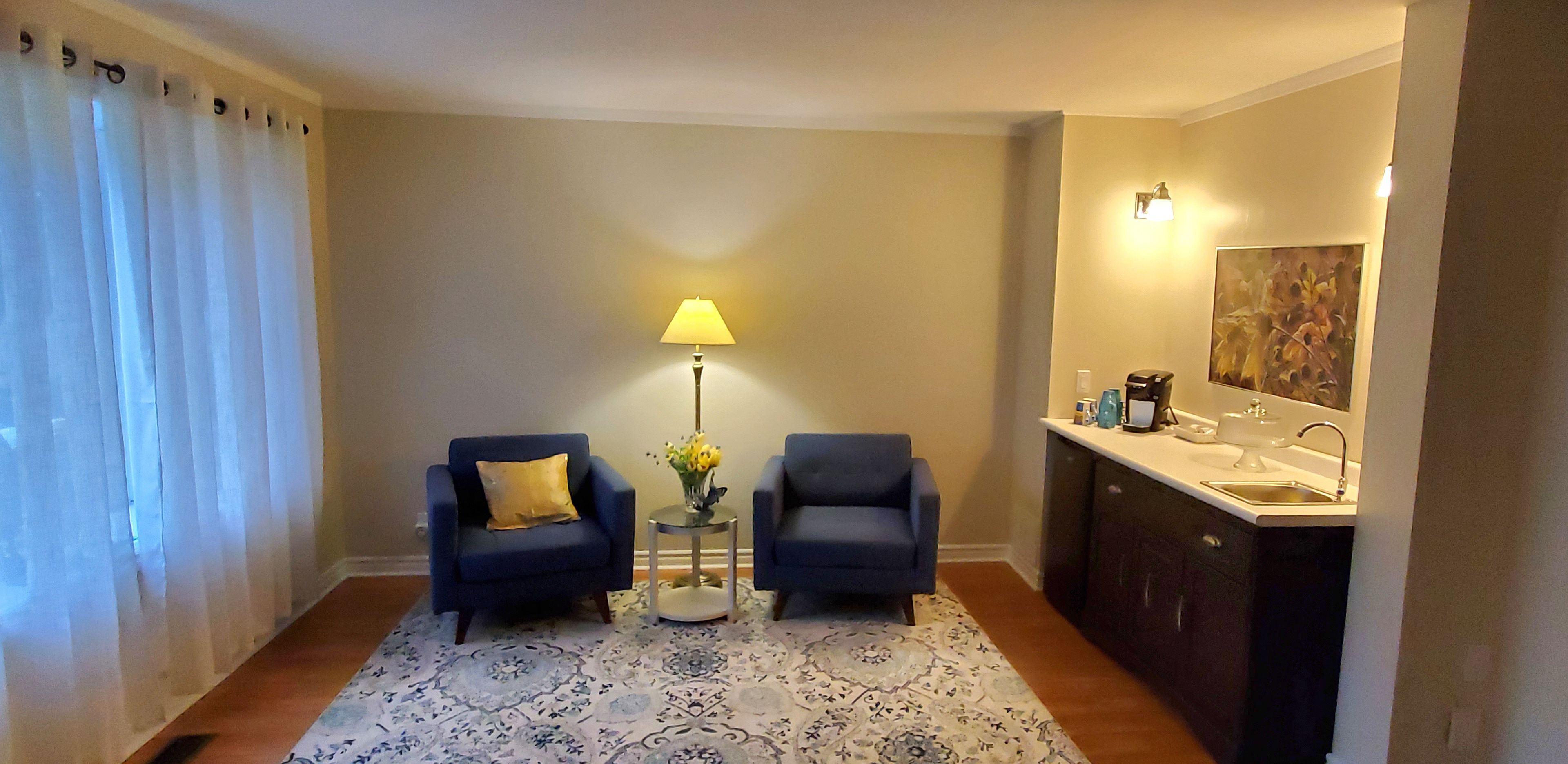 • Spacious living room with a beverage center for convenience and privacy.