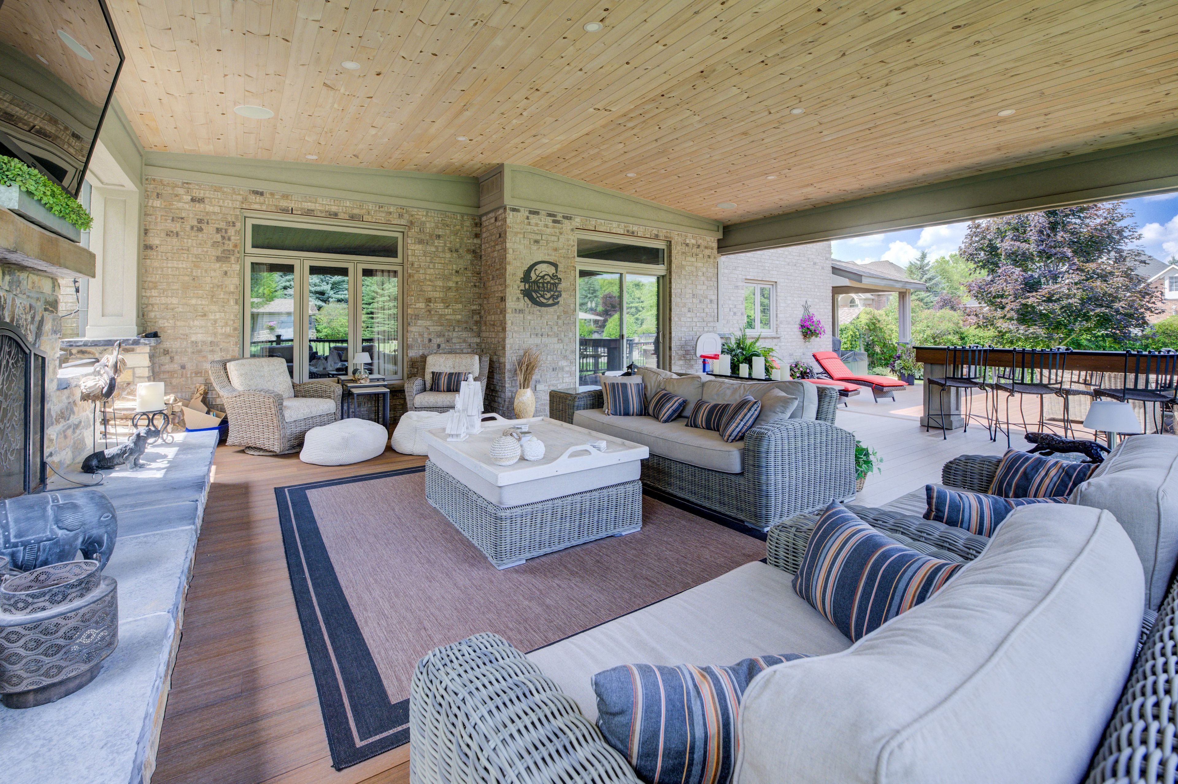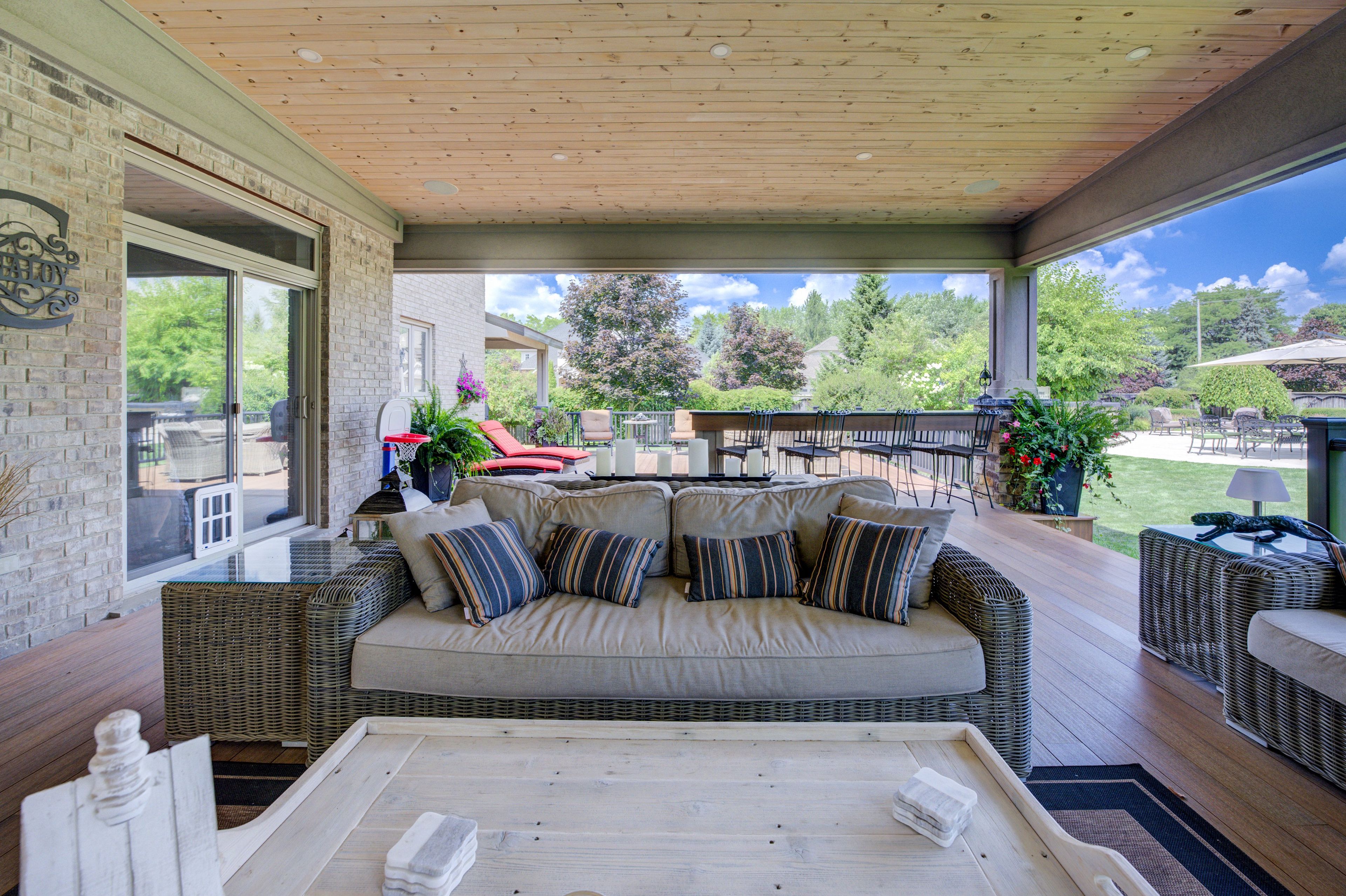 Imagine coming home to a muskoka inspired resort in your own back yard! Meticulously maintained family home situated on a magnificent estate lot. Upon arriving you will be greeted by a generously sized paver stone drive and a wonderful home accented with classical touches. The expansive foyer showcases the architectural staircase open from the lower level to the upper level. A formal living room with separate side porch could also serve as an office. Family gatherings will be accommodated via the formal dining room with butler pantry, which opens to the chef's kitchen affording b. I. Appliances (miele 5 burner gas cook top, miele d/w, kitchenaid double wall oven). The oversized island is perfect for meal prep and conversations. The kitchen, breakfast area, family room w/f. P. Overlook the show stopping patios and yard. The 2nd level gives you 4 generous sized bedrooms incl. An opulent primary bdrm featuring private sitting area, and updated ('24) ensuite w double vanity, make up counter, heated tile floor, toto washlet, soaker tub and a feature wall with fireplace. The main bath allows 2 of the bedrooms immediate access to a double vanity, prep area/storage and a seamless granite shower. Upper laundry with custom wormy maple countertop is convenient and stylish. The lower level affords a spacious games area, ample wet bar (with fridge and d/w). The entertainment area with projector and power screen is waiting for movie night. The fireplace will add to your comfort. This floor includes a three-piece bathroom with a wet sauna and a gym. Out back you will be transported to a cottage like setting. Greeted by a stately covered composite deck with hand crafted stone wood burning f. P. The tiered deck flows to a large out door dining space w/ covered bbq. Area and finishes off at the 8 person jacuzzi hot tub. The tranquil salt water pool (approx. 22' x 44') with stone waterfall is perfect for unwinding. Poolside cabana adds to the warm weather fun. This is a must see.