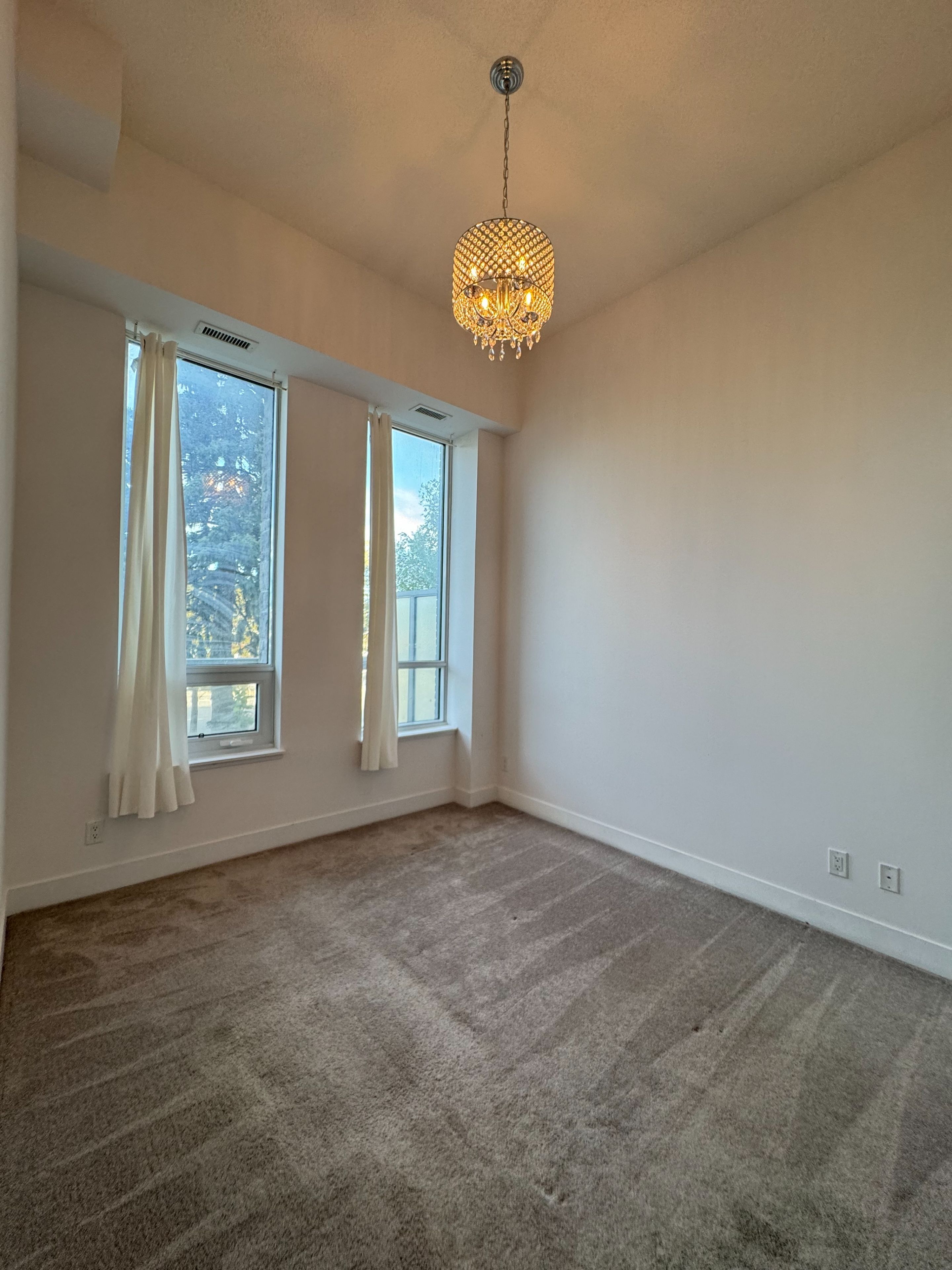 This beautiful, bright unit features soaring 13-foot ceilings, providing a spacious and airy atmosphere. The living areas are finished with sleek laminate flooring, while the bedroom offers cozy carpeting for added comfort. The kitchen has been recently renovated with stylish two-tone cabinets, creating a modern and functional space perfect for cooking and entertaining. Step outside to your private 130 sqft patio, ideal for relaxing or enjoying outdoor dining. The unit is freshly painted and move-in ready, complete with two new chandeliers that offer brilliant lighting throughout. The den provides flexibility as a home office, guest room, or additional living space. Located just steps from bayview subway, bayview village, loblaws, dining options, parks, and the ymca. Enjoy quick access to hwy 401, 404, and dvp for convenient commuting. Perfect for those looking to combine style, convenience, and location. Available for immediate occupancy, don't miss this opportunity!
