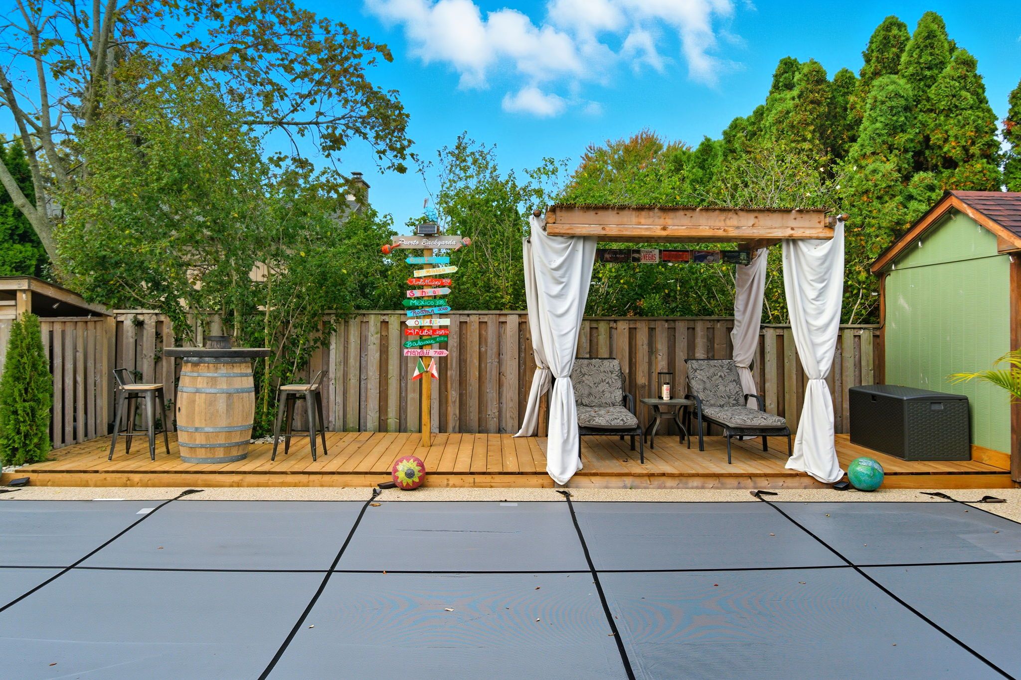 • Private backyard oasis with a heated saltwater pool and hot tub.
