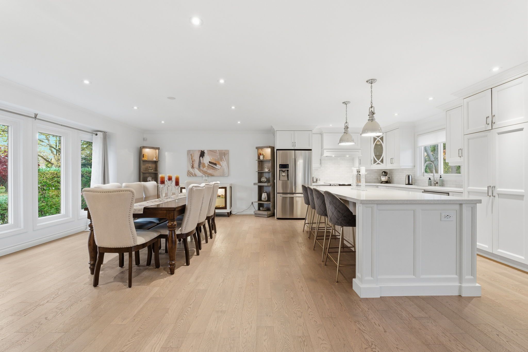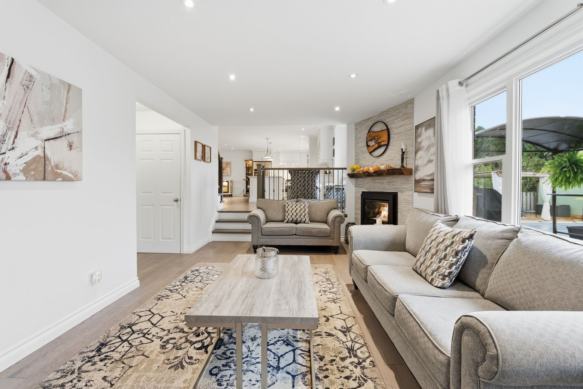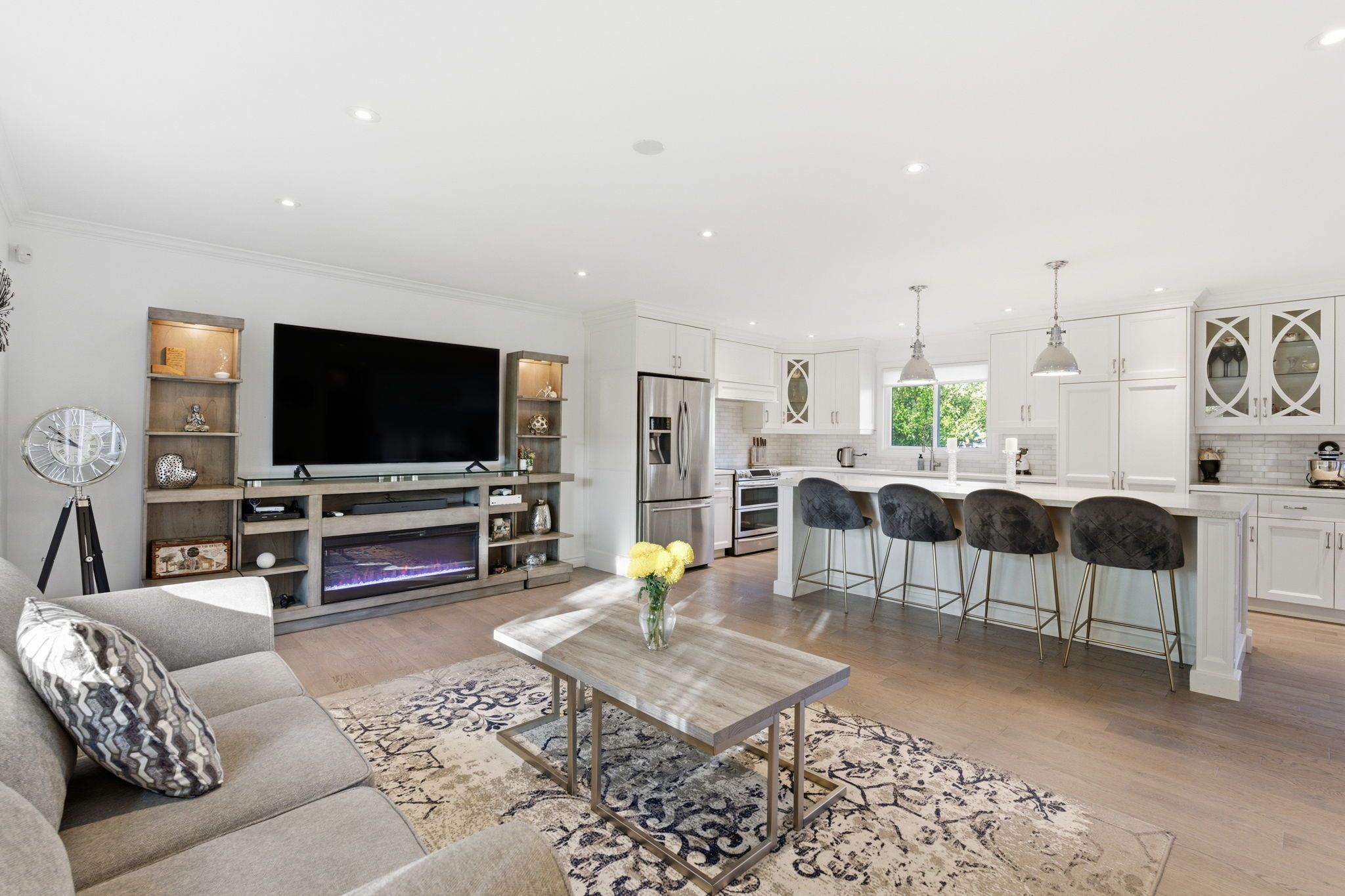 • Open-concept main floor with modern kitchen and large living/dining areas.