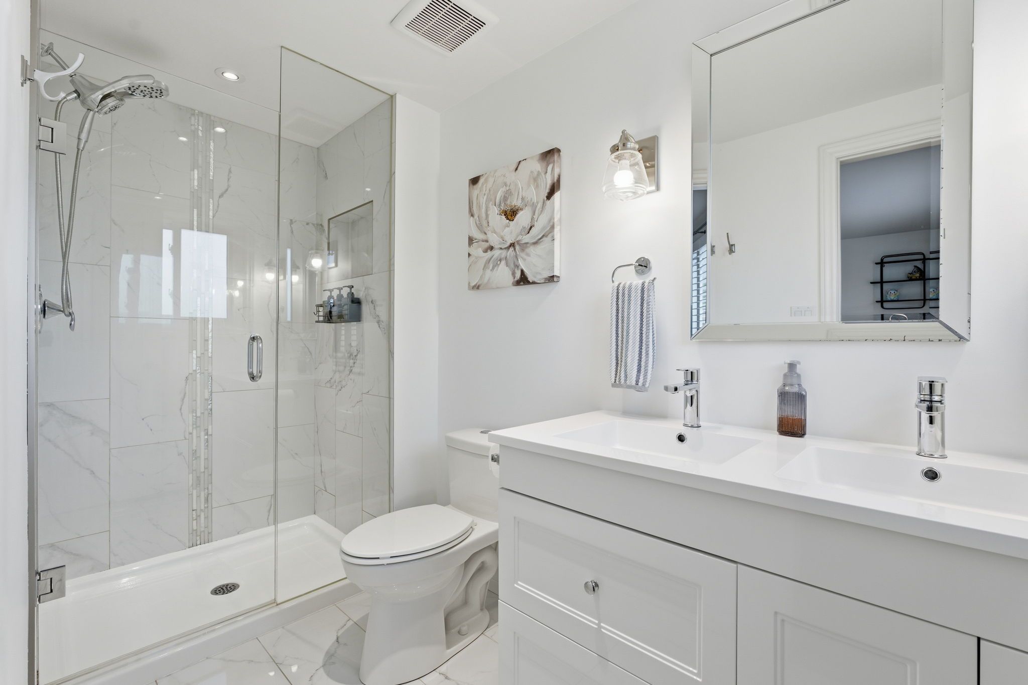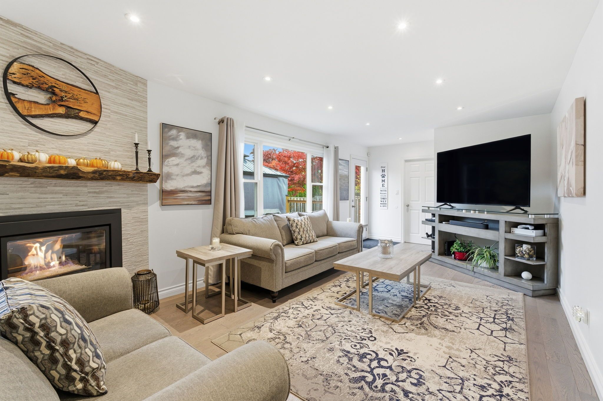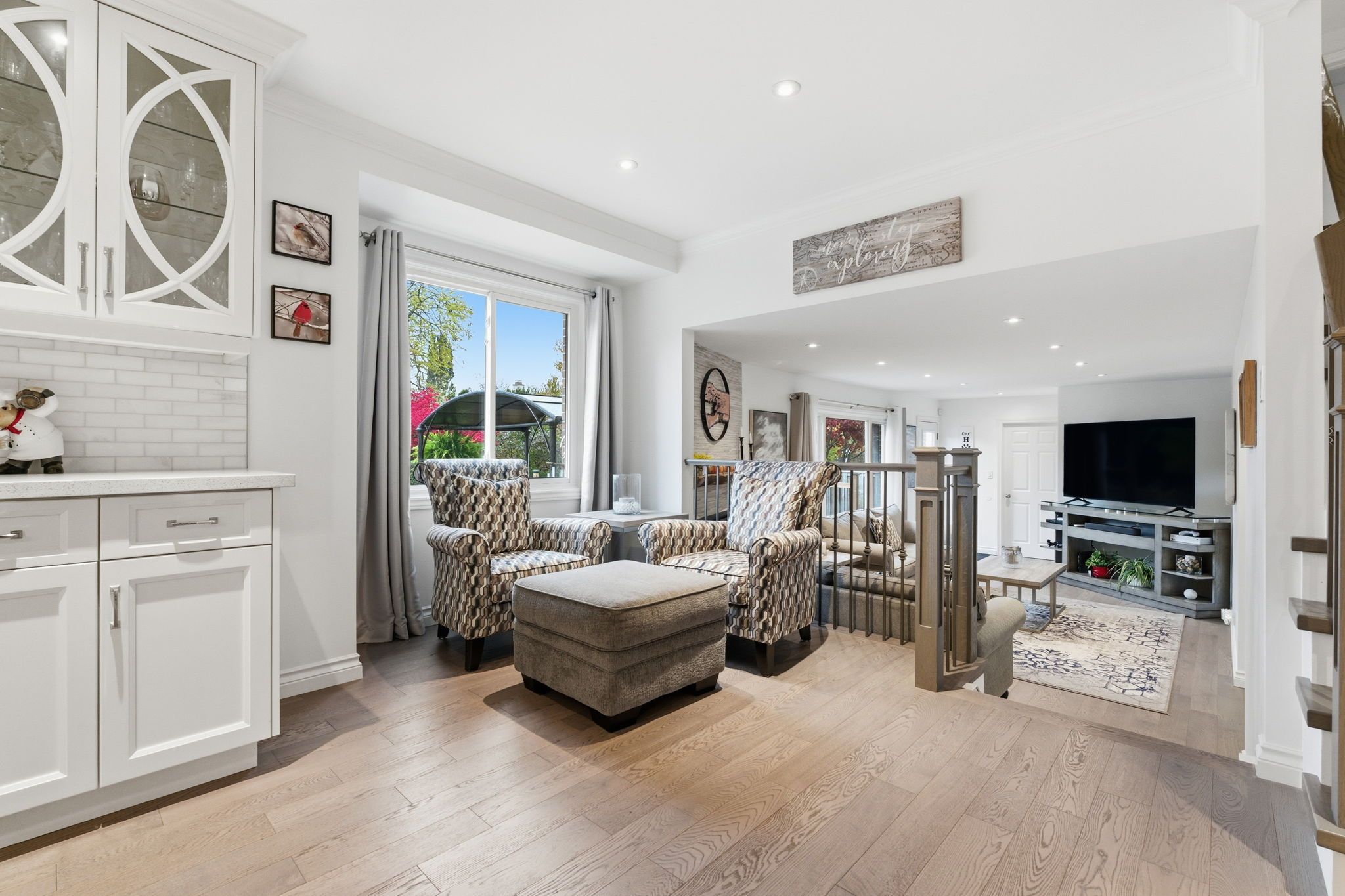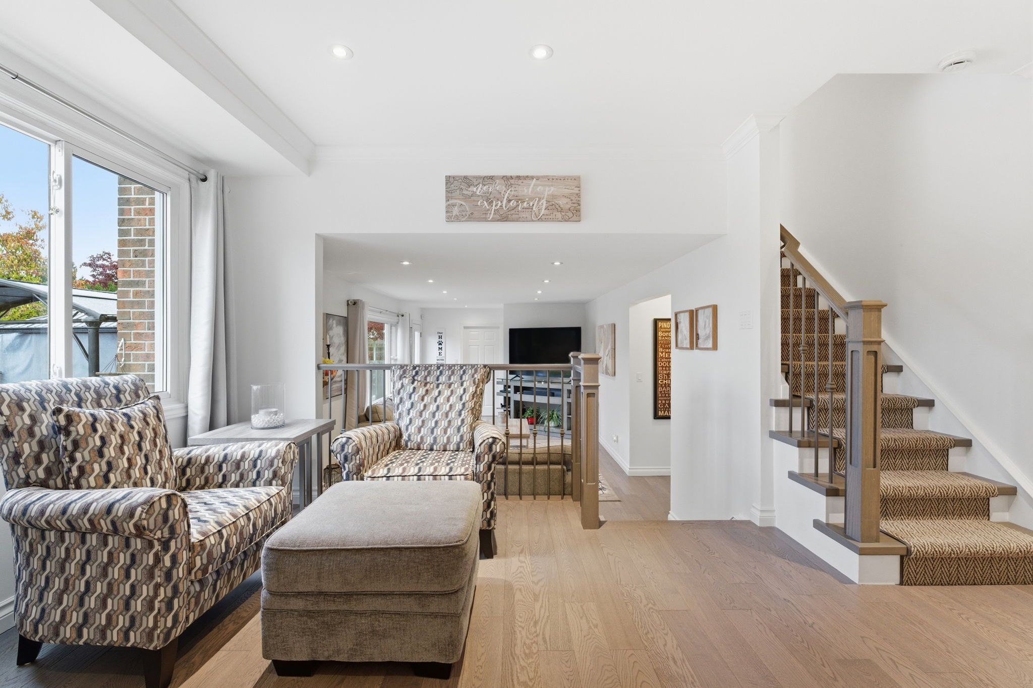• Open-concept main floor with modern kitchen and large living/dining areas.