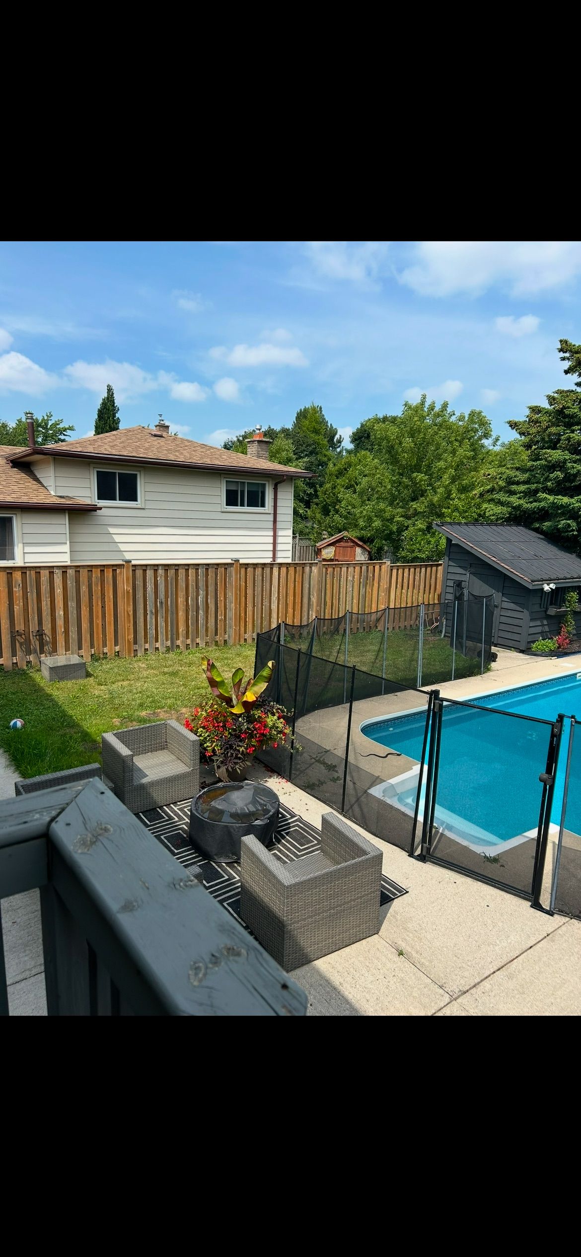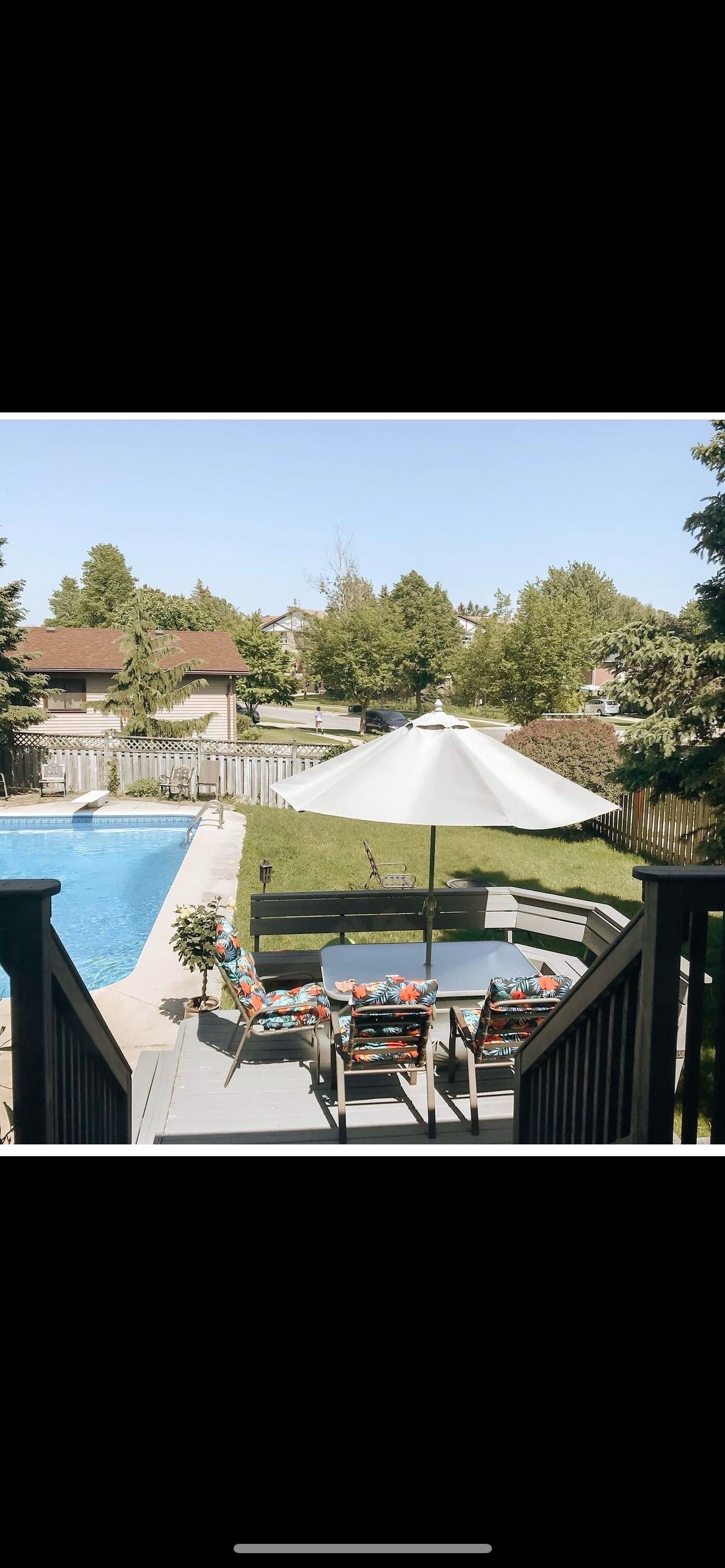 • Private fenced yard featuring a heated inground pool for summer fun.