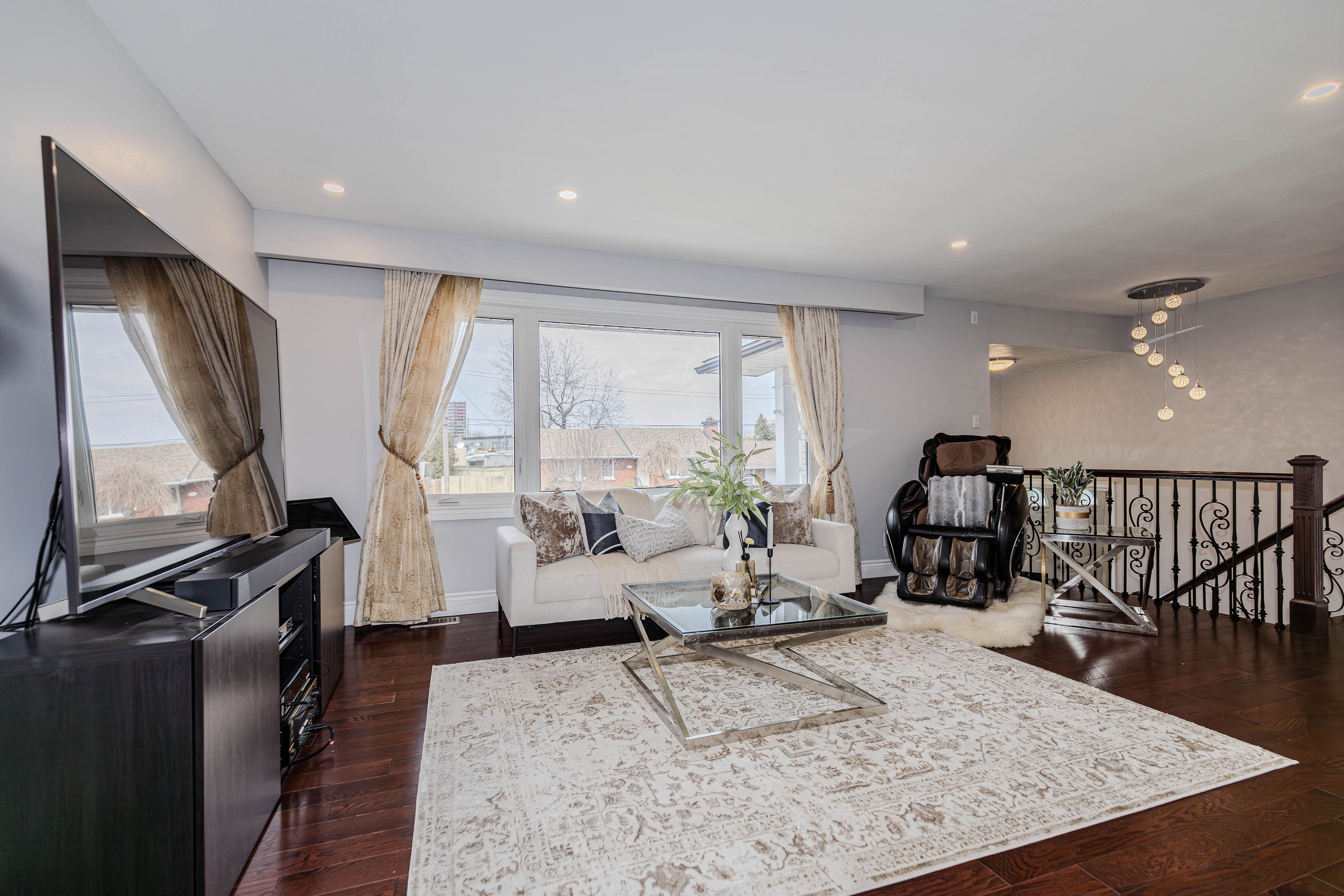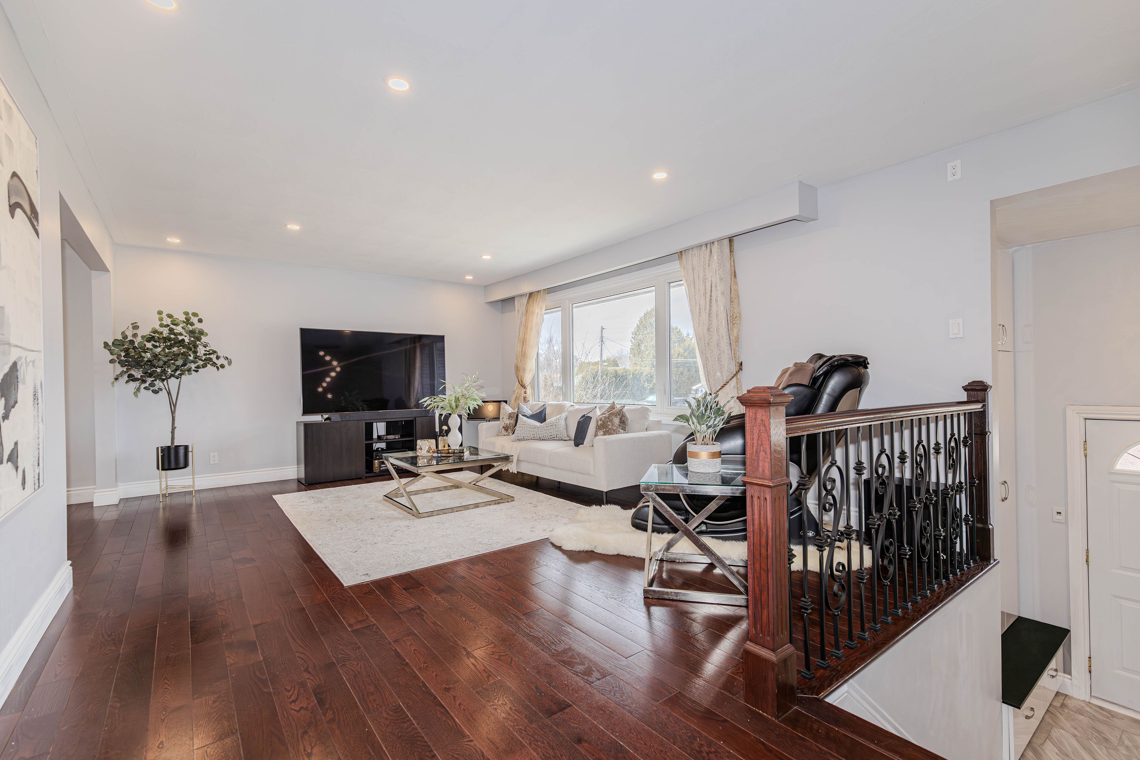 • Bright open-concept main level with large windows and updated finishes.