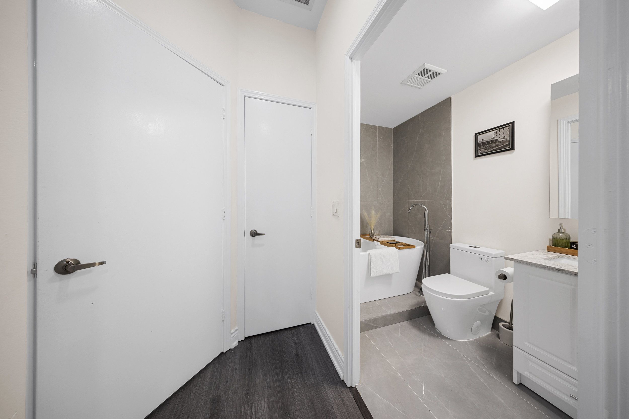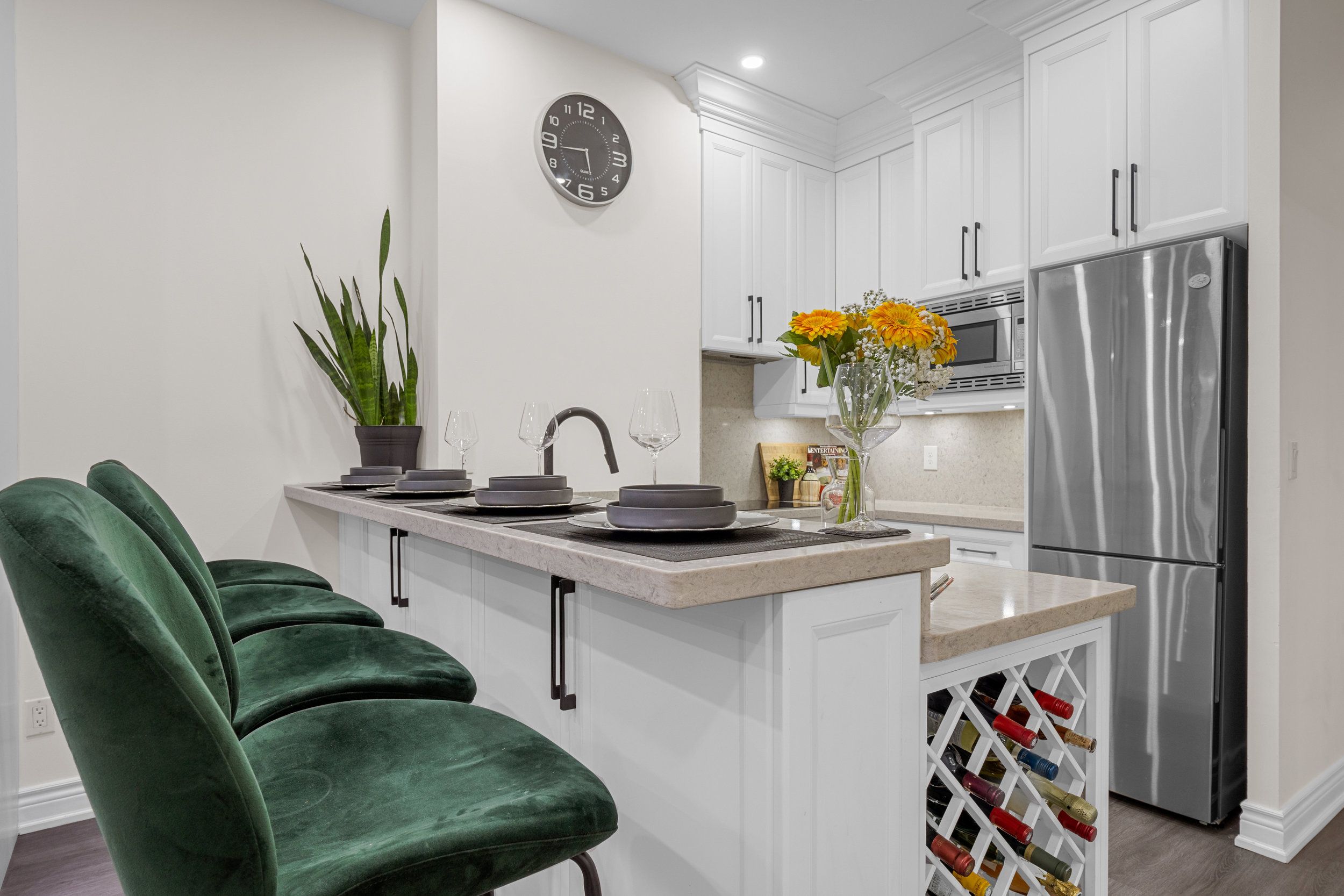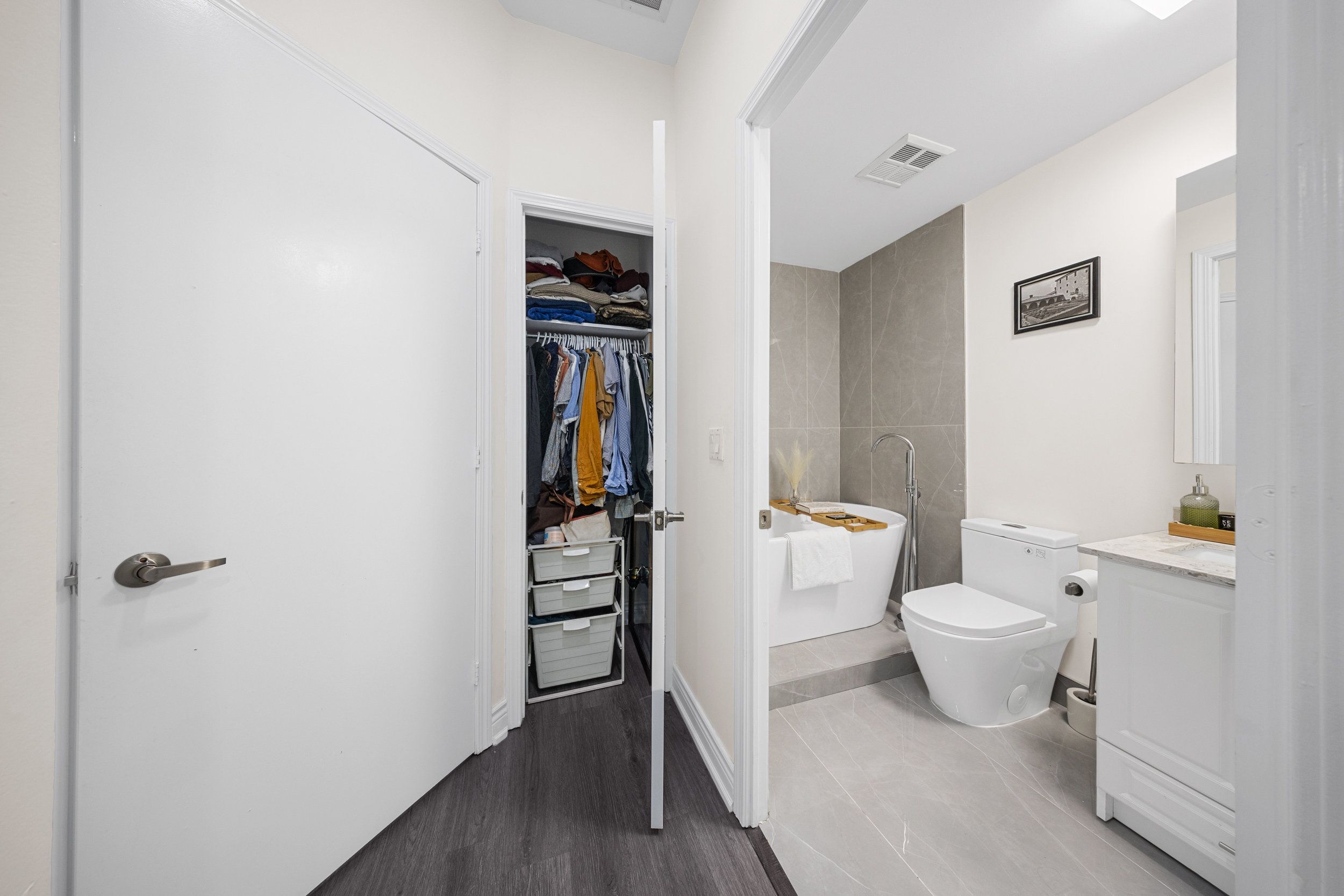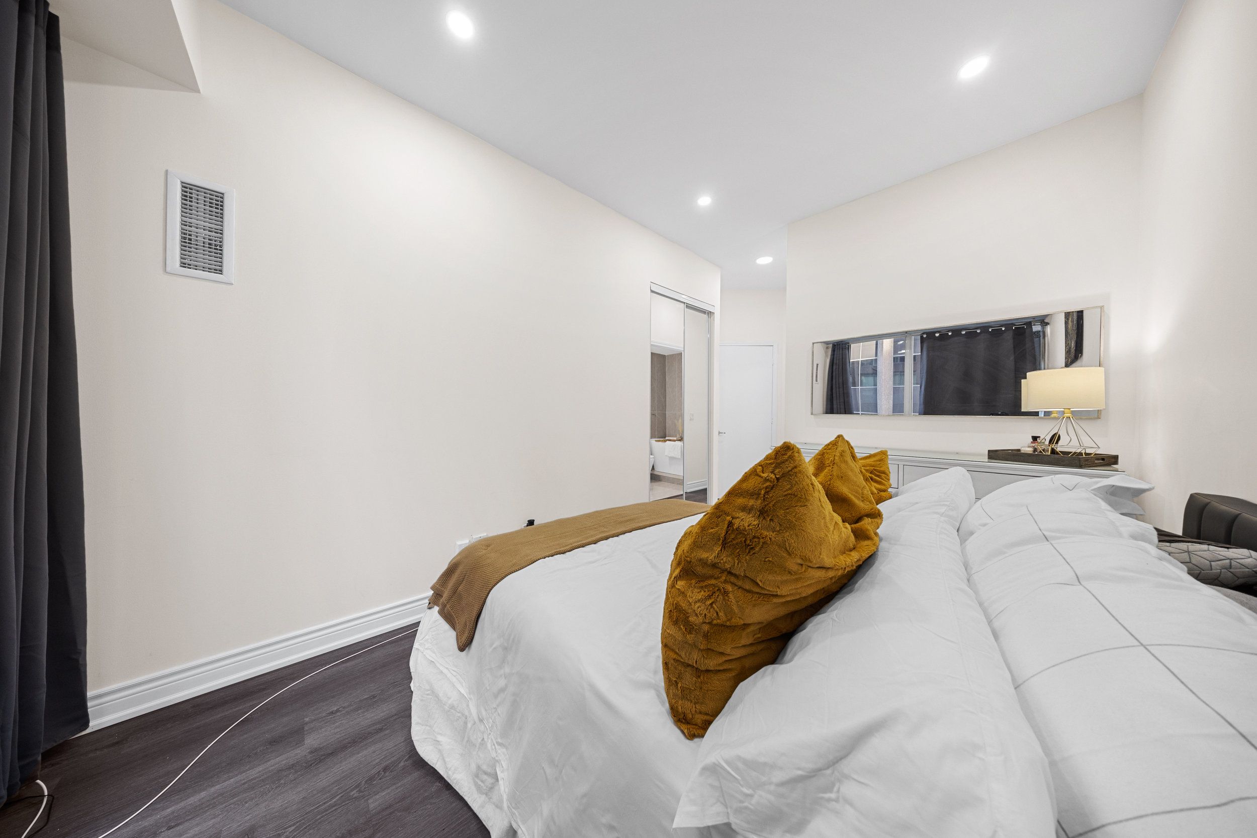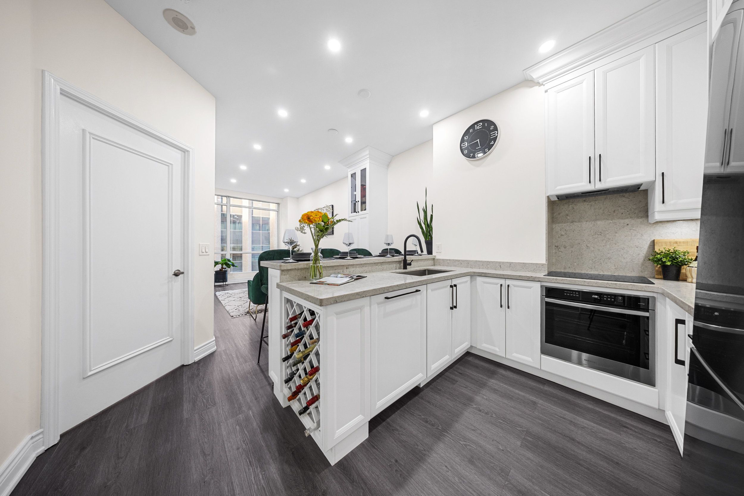 Welcome to this luxury condo in toronto's financial district, professionally renovated with several high end upgrades and abundant built-in storage. Open-concept living space with 10-foot high ceilings; newly renovated bathrooms feature high-end quartz countertops, one with a rainfall shower and the other with a standalone bathtub. The kitchen boasts quartz countertops, a custom-built island with seating, custom shelves, and built-in appliances, including a panel-ready dishwasher. With four generously sized closets, storage is a breeze. Walk score of 100, transit score of 100,and bike score of 93, with king station and the path at your doorstep. Union station is a 6-minutewalk away, and st. Lawrence market, eaton center, toronto metropolitan university, and lake ontario waterfront are all within a 10-minute stroll. Amenities include a lounge, indoor pool, gym, garden terrace with bbqs, visitor parking, and all-inclusive utilities.