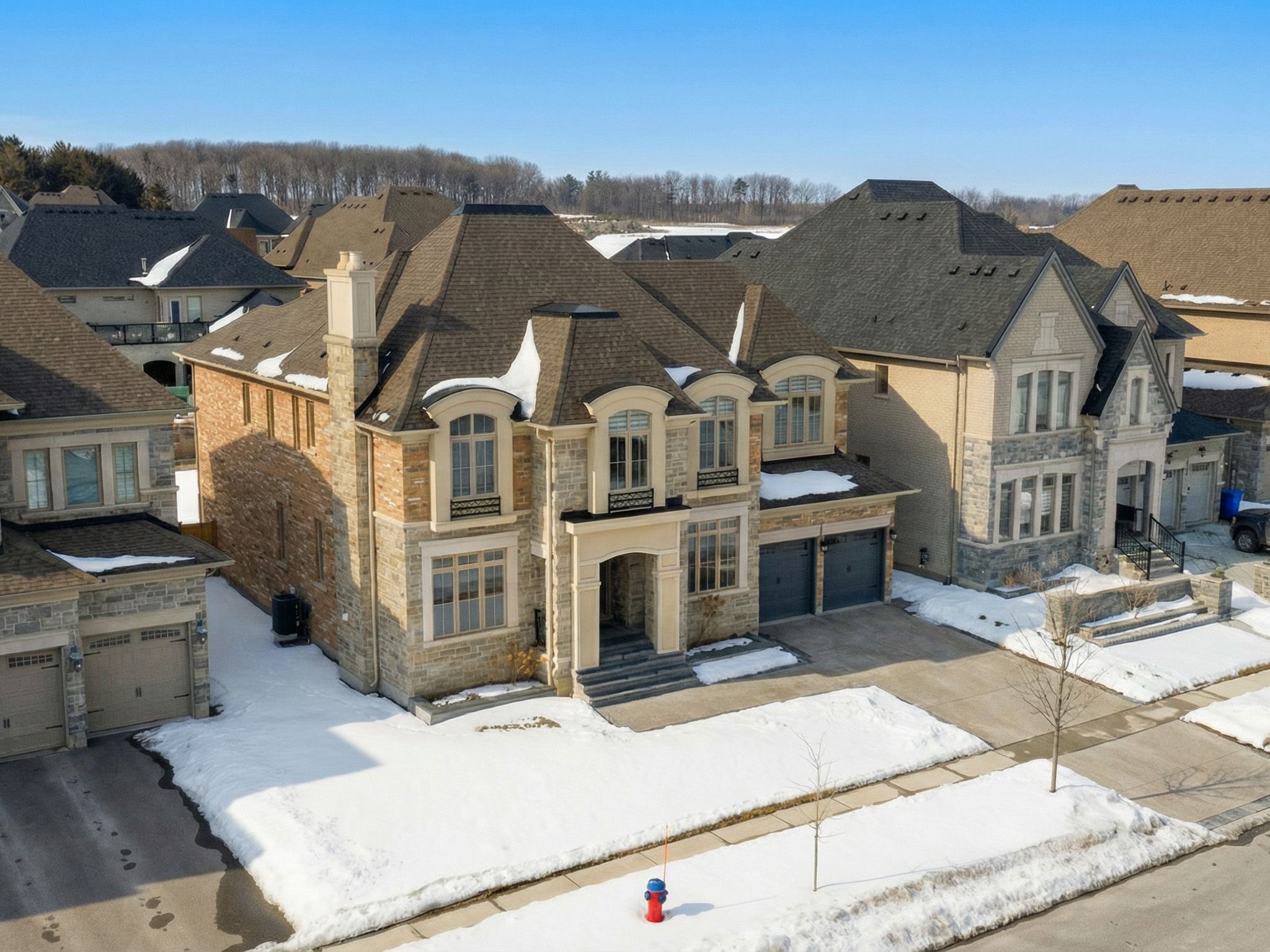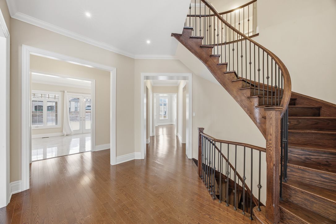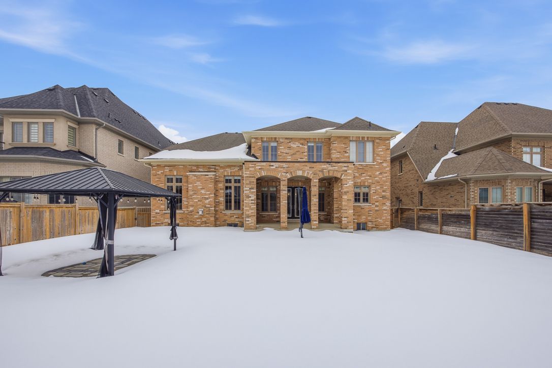 *the crown at kinghorn* beyond the quiet, tree-lined neighbourhood of kingsview manor, a distinguished stone residence rises with timeless elegance. A stately facade of natural stone, manicured grounds, and refined architectural lines set the stage for what lies within. Step inside to 5,000 square feet of refined living, where a soaring entry and grand living room create an immediate sense of scale and sophistication. Rich hardwood floors flow throughout, guiding you from the formal dining room to an exquisite gourmet kitchen appointed with premium built-in appliances and a discreet butler's pantry designed for effortless entertaining. The home's heart is the family room, crowned by a striking coffered ceiling, seamlessly opening to a covered loggia overlooking a beautifully landscaped, fully private backyard. A main-floor office offers quiet sophistication thoughtfully positioned to offer both productivity and tranquility. Upstairs, the generously proportioned bedrooms provide comfort and retreat, completing a home that balances grandeur, exclusivity, and timeless design. The kinghorn estate - where luxury meets the elegance of king city living.