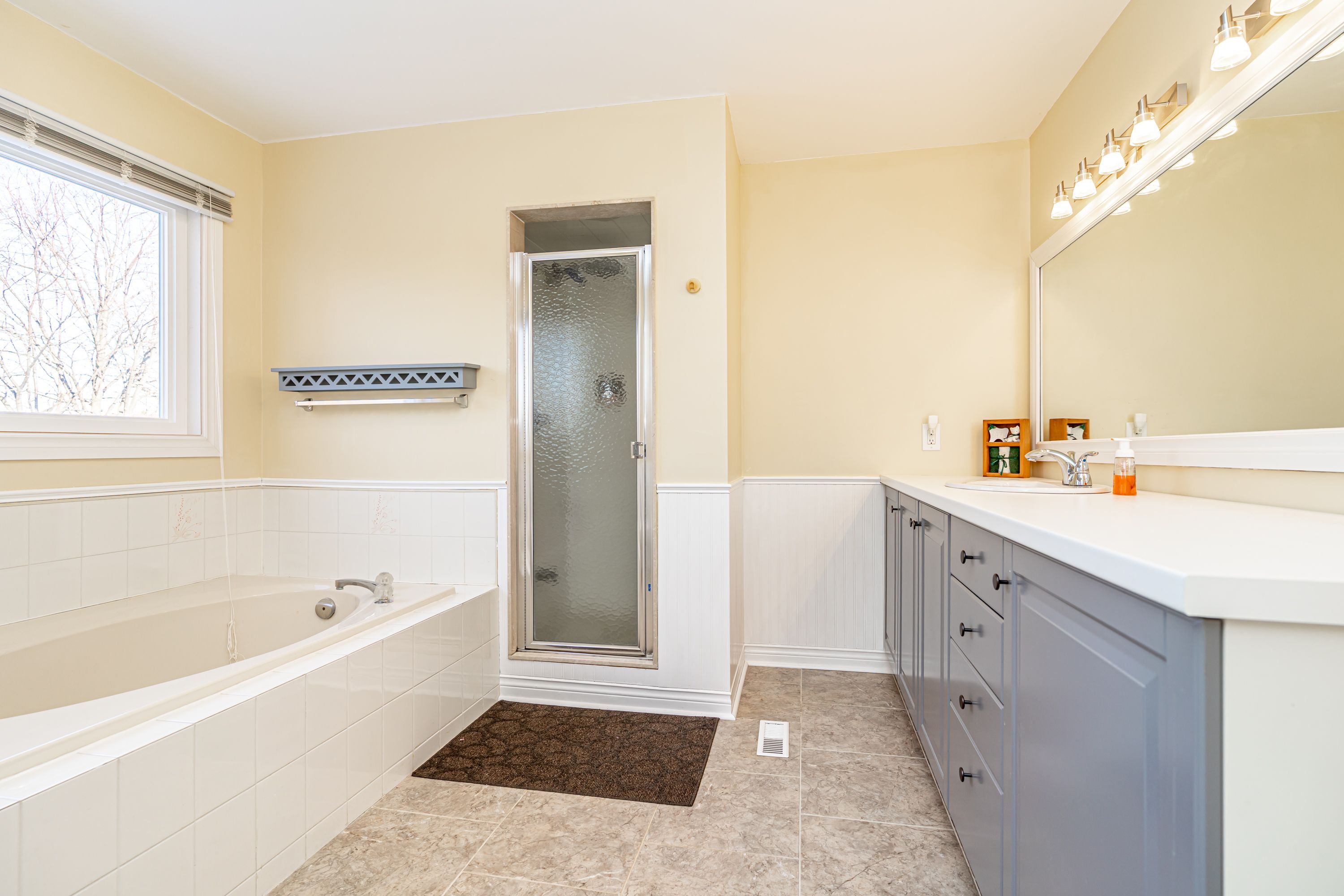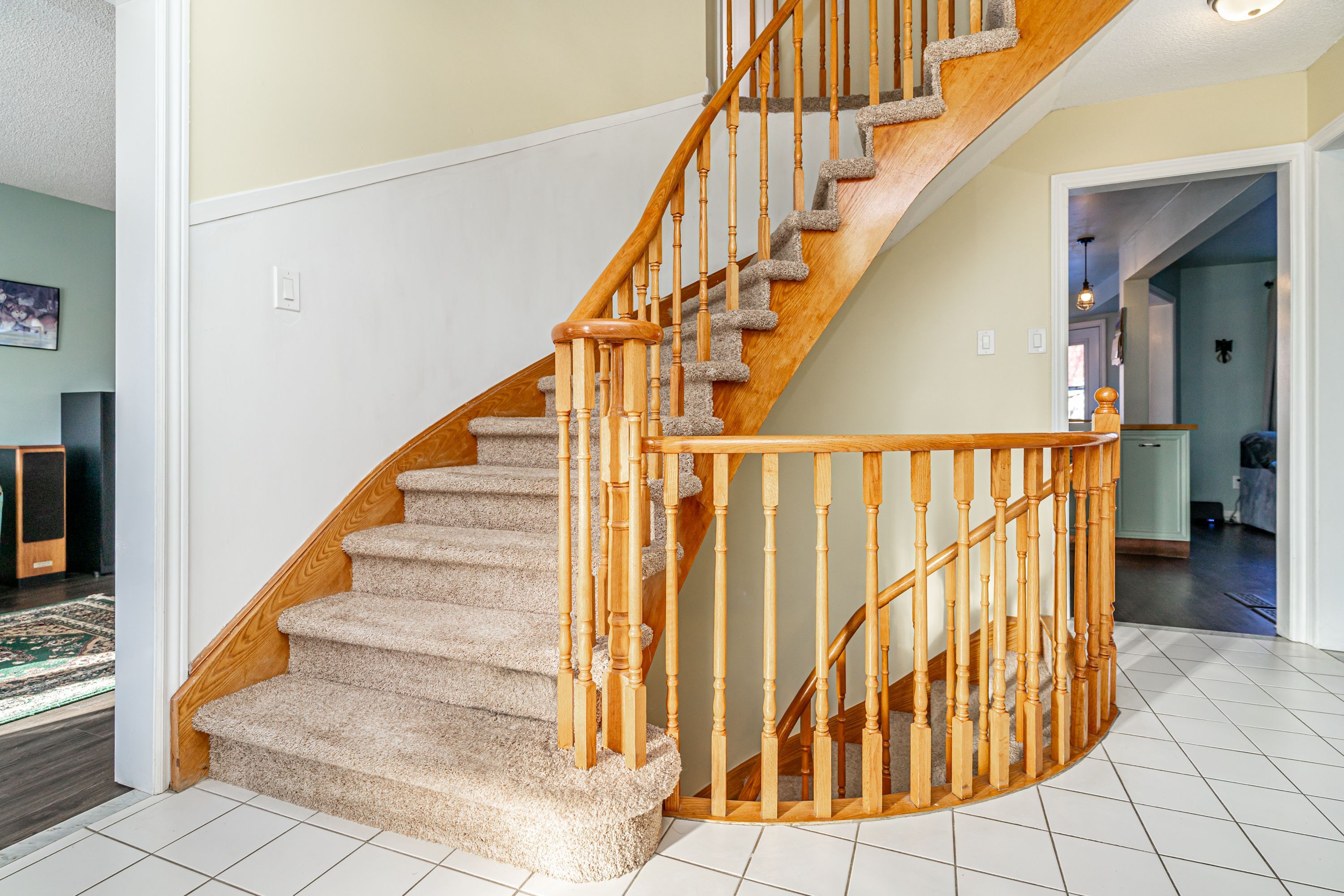 Super bright upgraded home with all the expensive upgrades completed - roof, facia, sofits, gutters, (2018) windows (2025) doors, front, side & back (2019), furnace (2021) tool shed (2021). Kitchen completely renovated like no other in the area to our knowledge, over sized island, breakfast bar, huge amount of cupboards, appliances, family size eat in overlooking family room ( to watch the kids). Walk out to large landscaped yard. Huge mater with sitting room ( could be babies room), walk in closet - 4 pc bath with separate shower & tub. 2 other good size bedrooms & 4 pcs bath on second floor. All this on premium oversized lot in quite very desirable area, great access to 401,403,407,schools, parks, mall. Do not miss this one