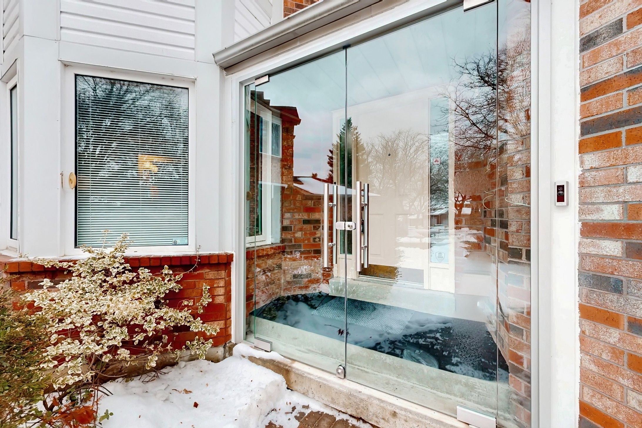 • Stylish glass-enclosed front porch adds modern functionality.