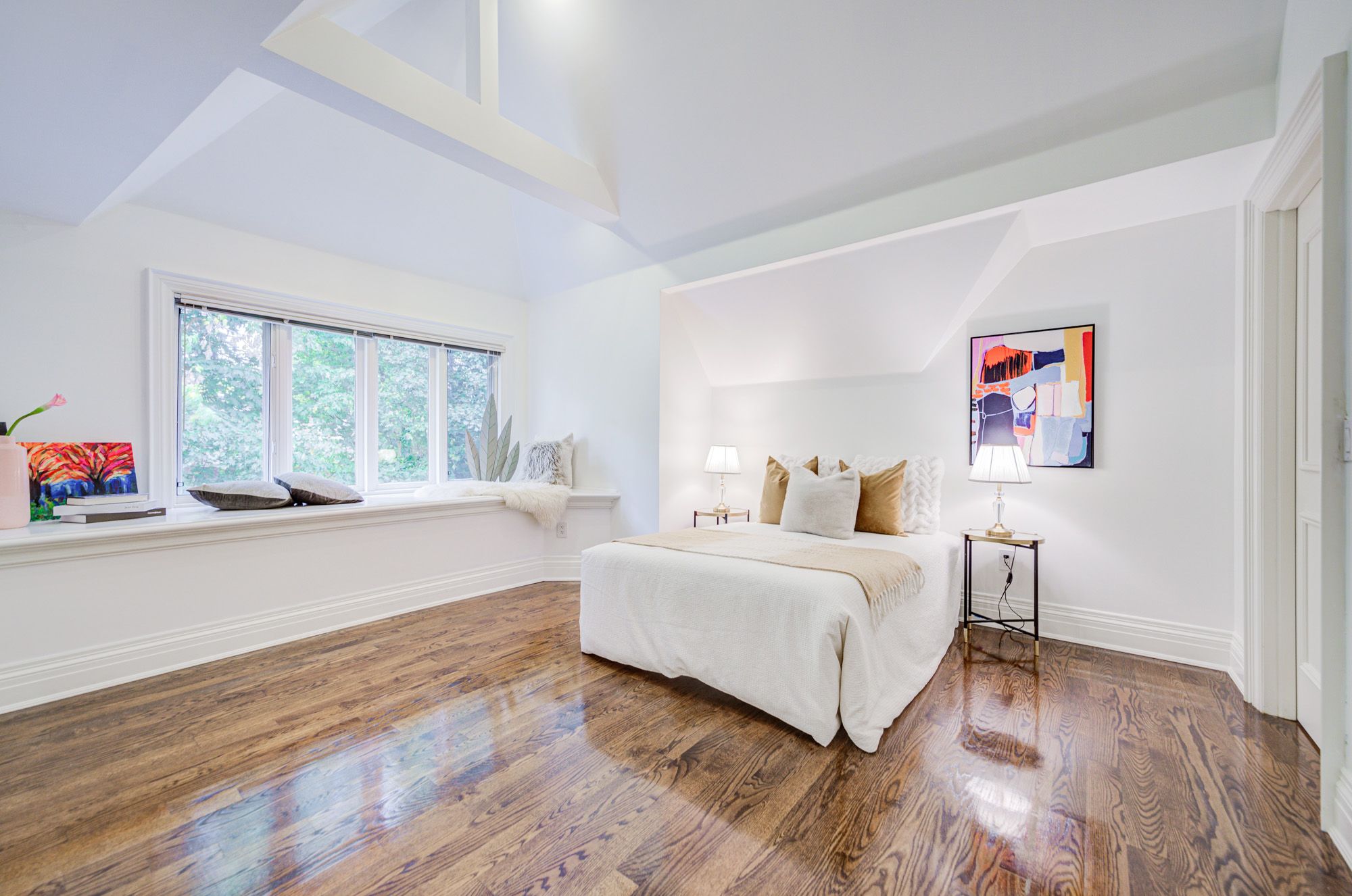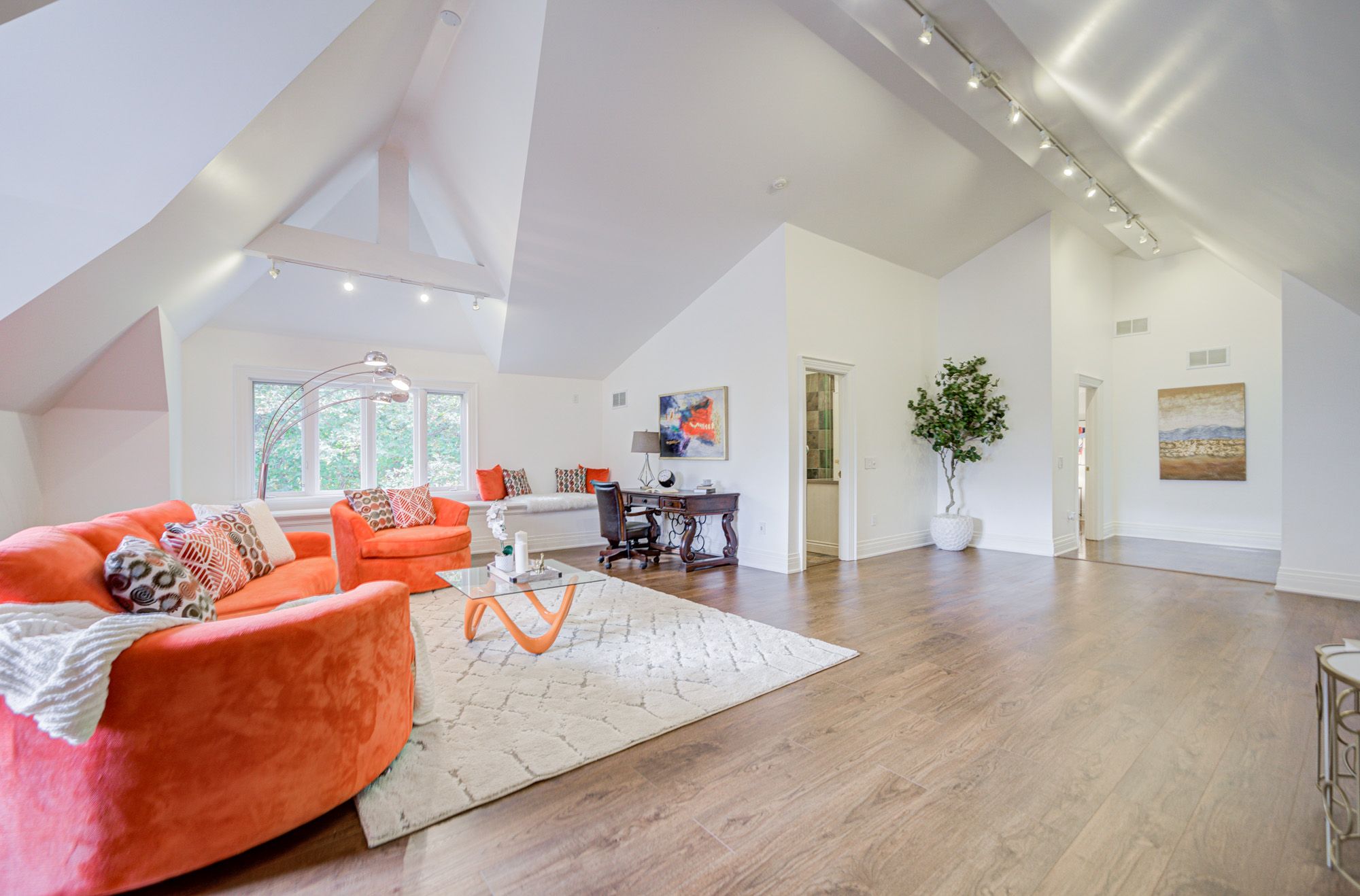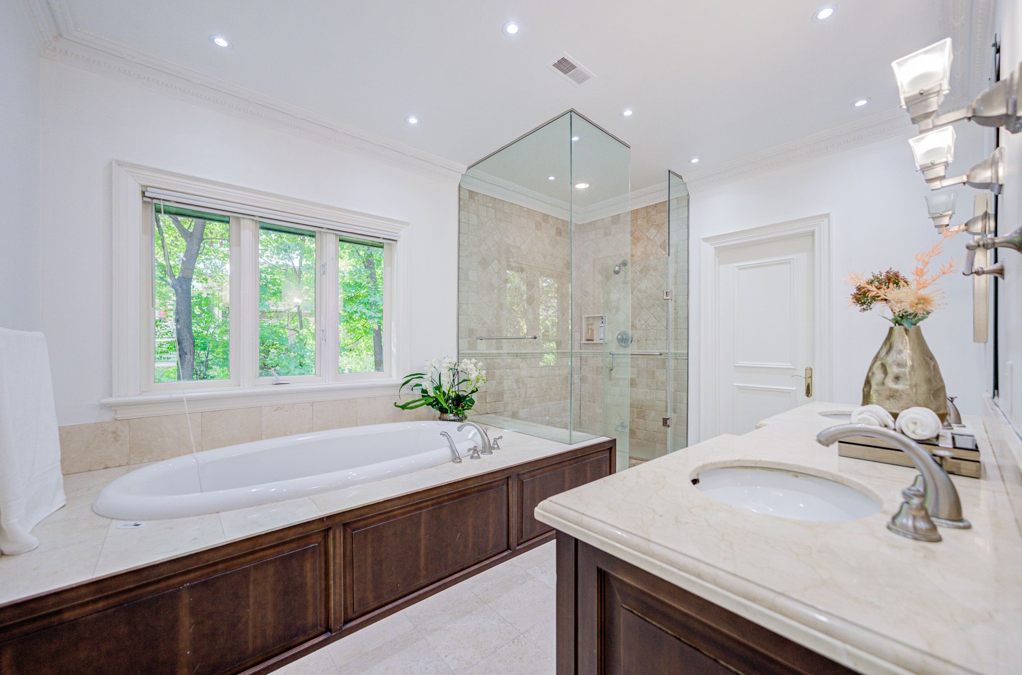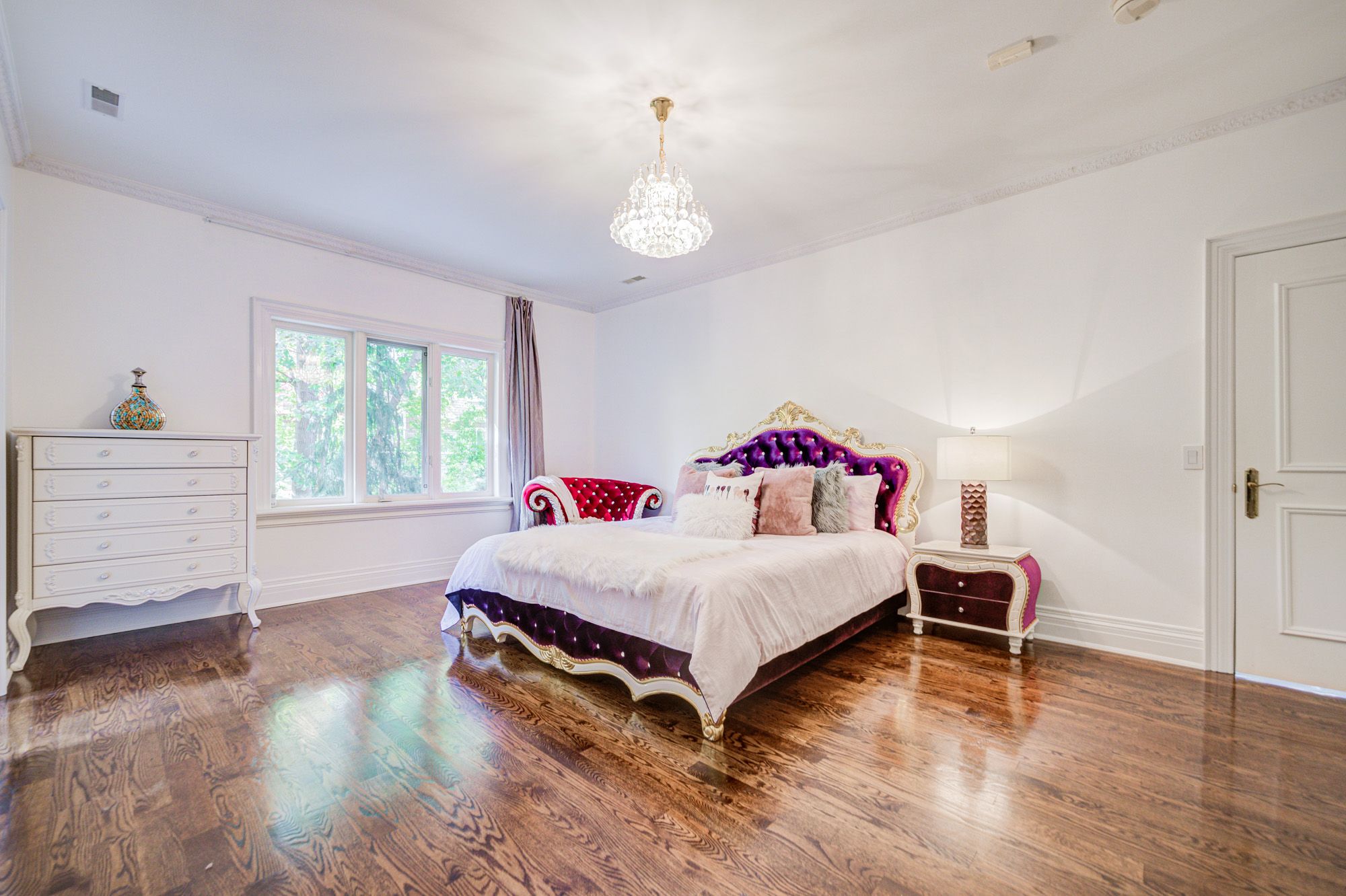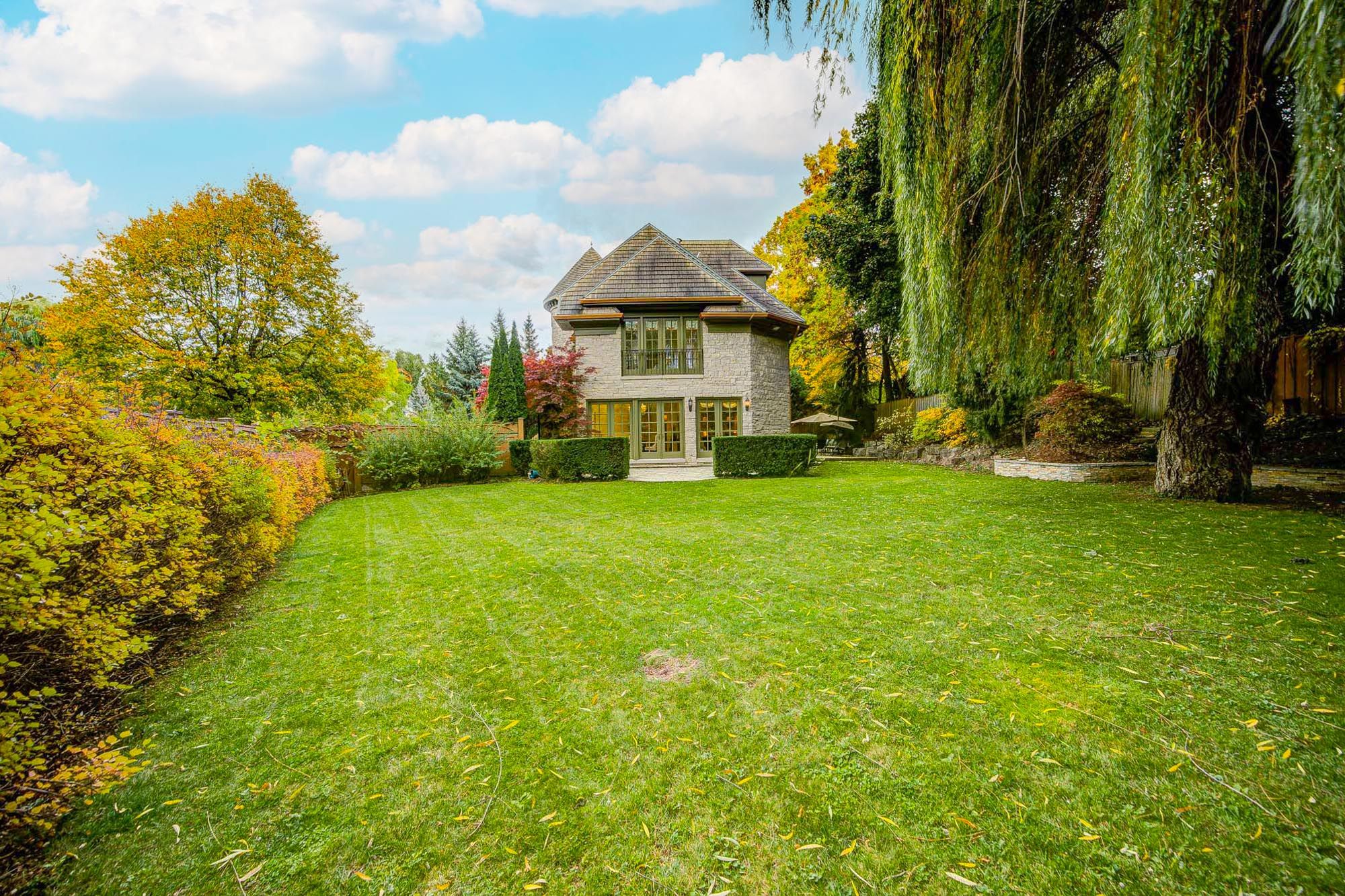 This spectacular, custom-crafted, architecturally designed 23-year-new residence is nestled on a quiet cul-de-sac in the prestigious st. Andrew-windfields family-friendly neighborhood. Situated on a 270 ft wide private treed lot (15,750 sqft) with park-like yards, it offers over 6,500 square feet of luxurious living space, including a 1,670 sqft separate-entrance basement. This home features a striking four sides stone exterior and soaring ceilings. A circular iron staircase anchors the elegant interior, where every bedroom includes its own ensuite bathroom. 2 kitchens side by side on main floor. The spacious primary suite offers a large sitting area and a 6-piece ensuite, while the second-floor laundry room adds daily convenience. The unique third-floor loft showcases a vaulted ceiling, open-concept office, bedroom with 4-piece semi-ensuite, and a huge home entertainment area, adding architectural flair. The open-concept lower level, with a separate entrance, includes a nanny room with 4-piece ensuite, an extra powder room, and plenty of storage-providing the perfect setting for family gatherings and entertainment. The circular driveway enhances curb appeal and provides ample parking. The home is impeccably maintained and in immaculate condition, features two central air conditioners (2014), two newer furnaces, two sump pumps, a double weeping tile system, and an hrv. This one-of-a-kind home is ideally located close to highways, parks, and top private schools, and within walking distance to top-ranking owen ps and york mills ci-offering the perfect blend of sophistication, comfort, and convenience.