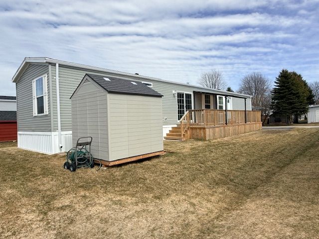 Welcome to huron haven village, a charming year-round community located just north of goderich! This impressive manufactured home is just a few years old and boasts brand new laminate flooring in the kitchen/living room area. You will be very impressed with the bright open concept, spacious kitchen featuring an abundance of cabinets and peninsula along with a large living room sporting a gas fireplace. The primary bedroom offers lots of closet space and 3pc en-suite bath. The generous sized second bedroom is at the other side of the home with 4 pc bath right beside. Utilities include natural gas heating and central a/c. Outside, there is a huge deck for entertaining or relaxing, storage shed and paved driveway! This is a wonderful opportunity to own your own home in the newest section of a quaint land lease community which boasts an outdoor swimming pool and rec center. All this and a great location, close to shopping, golf courses and the shores of lake huron! Bonus - fridge, stove, dishwasher, otr microwave and washer/dryer included!
