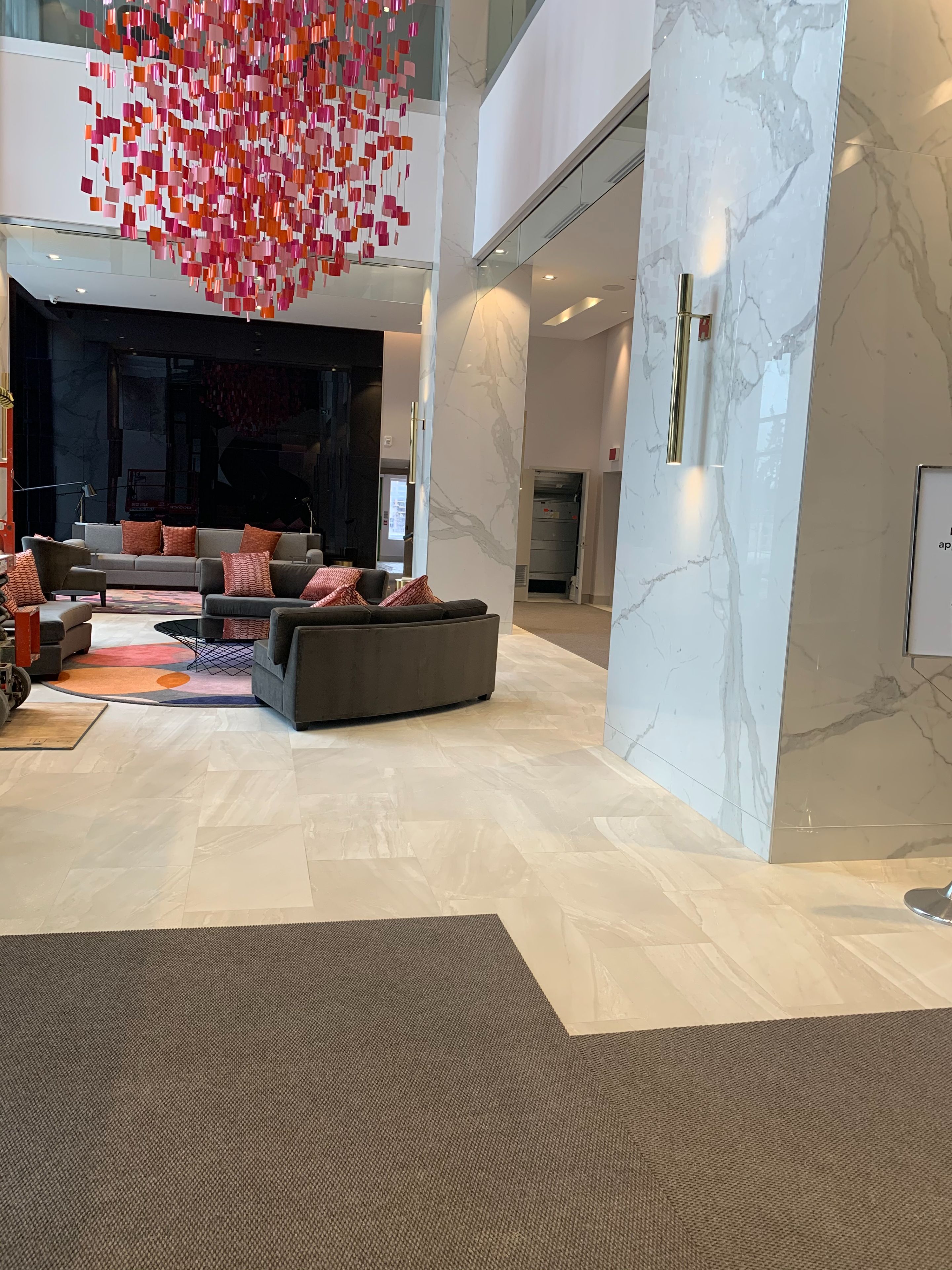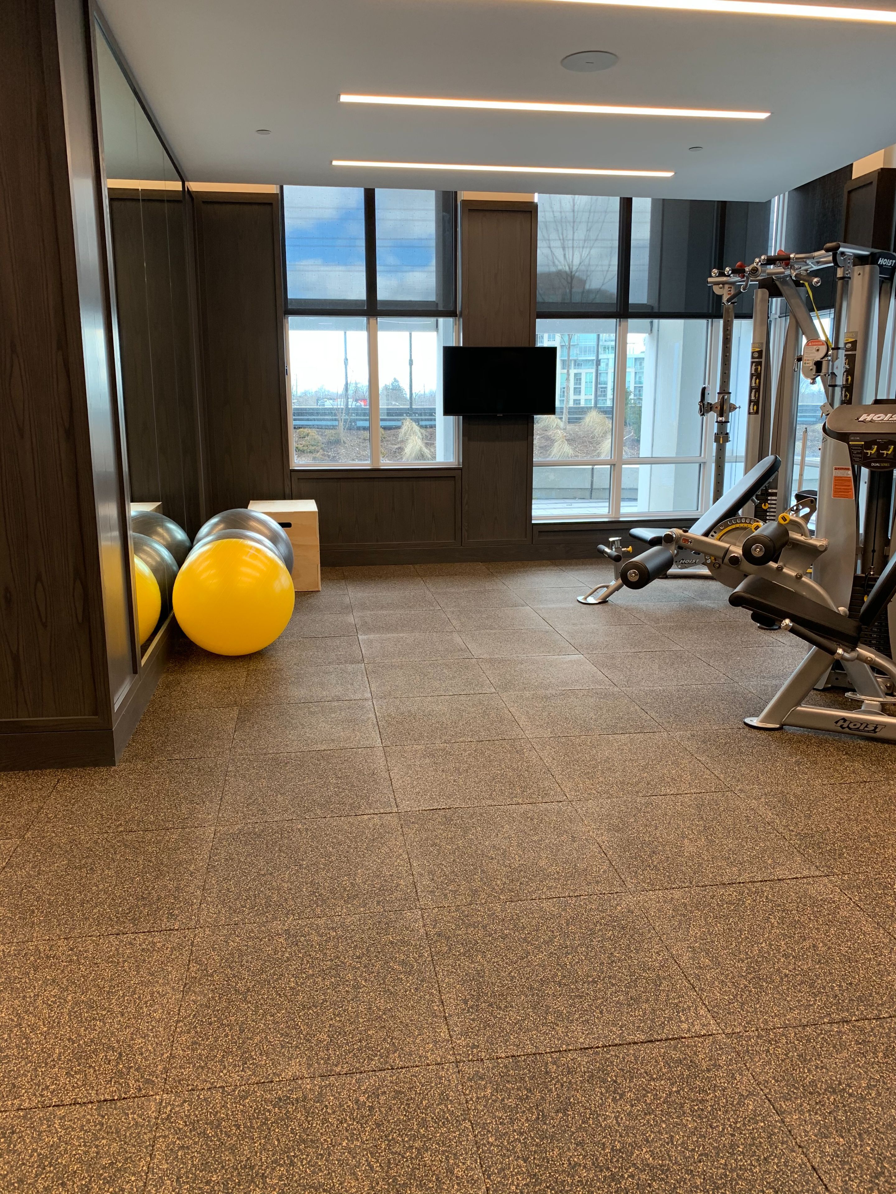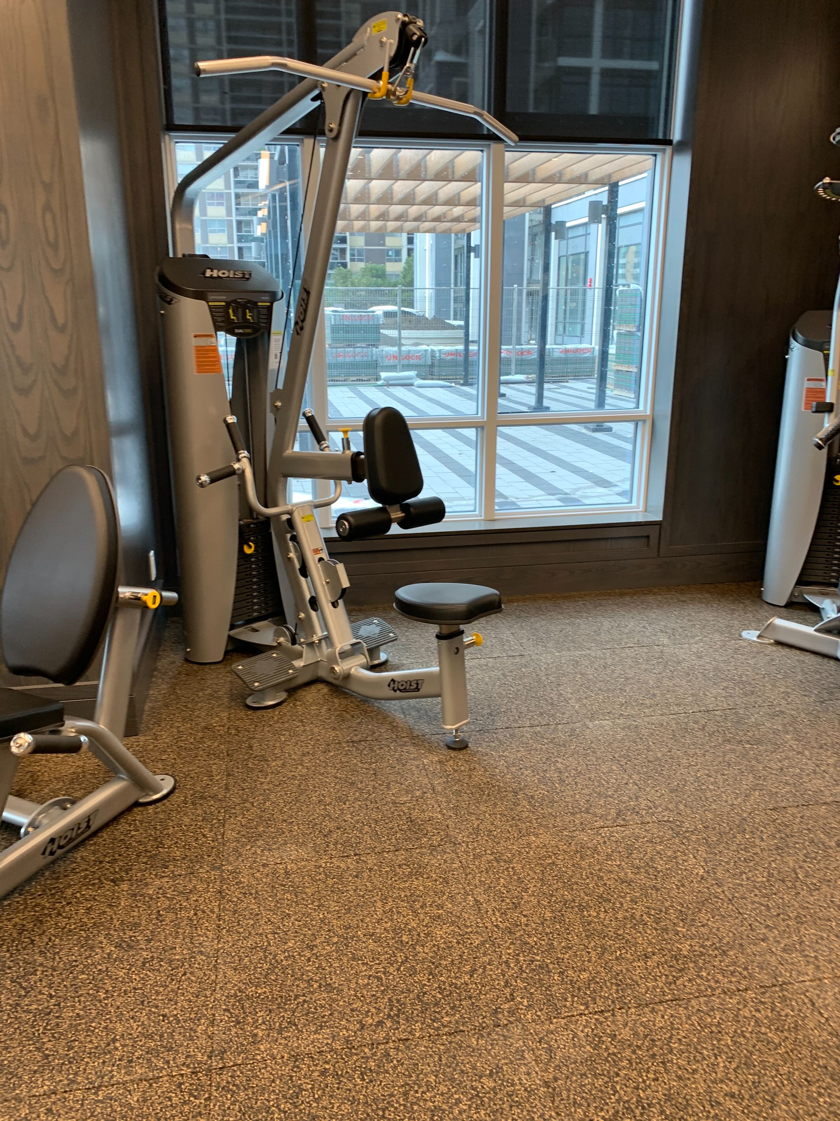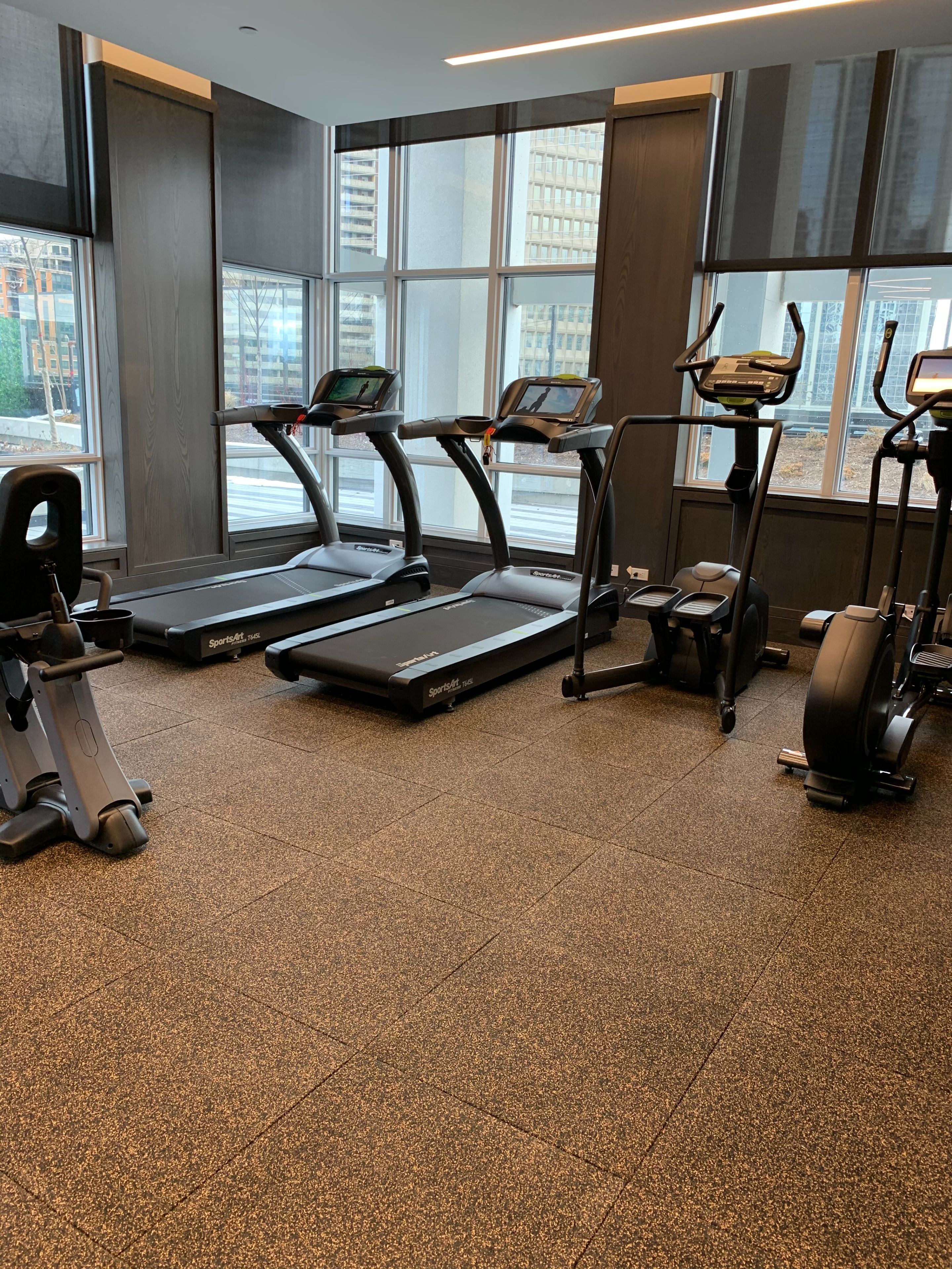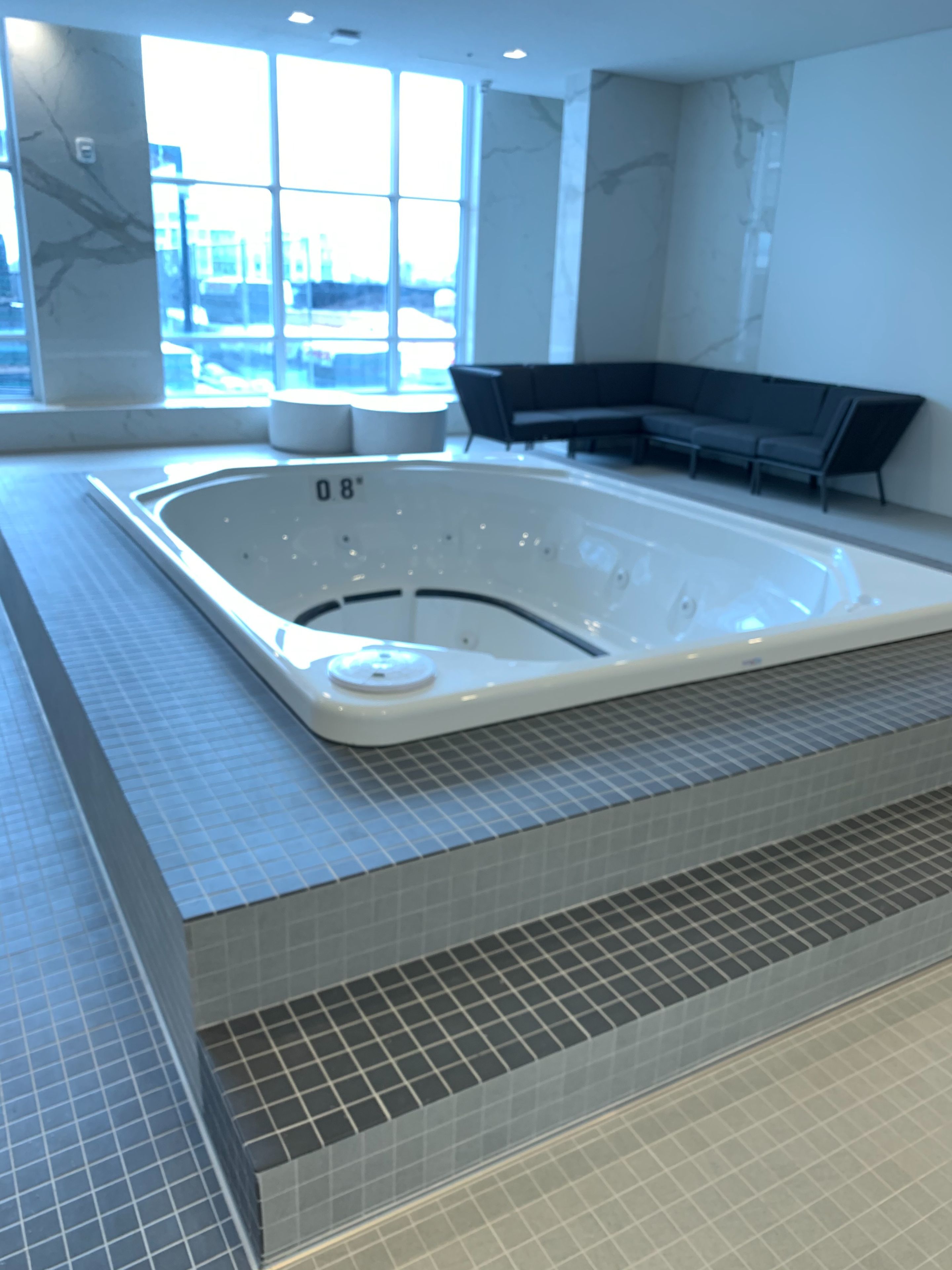 • Building amenities include gym, indoor pool, and 24-hour concierge.