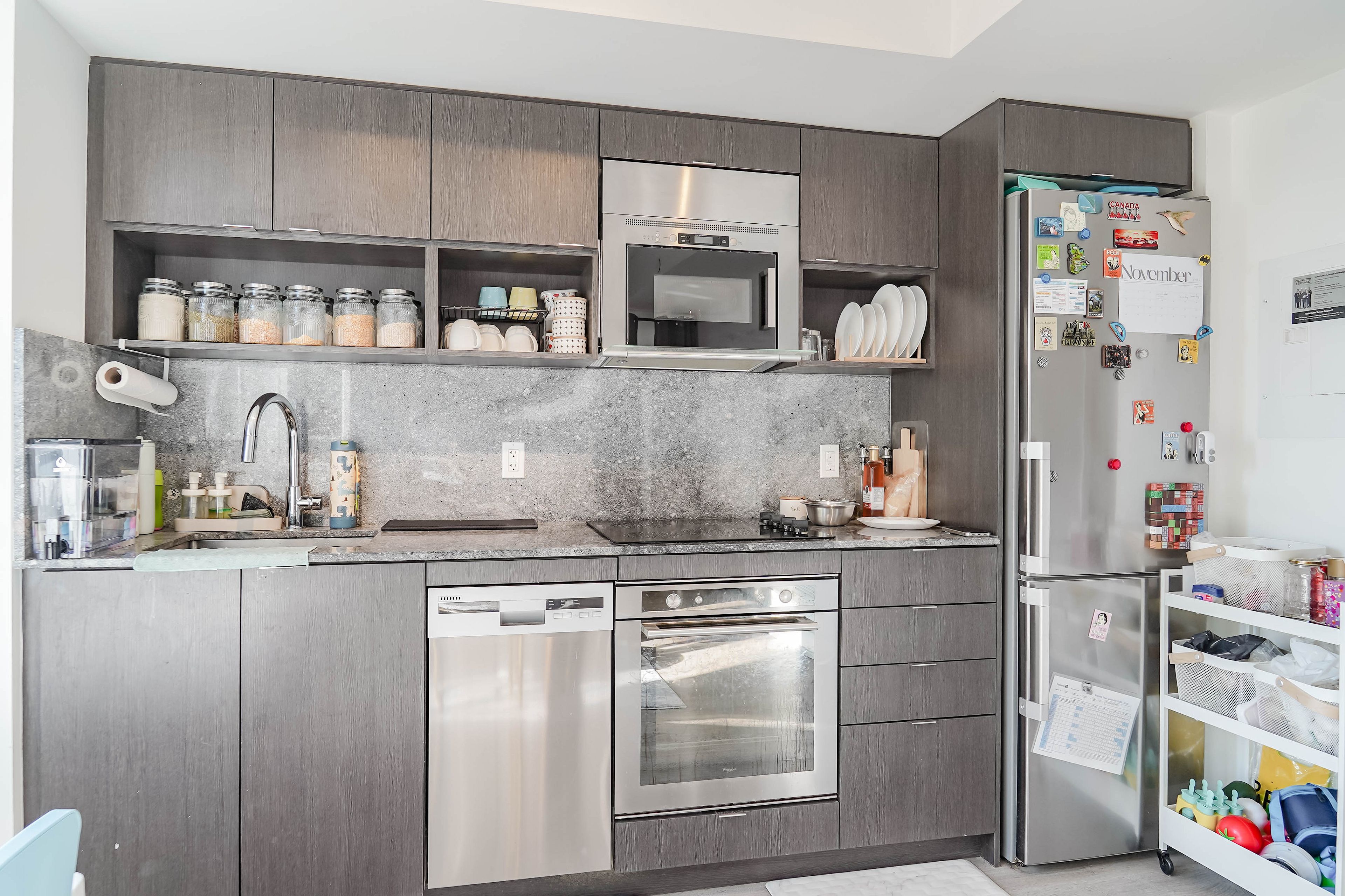 Experience modern urban living in this stylish 1-bedroom, 1-bath condo offering an open-concept layout with floor-to-ceiling windows that fill the space with natural light *the contemporary kitchen features sleek cabinetry and stainless steel appliances, seamlessly flowing into a cozy living area perfect for entertaining or relaxing *residents enjoy access to premium amenities including a fully equipped gym, indoor pool, sauna, yoga studio, basketball court, theatre room, and 24-hour concierge service *smart building features include contactless parcel service and license plate recognition *outdoor perks include bbq area, splash pool, sundeck, playground, and lounge spaces *conveniently located near parks, grocery stores, and public transit *this condo offers comfort, lifestyle, and convenience in one exceptional package!