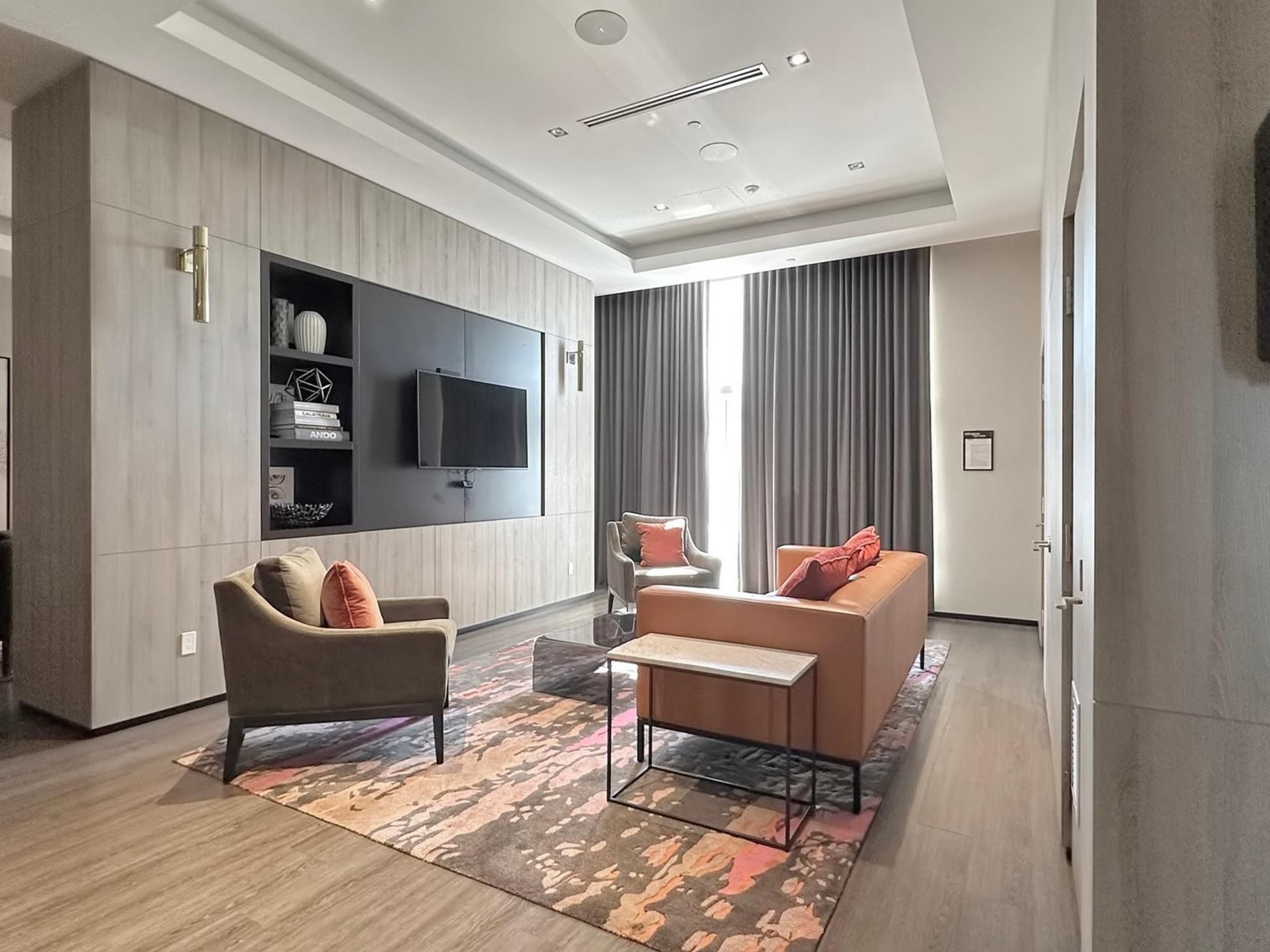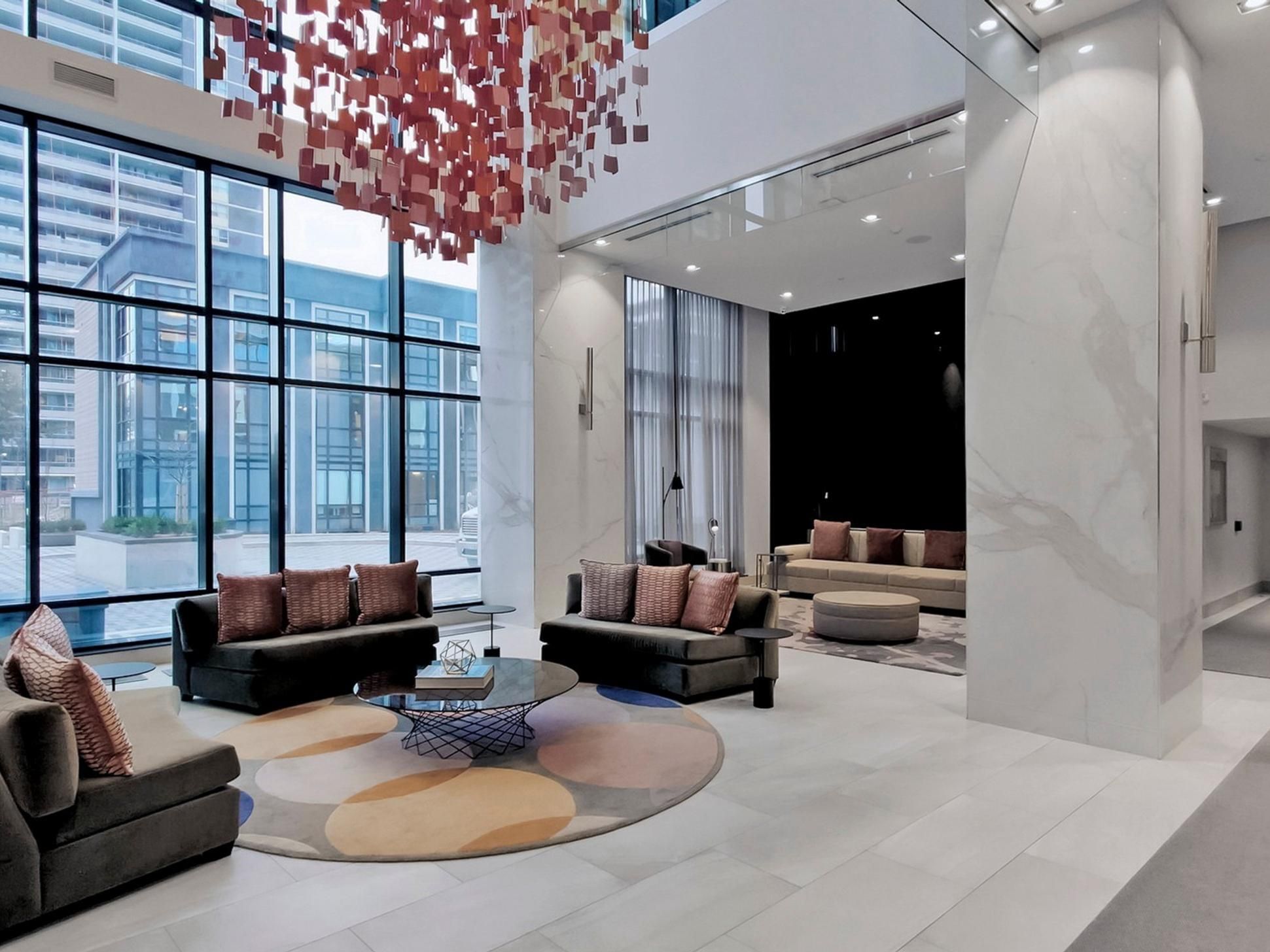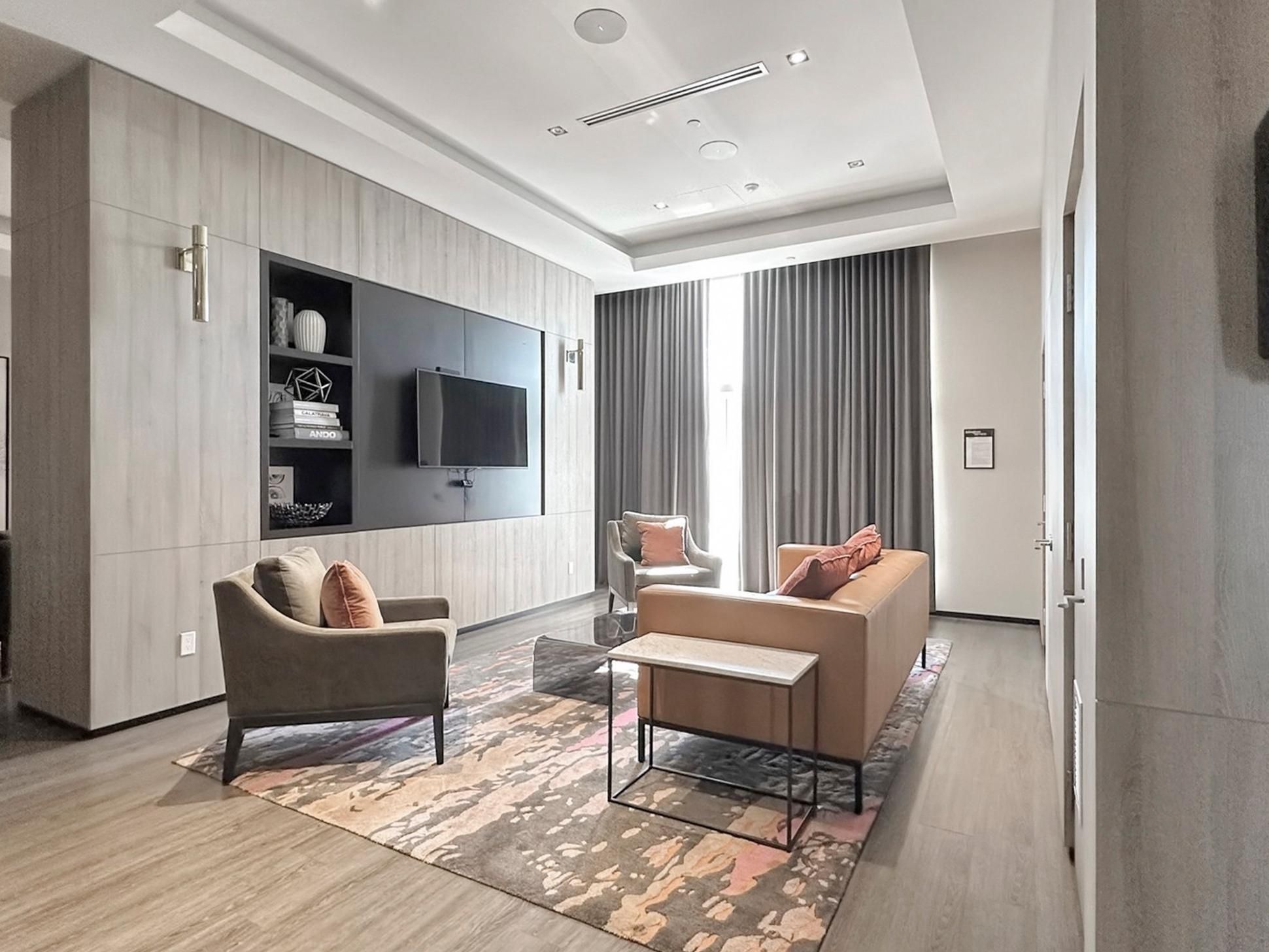 • World-class building amenities including indoor pool, gym, and entertainment spaces.