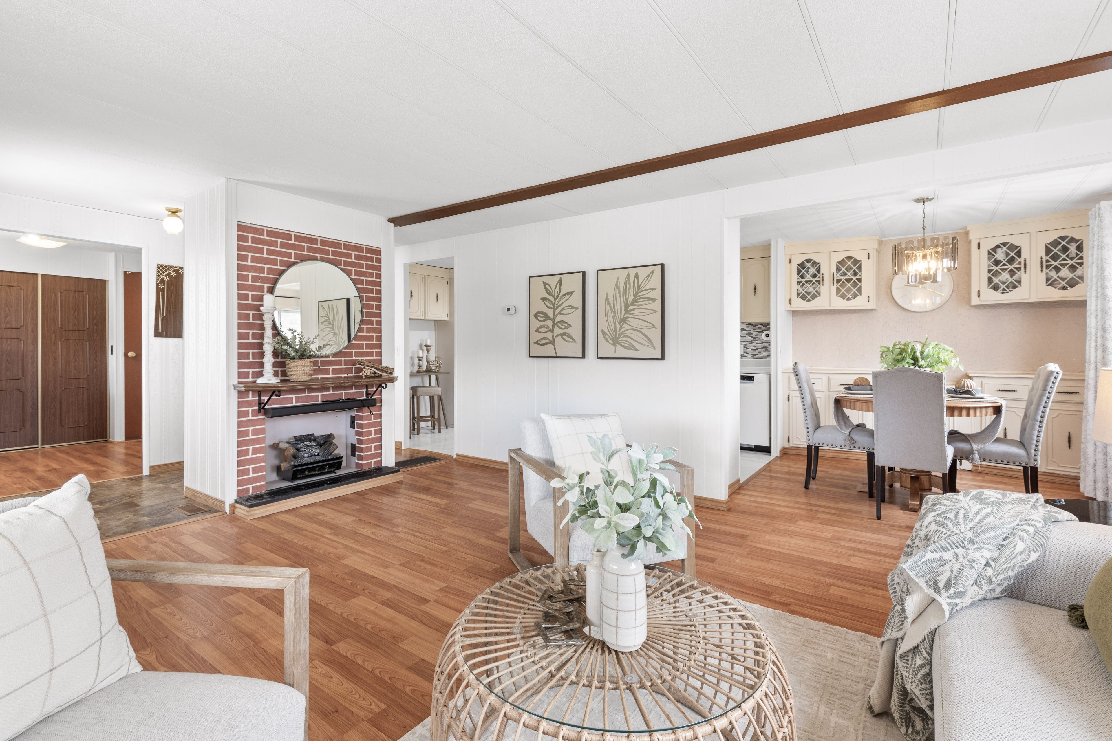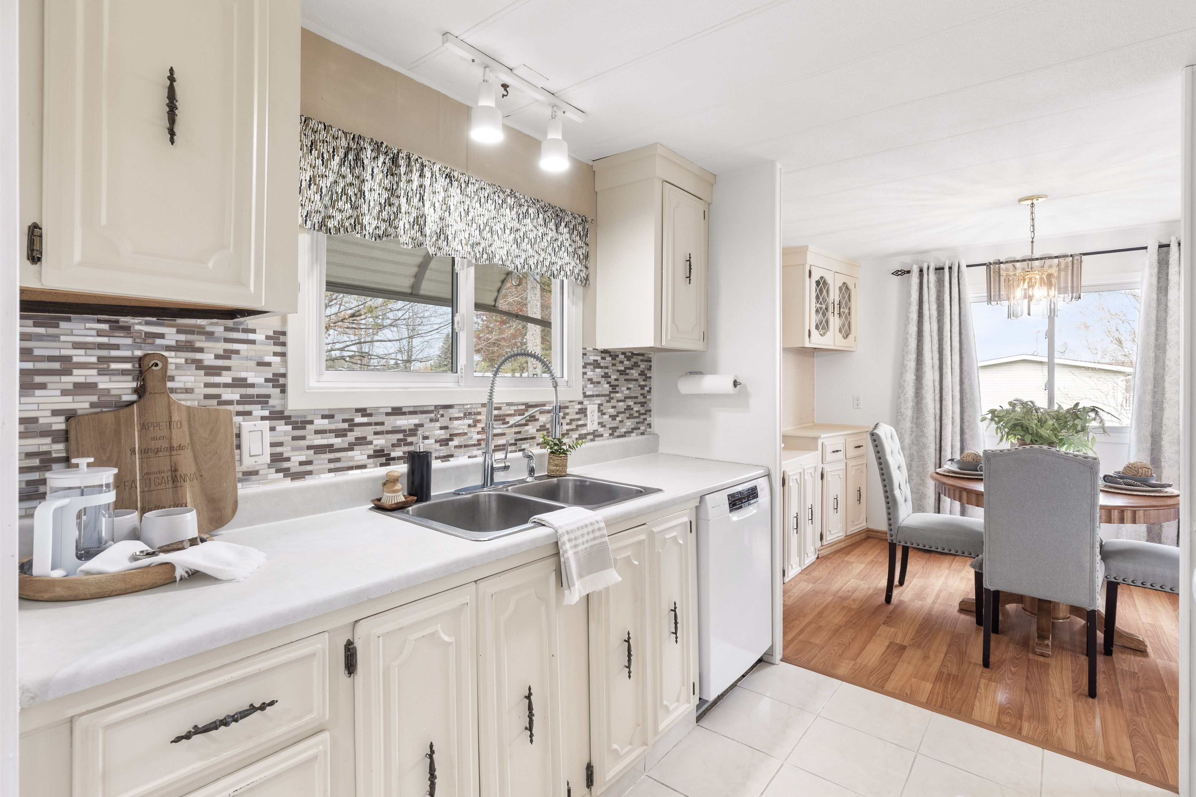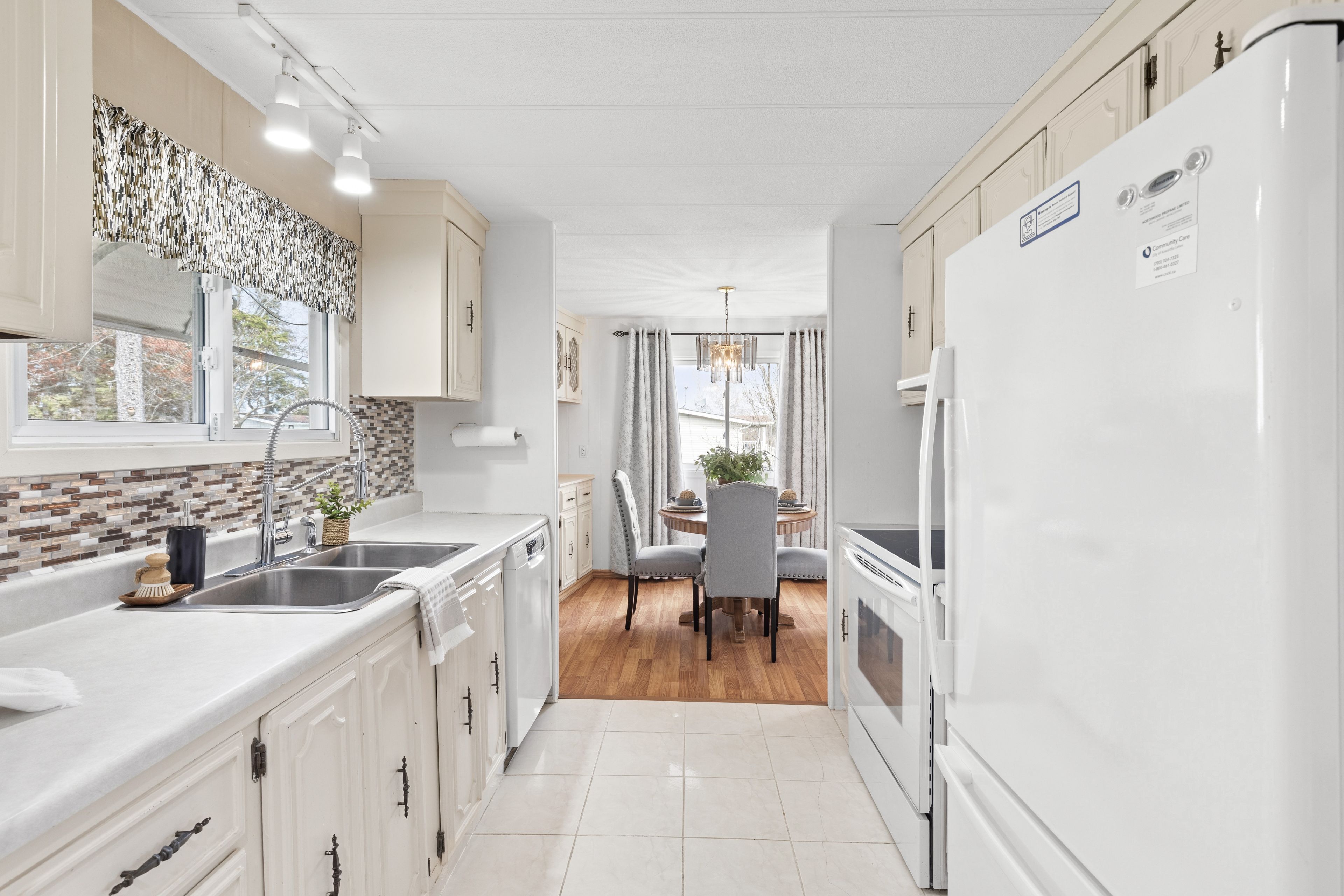 • Open-concept layout with a bright kitchen flowing to dining and living areas.