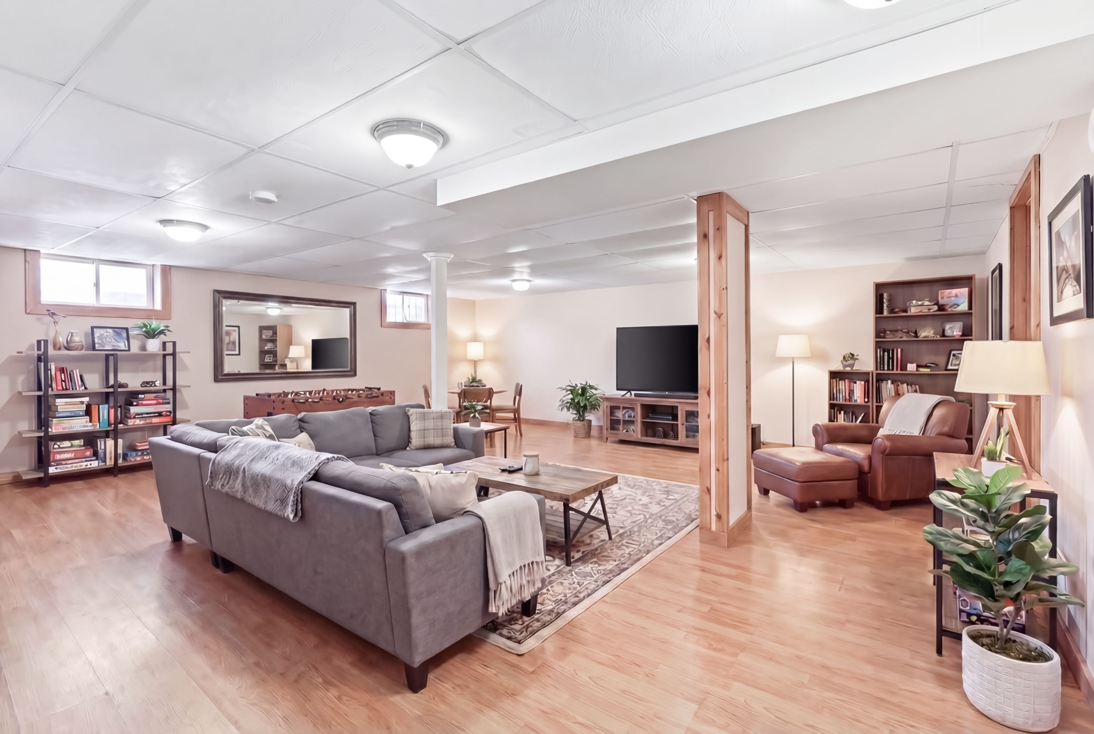 • Finished basement with an additional bedroom and bathroom for extra space.