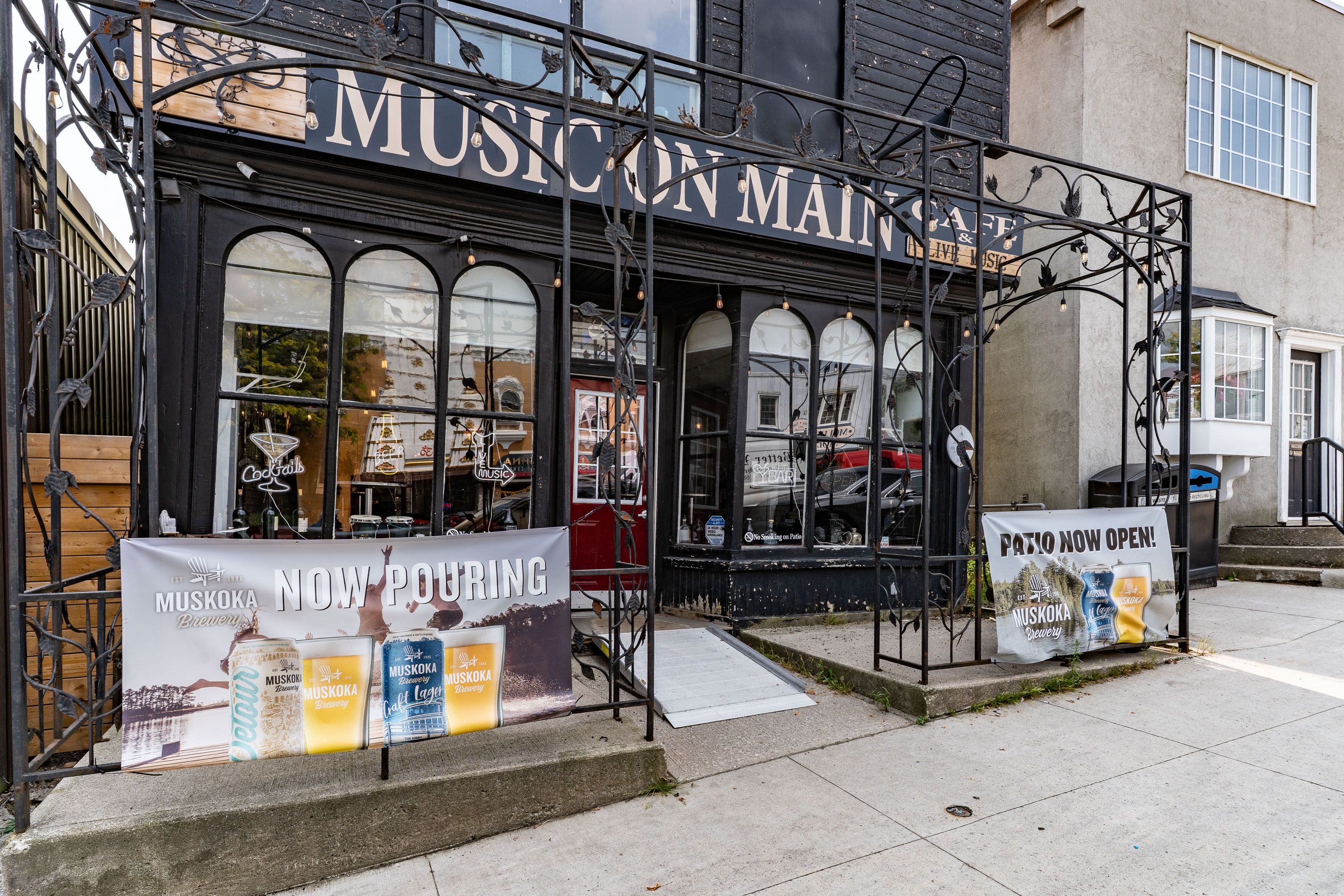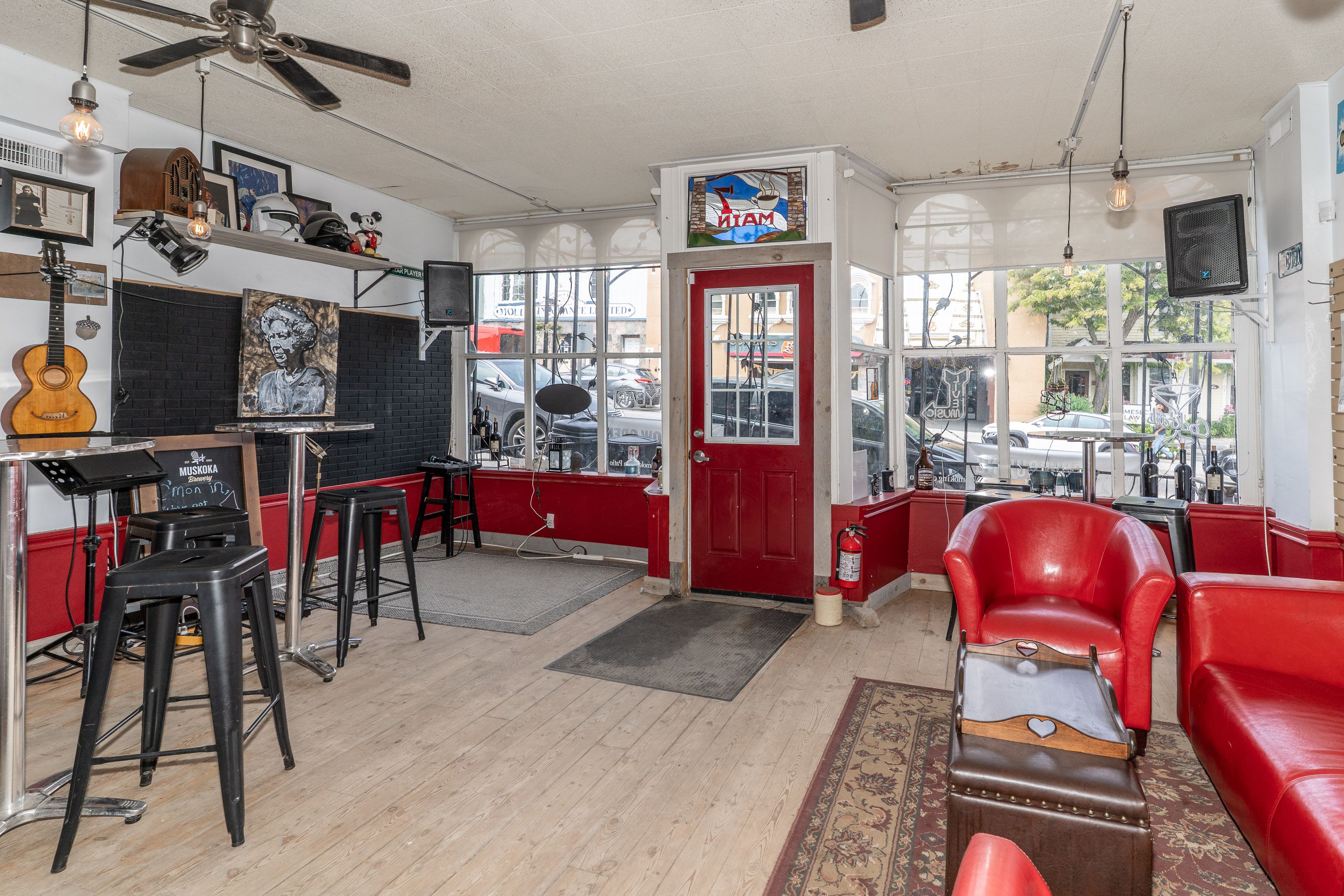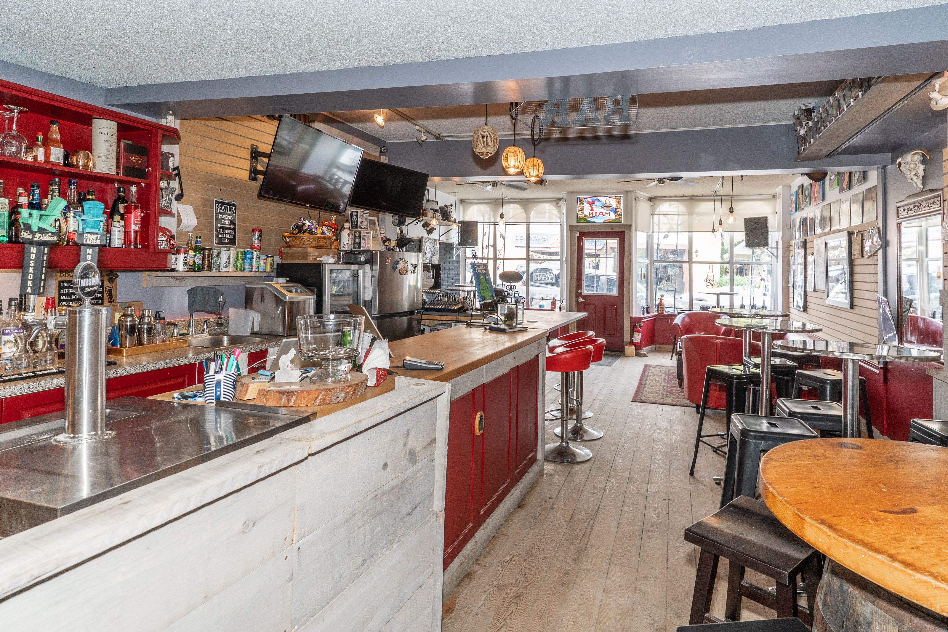 What a wonderful opportunity to own a piece of historical downtown huntsville. This main street location in muskoka, offers a great space both inside and outside to accommodate your ideas of what you want to bring to the town. Currently used as a live music venue / bar , the casual sitting atmosphere leads to an awesome patio. So many ways to utilize this open outside area. Current liquor license does cover outside tables at the entry , the main level and the patio. Also features a kitchen to provide some food for your patrons . The upstairs is a great space for the nights you work late with its own bedroom and bathroom . This building is zoned cbd. Please see documents for allowable uses. The seller is willing to leave almost all contents for the next buyer to start right back up!