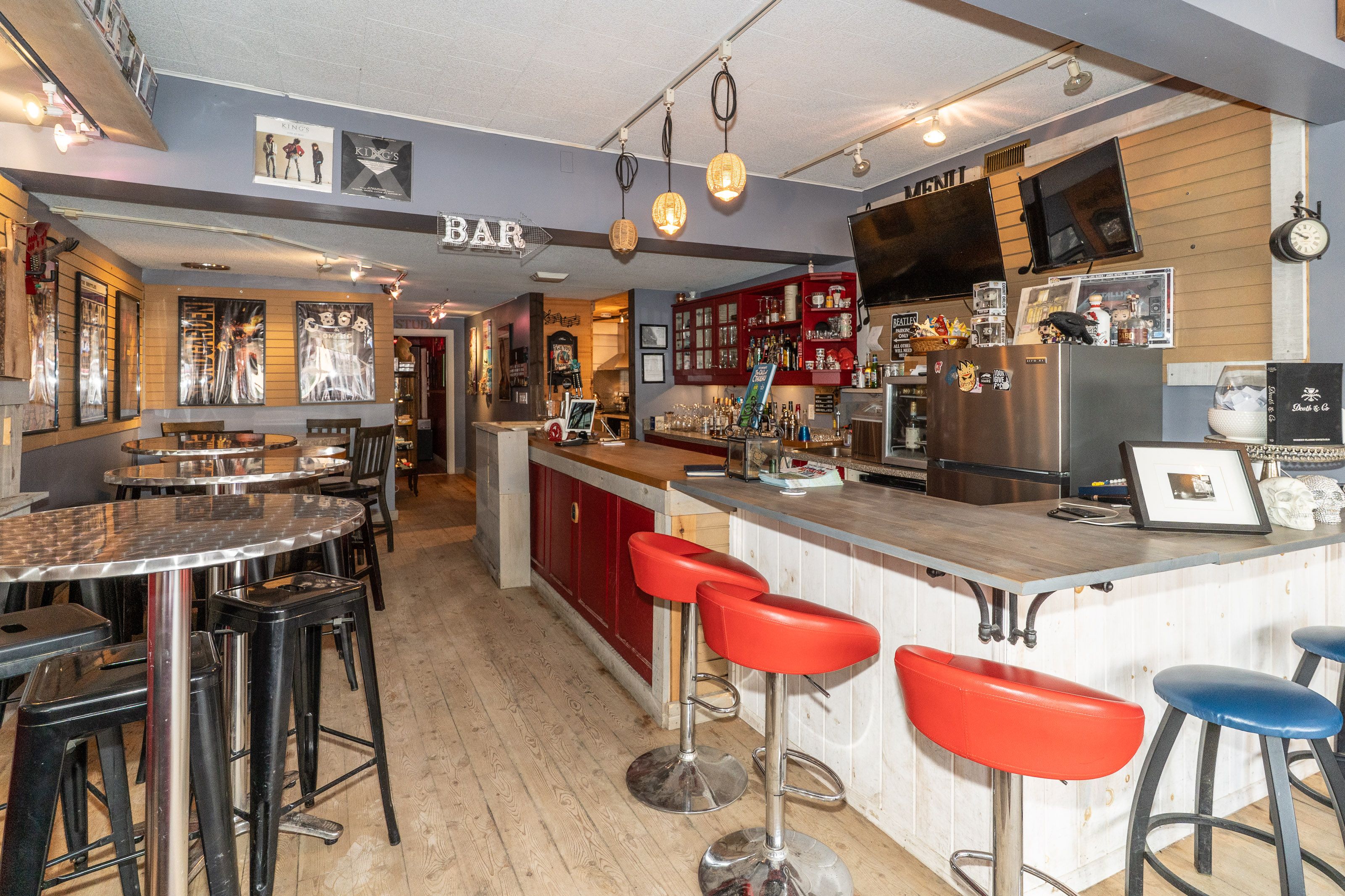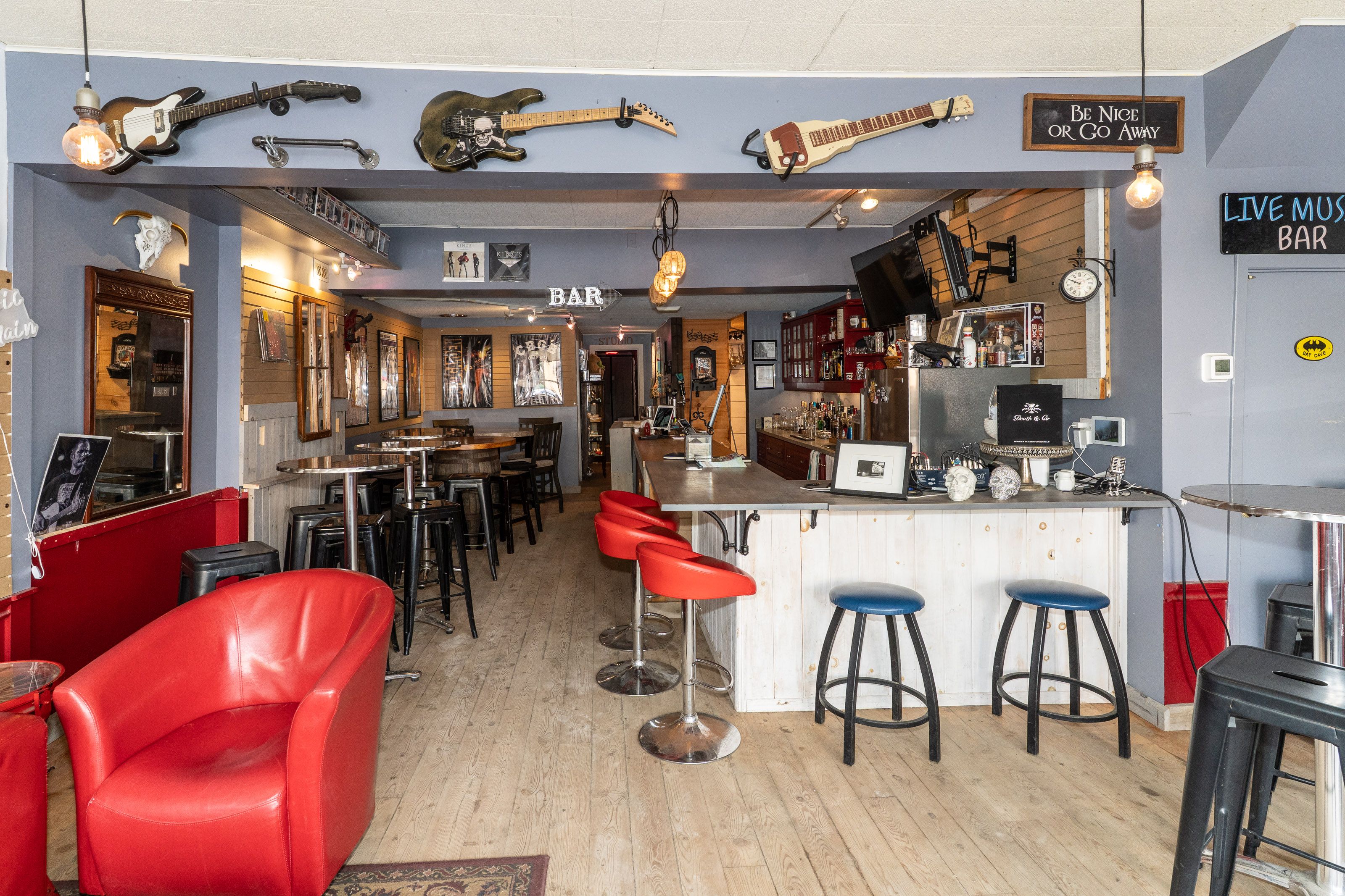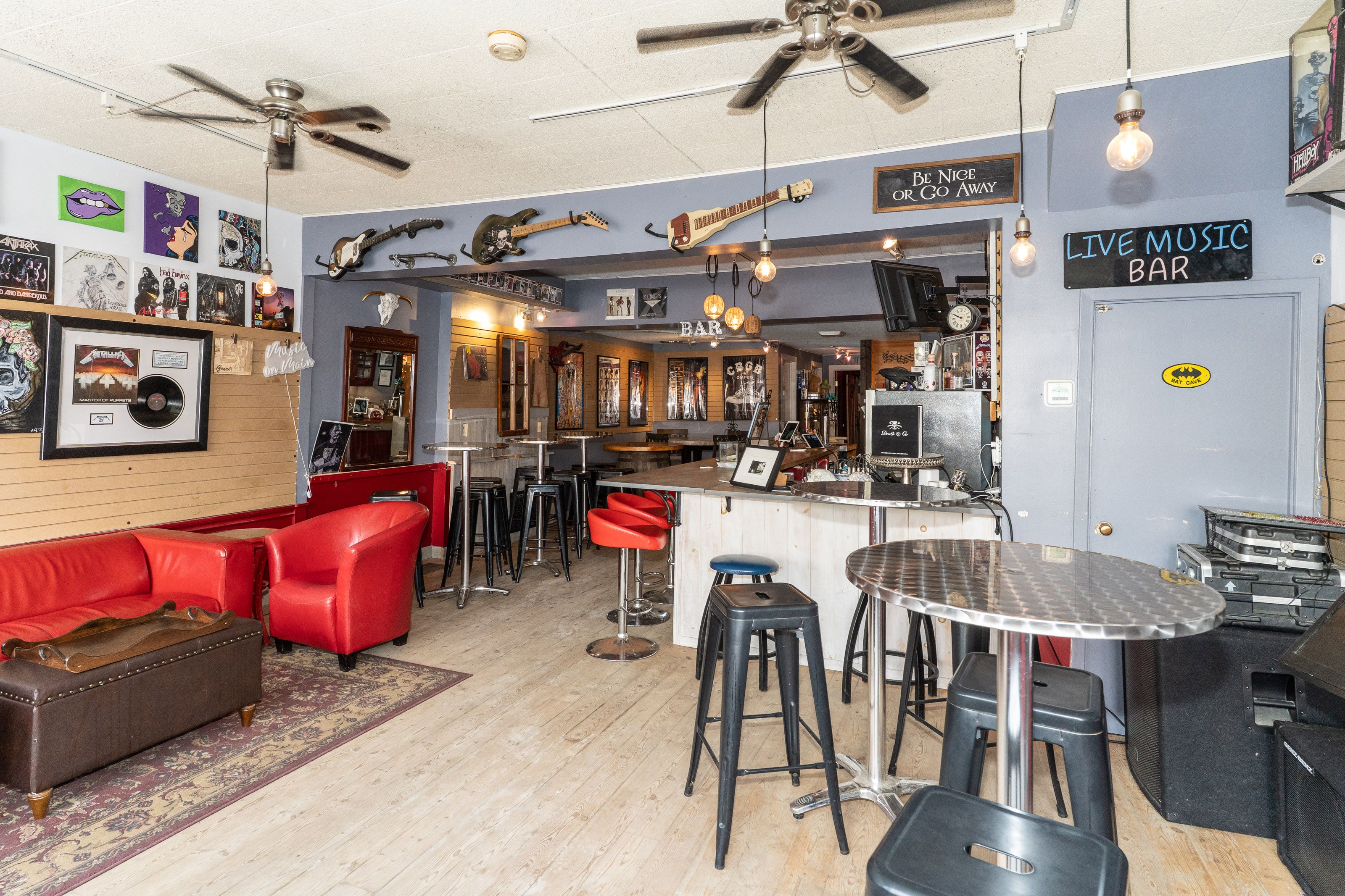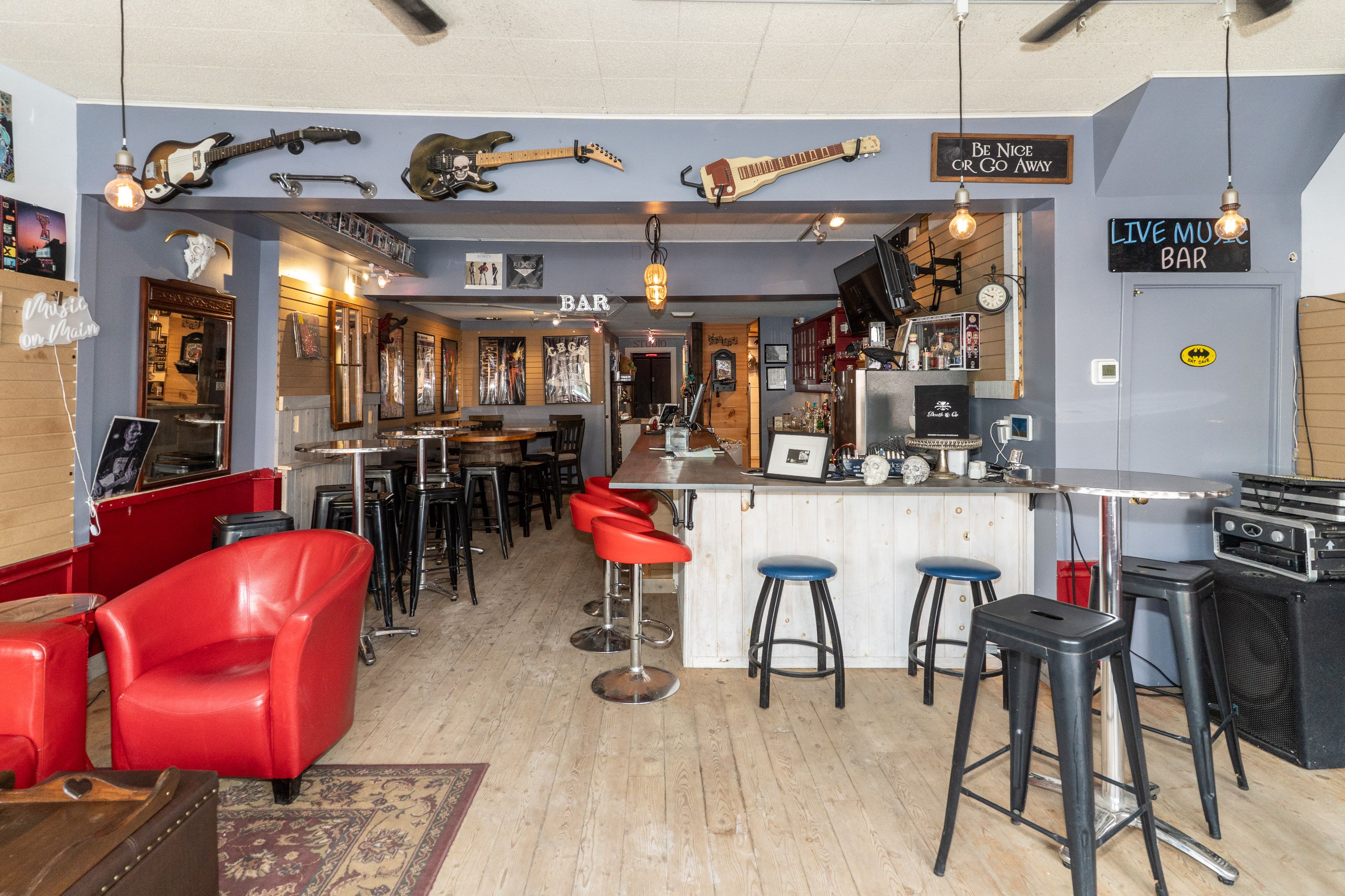 • Current setup as a live music venue with a casual vibe.