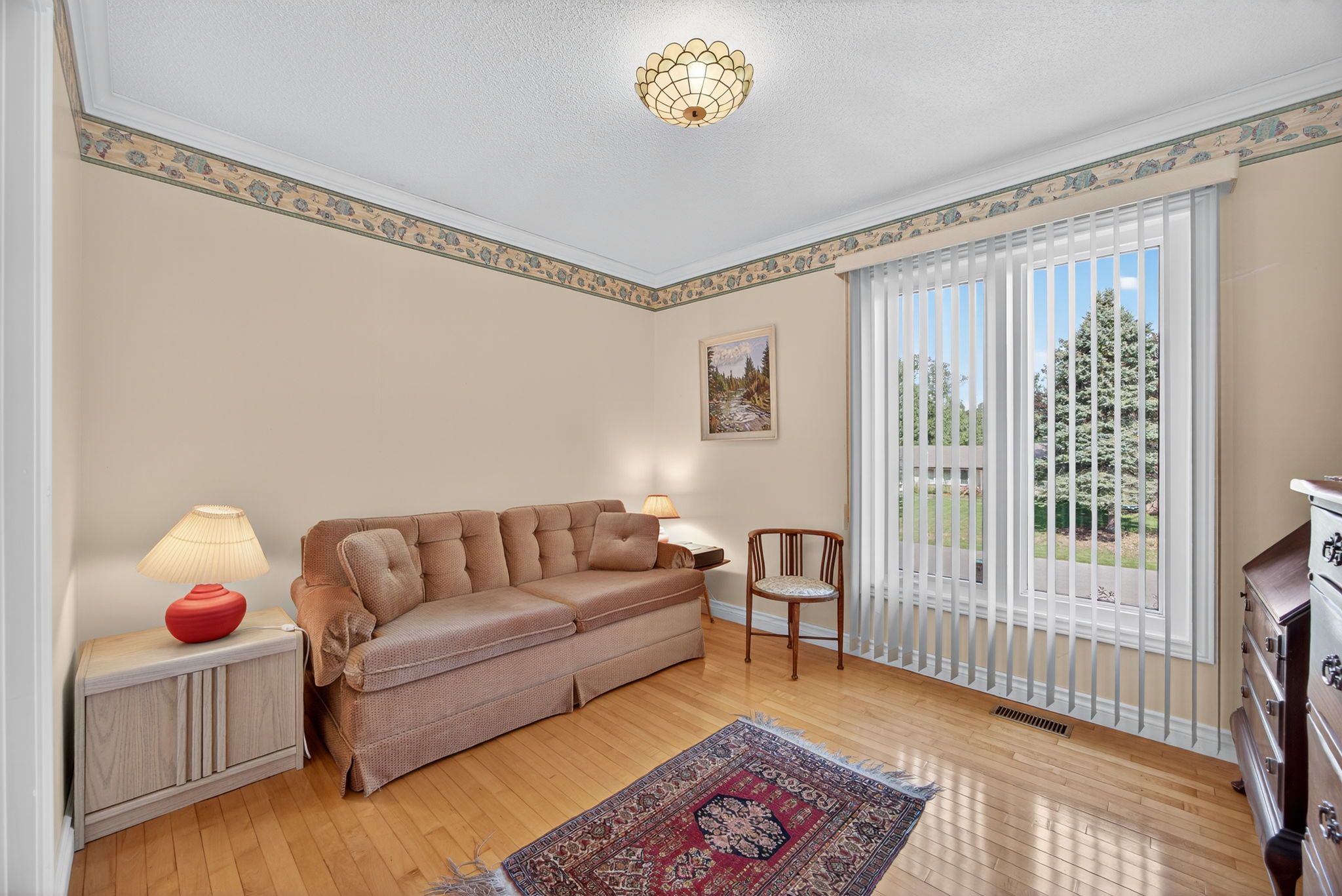 Midhurst home on a quite very low traffic street. 4 bedroom, 2 1/2 baths, 2473 sq ft finished, double garage with inside entry on a large treed private 97 ft x 176 ft level useful lot. Septic replaced in 2009. Open concept eat-in kitchen with stainless steel appliances, overlooks the family room with gas fireplace and walkout to the private backyard. Windows and front door have been replaced. Hardwood floors on main and bedroom levels. Primary suite with double closets and ensuite bath. Original owners, pride of ownership! Midhurst community has trails, willow creek, pharmacy/general store, churches, school, community center, tennis & rink all in the village. Golf & skiing nearby, snow valley minutes away.