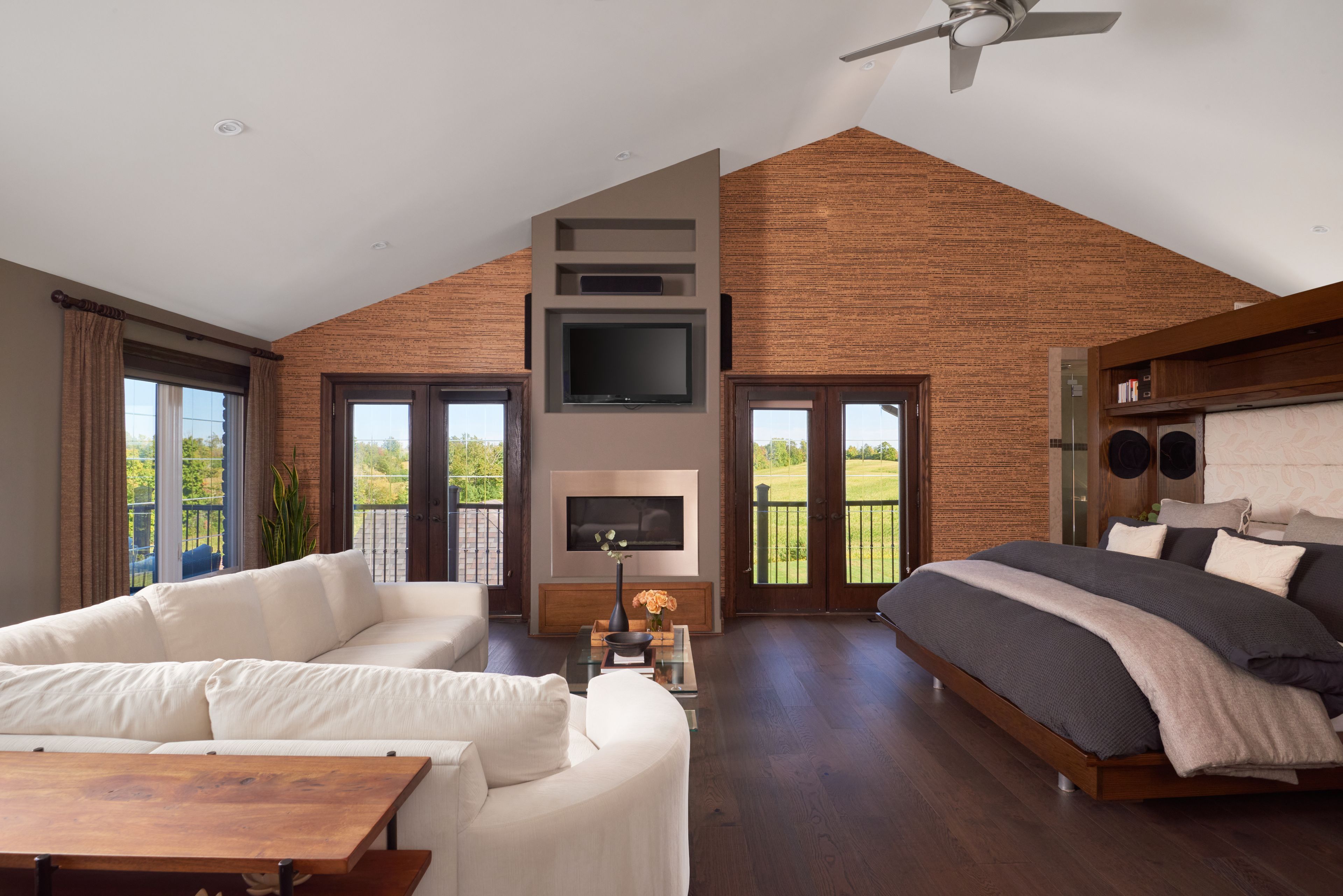 • Grand primary suite features spa-like ensuite and cozy lounge with fireplace.