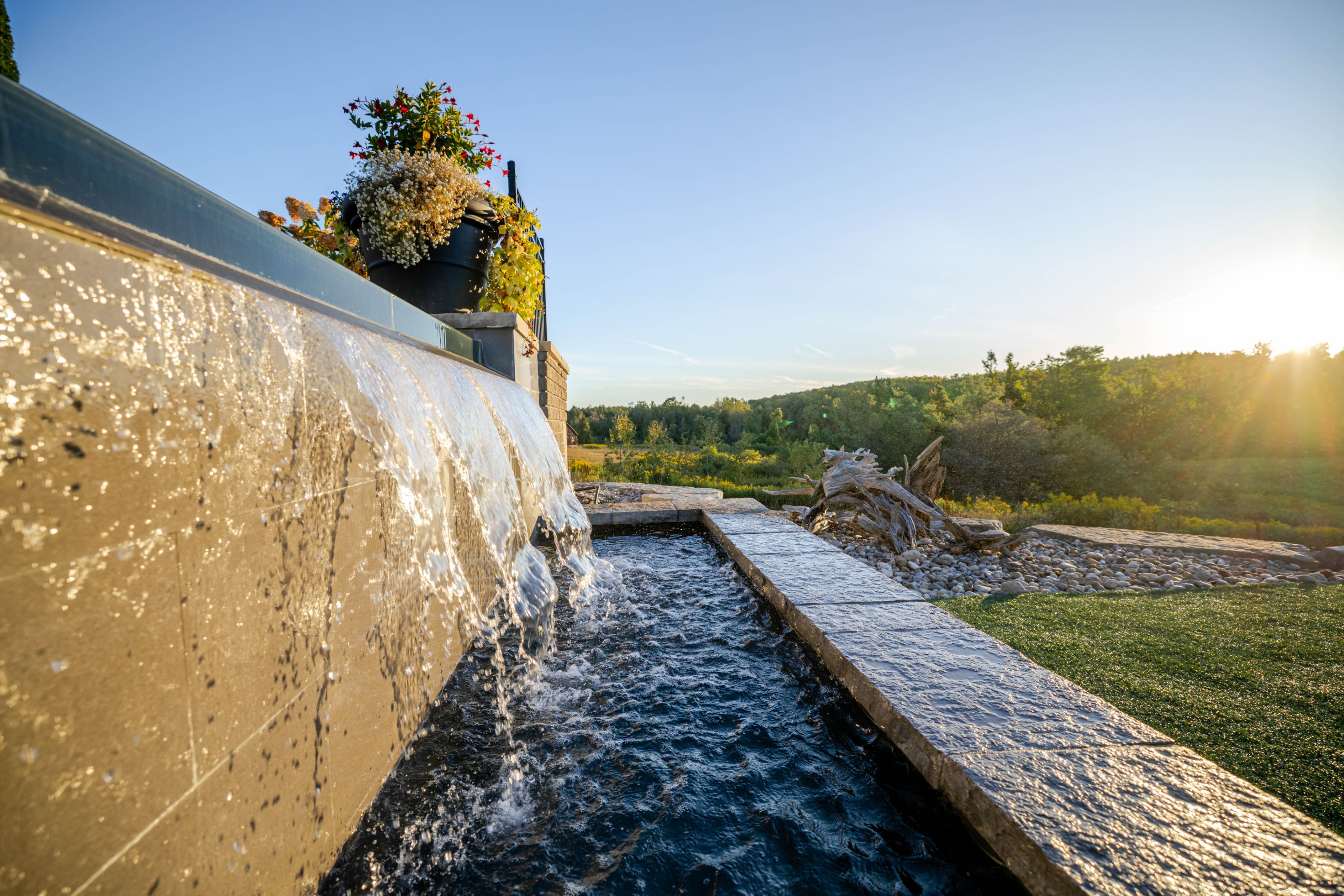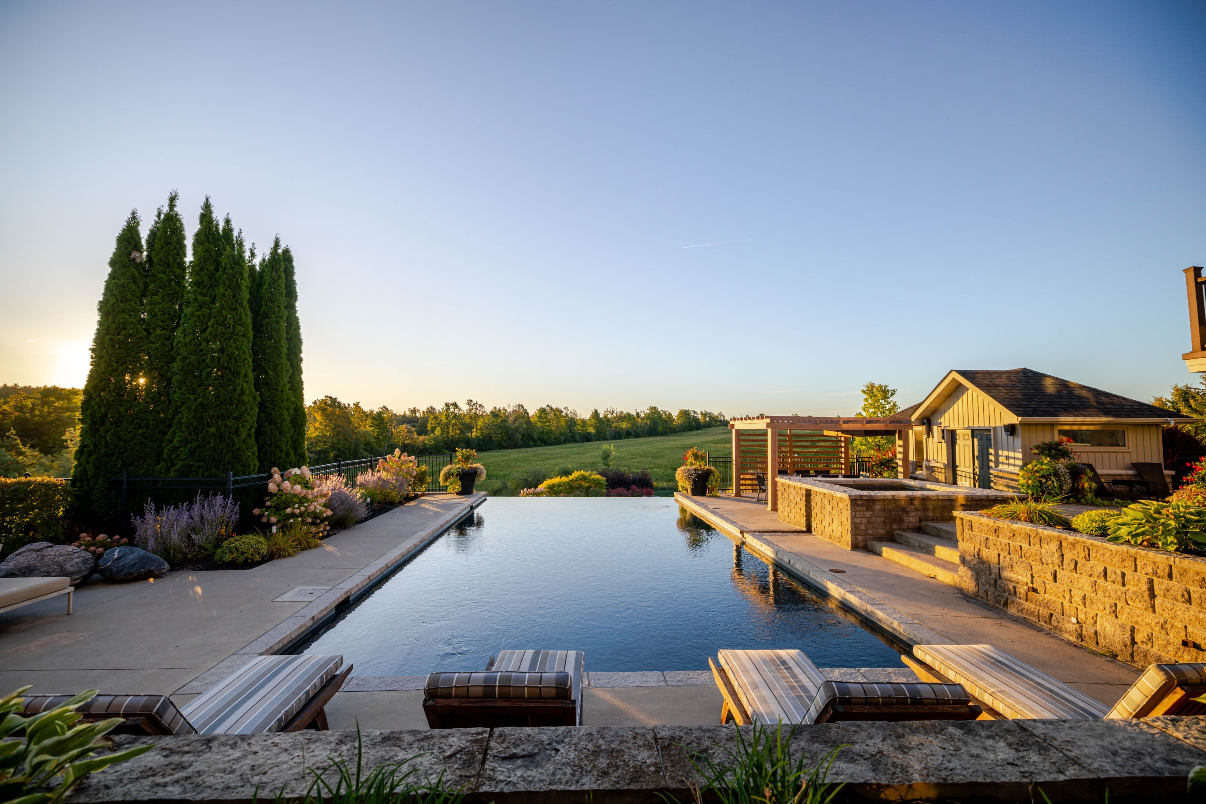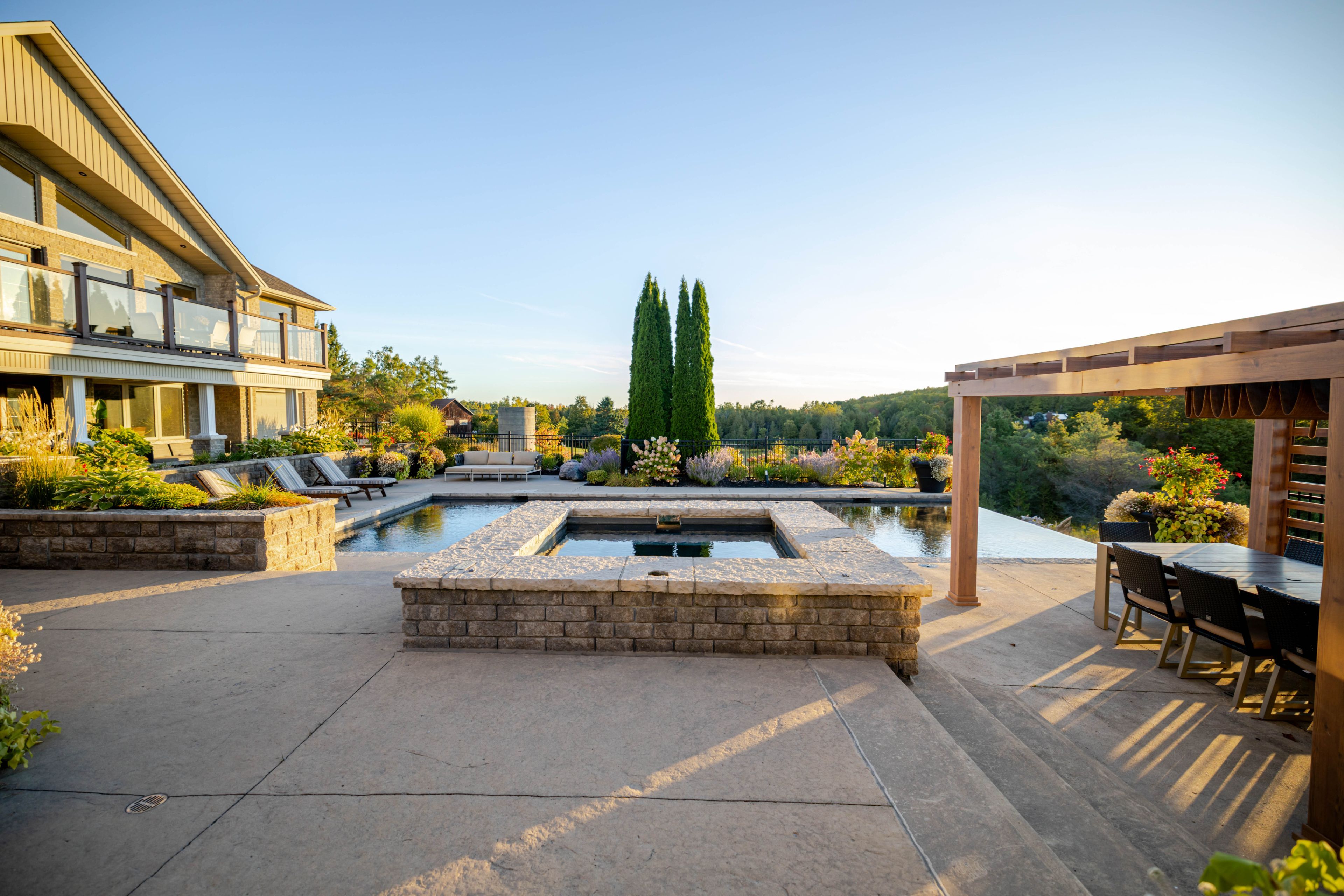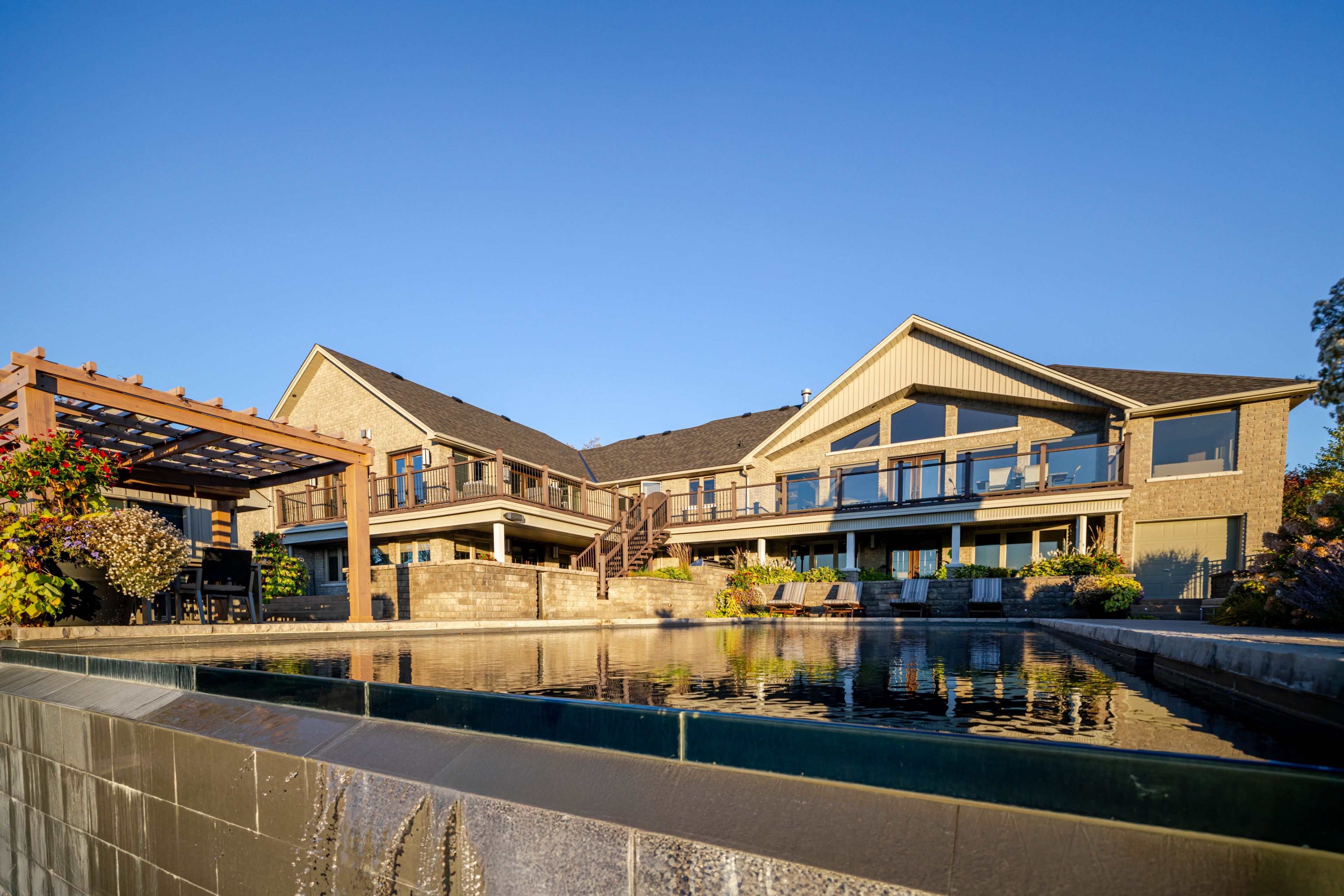• Outdoor infinity-edge pool, built-in BBQ, and Bluetooth-operated hot tub.