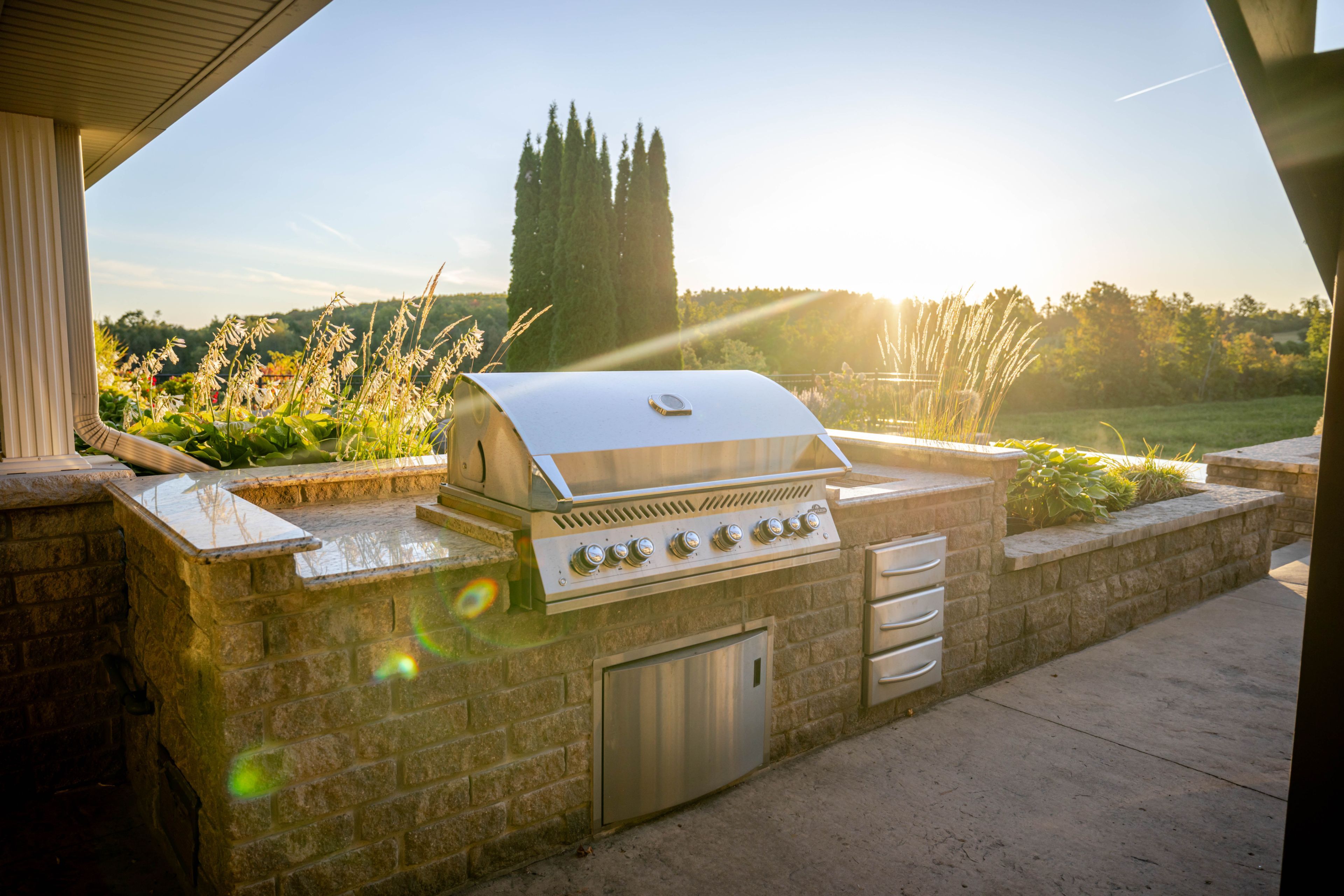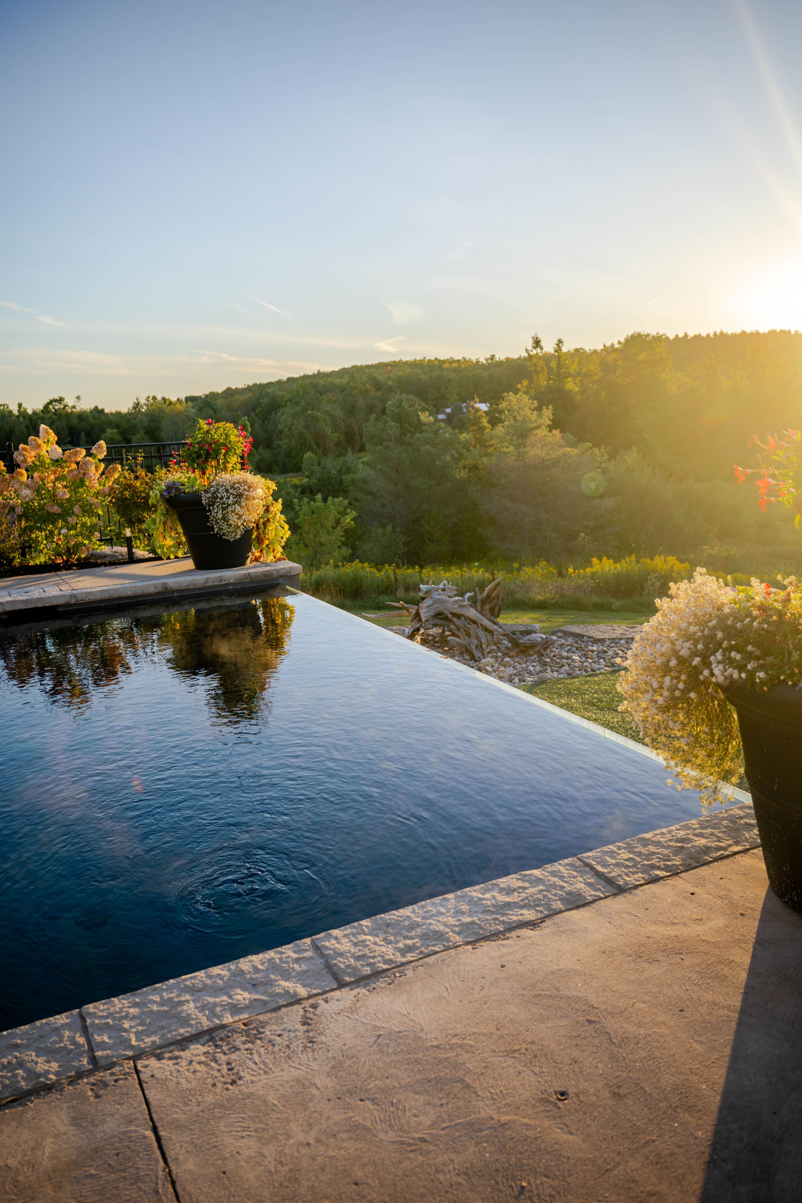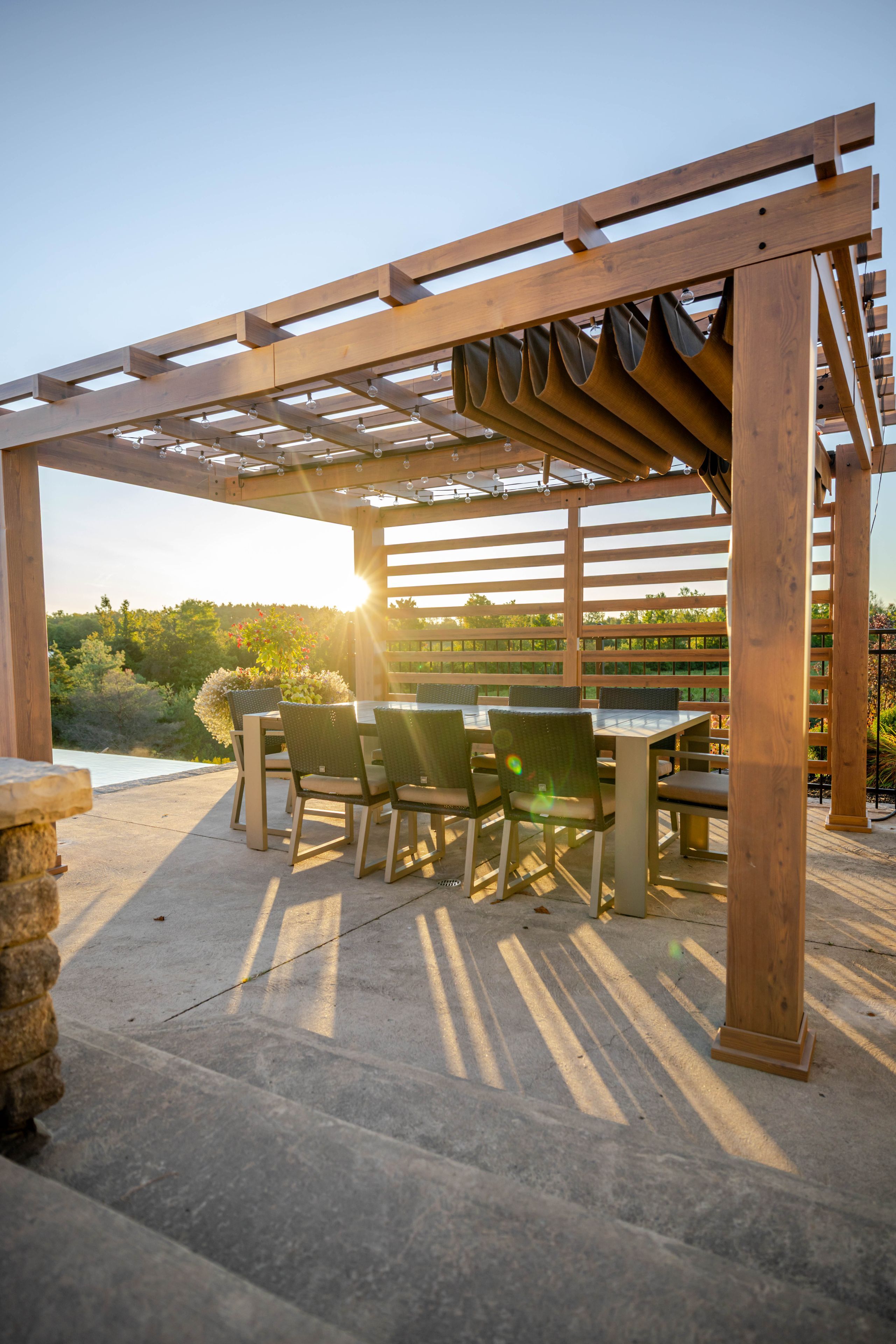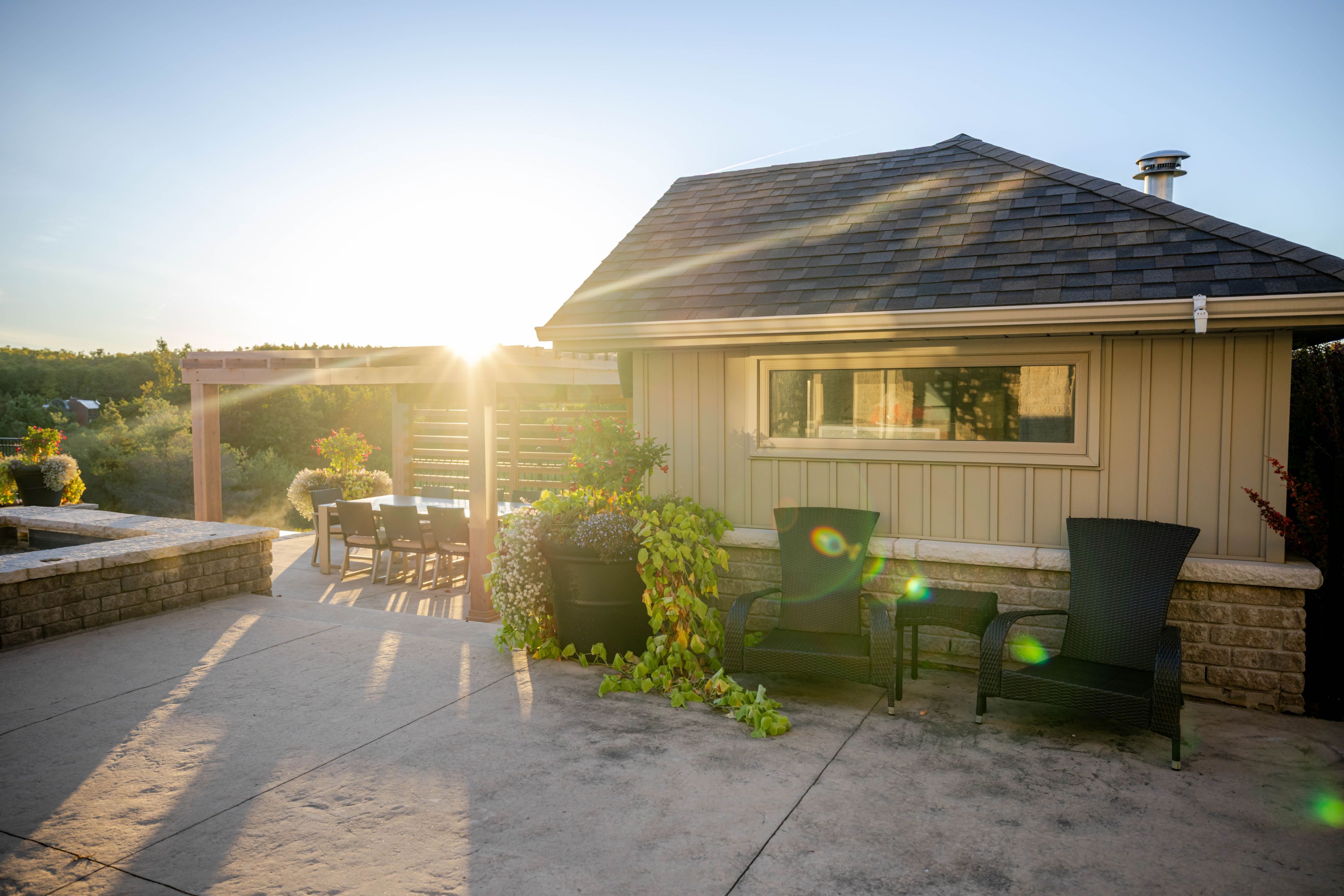 • Outdoor infinity-edge pool, built-in BBQ, and Bluetooth-operated hot tub.