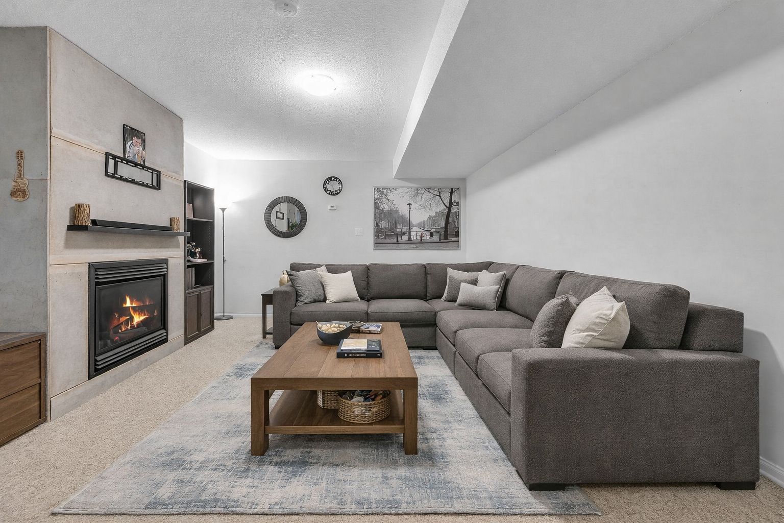 Bright & spacious 1 bedroom walkout suite * sun-filled layout with large windows * open concept eat-in kitchen perfect for everyday living * generous family room with cozy fireplace * private ensuite laundry * 2 parking spaces included * access to shared backyard * utilities extra 1/3 to be paid * prime location close to georgian mall, hwy 400, schools, hospital & all major amenities