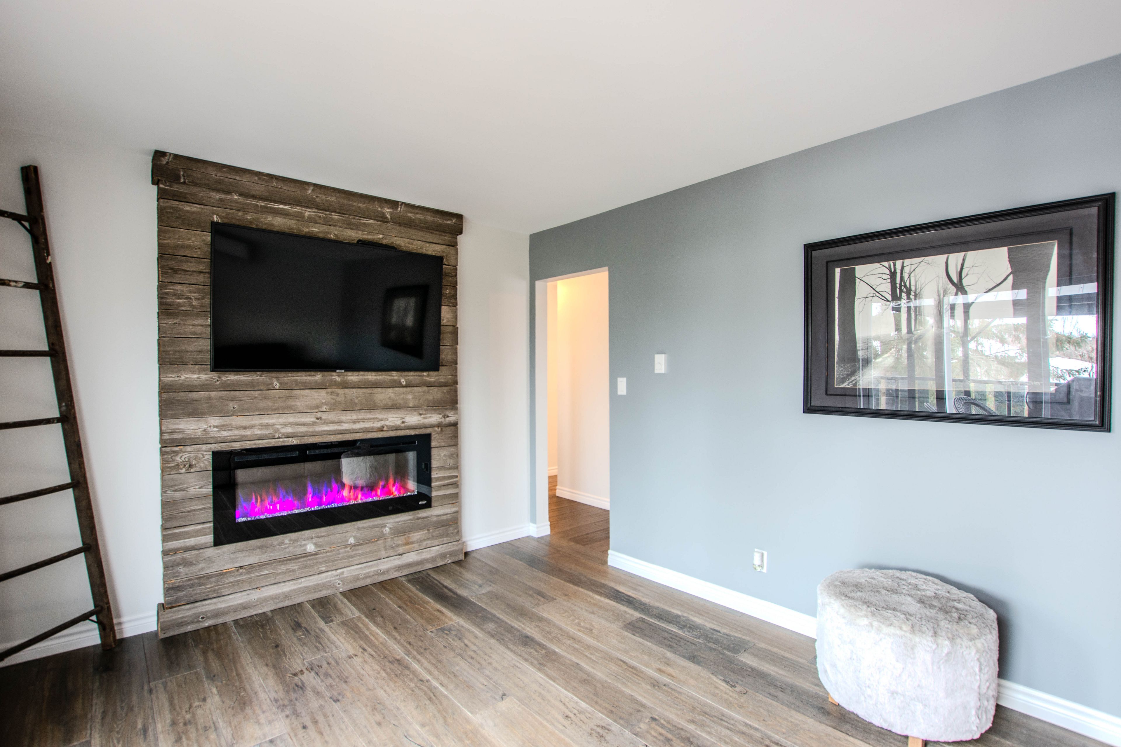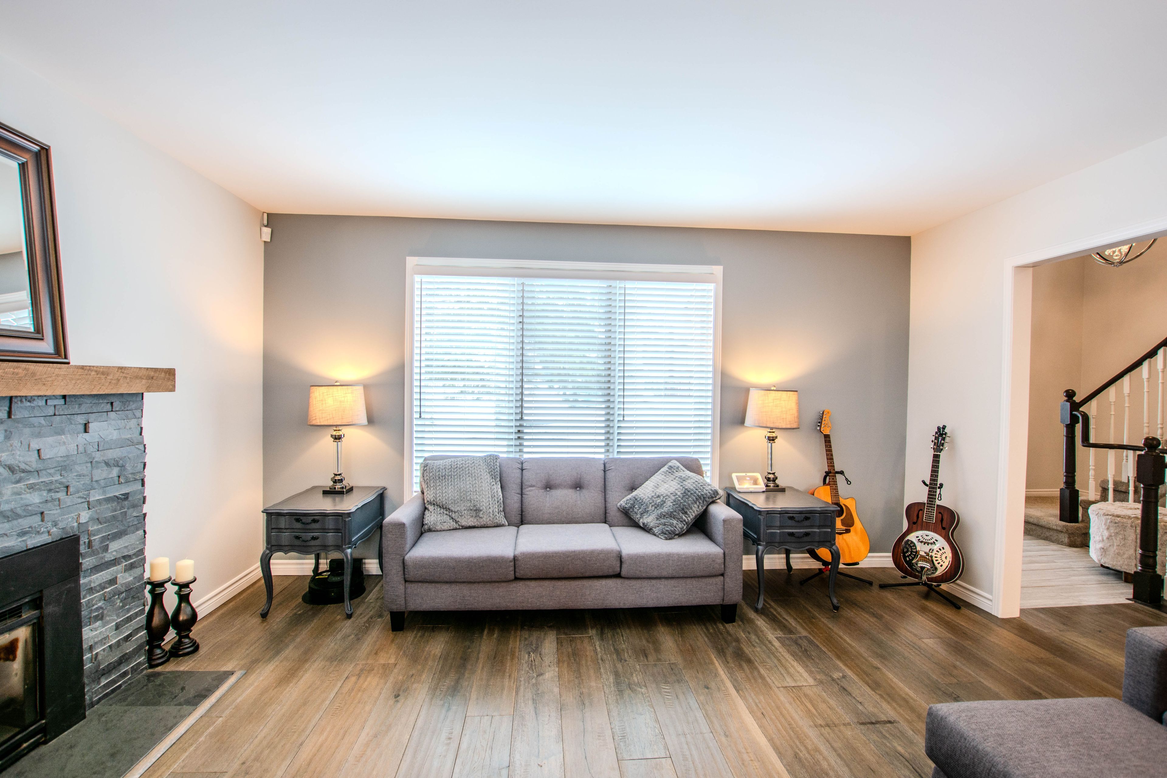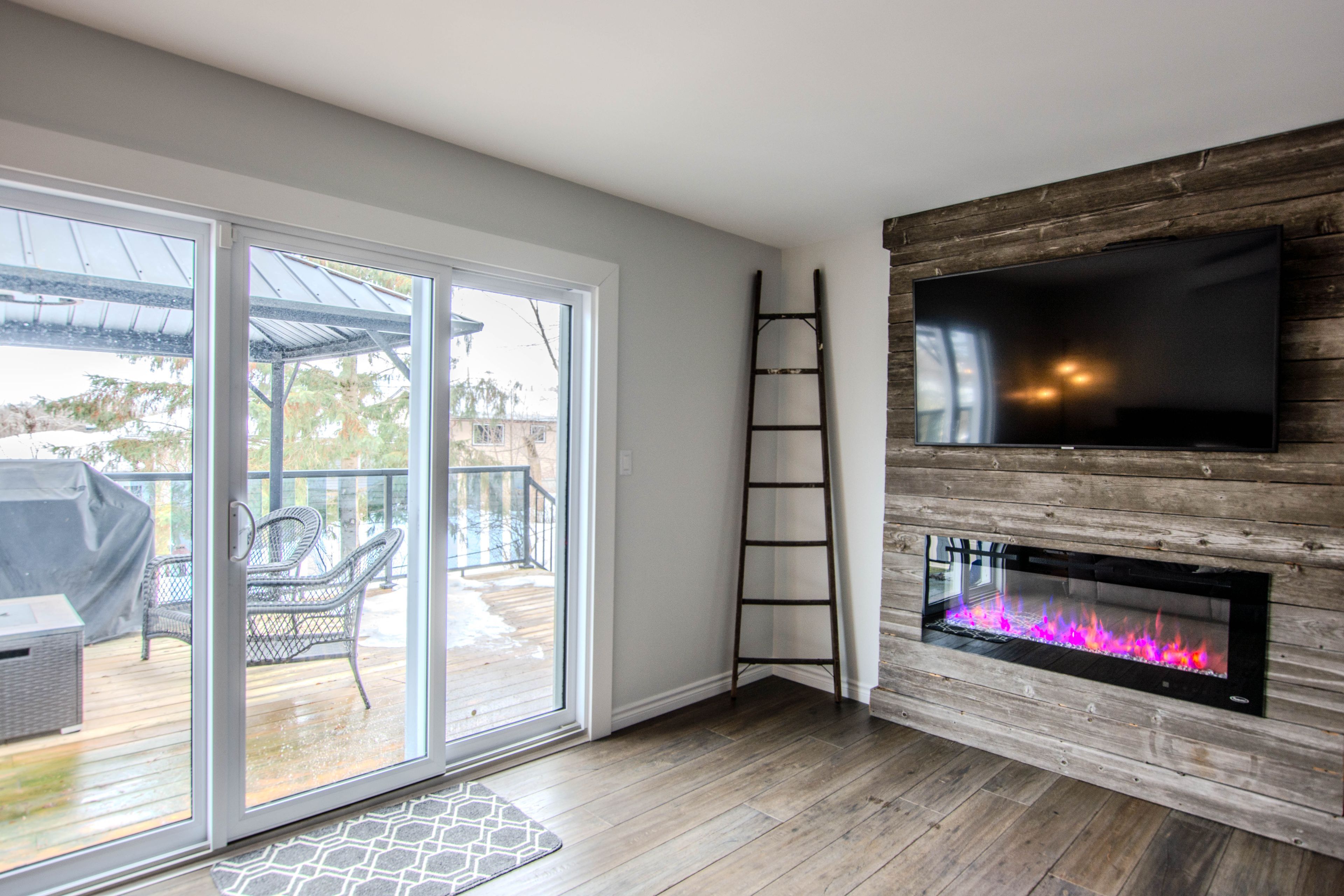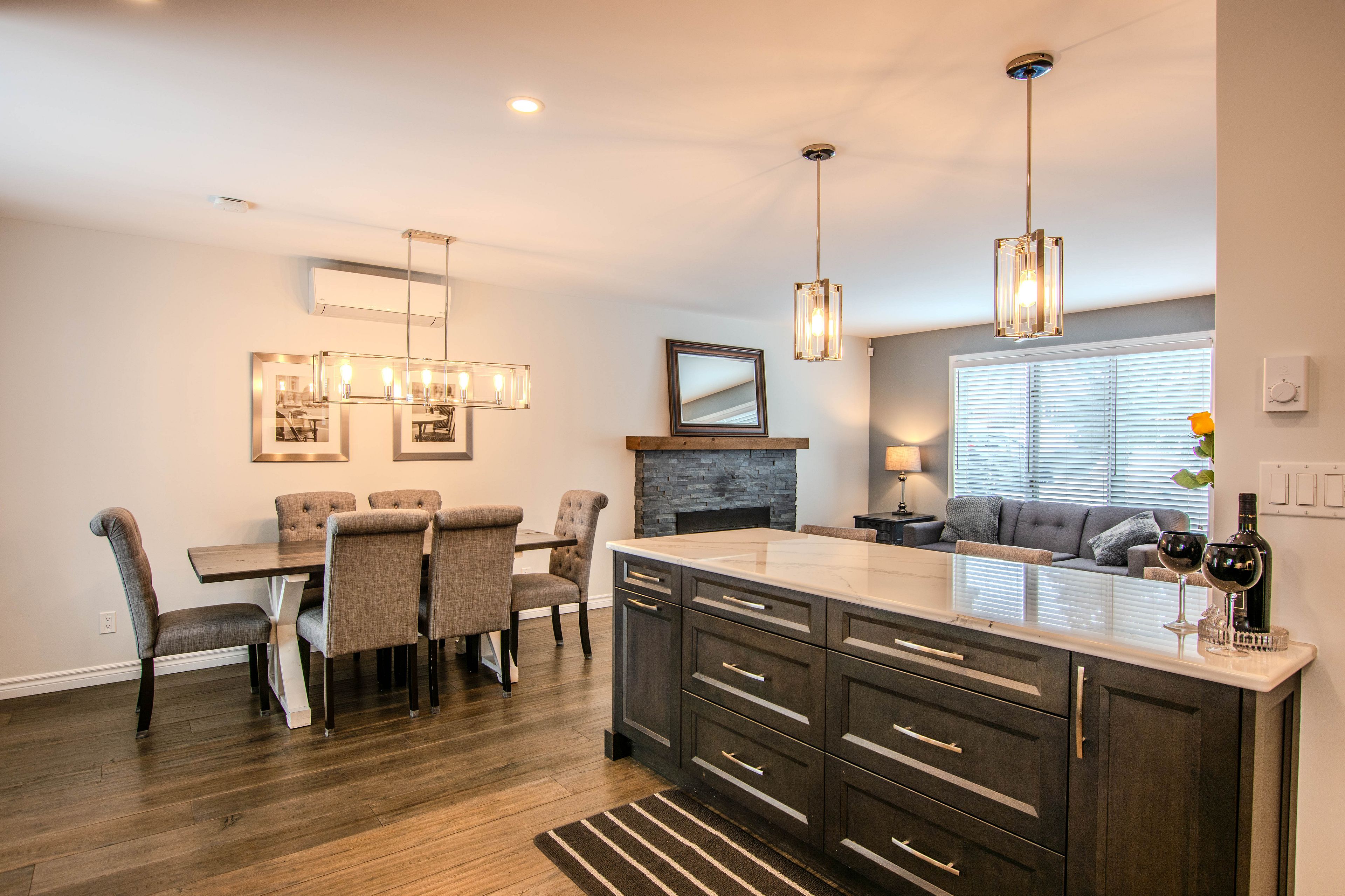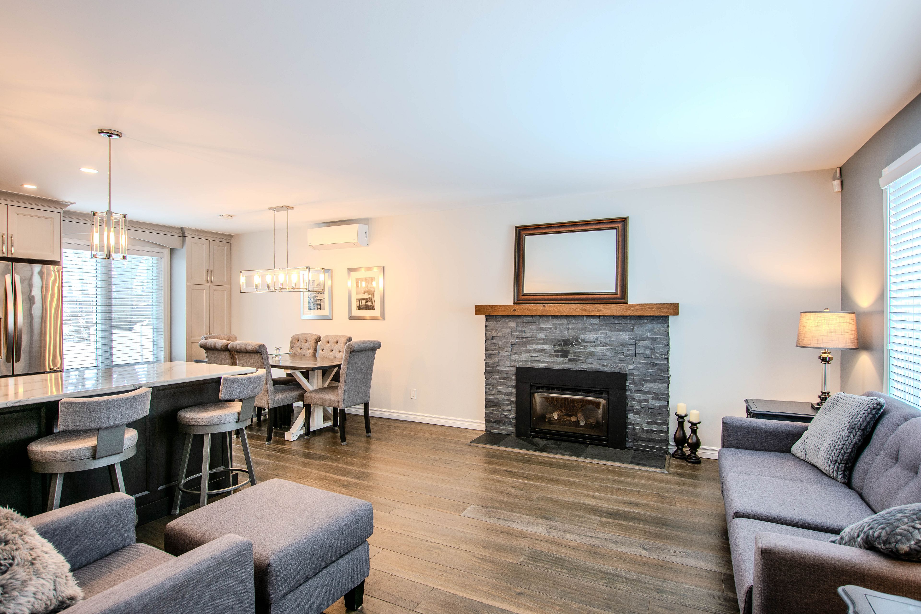 • Cozy living room with fireplace, ideal for entertaining guests.