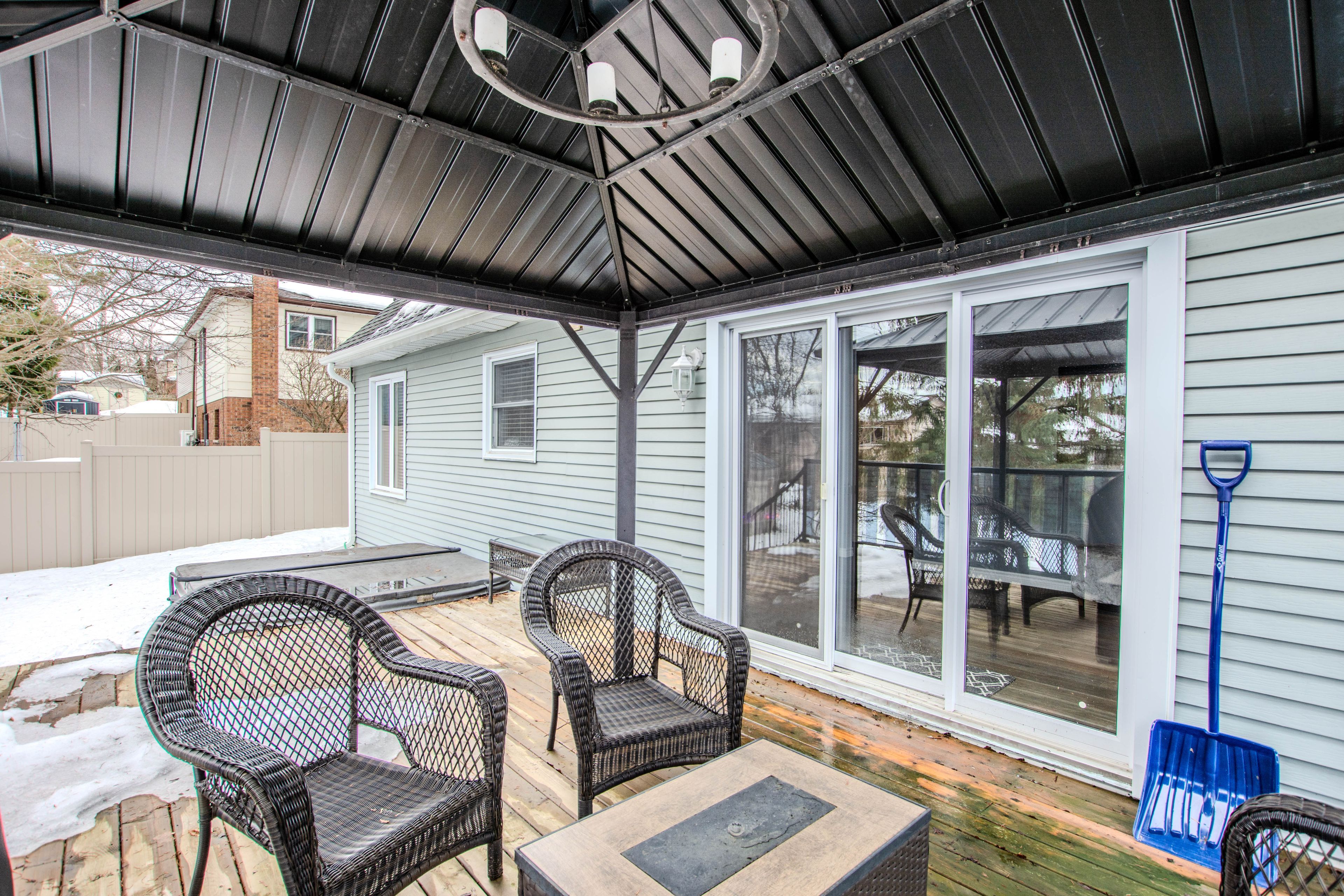 • Beautifully landscaped yard with a walkout deck and hot tub.