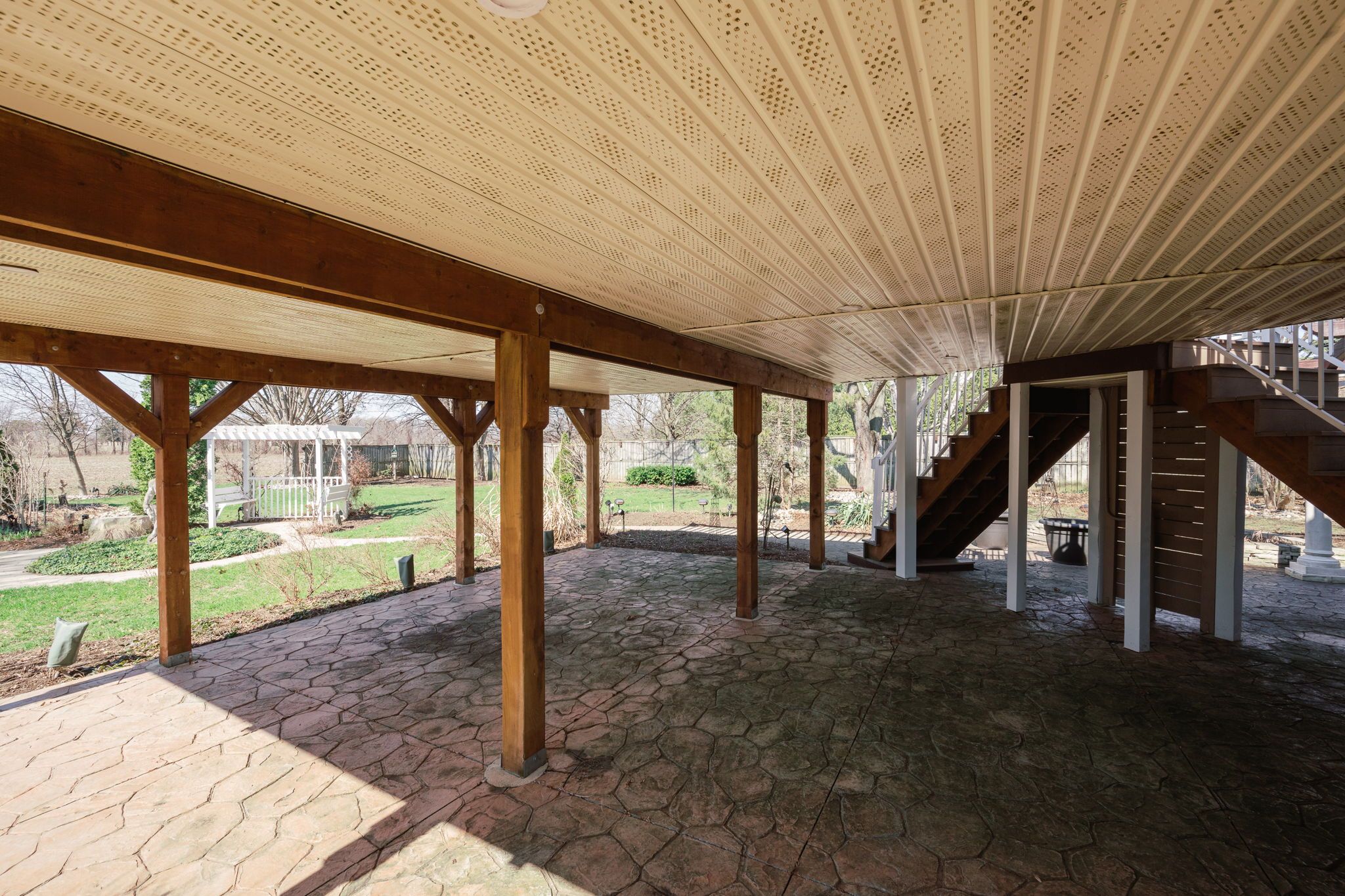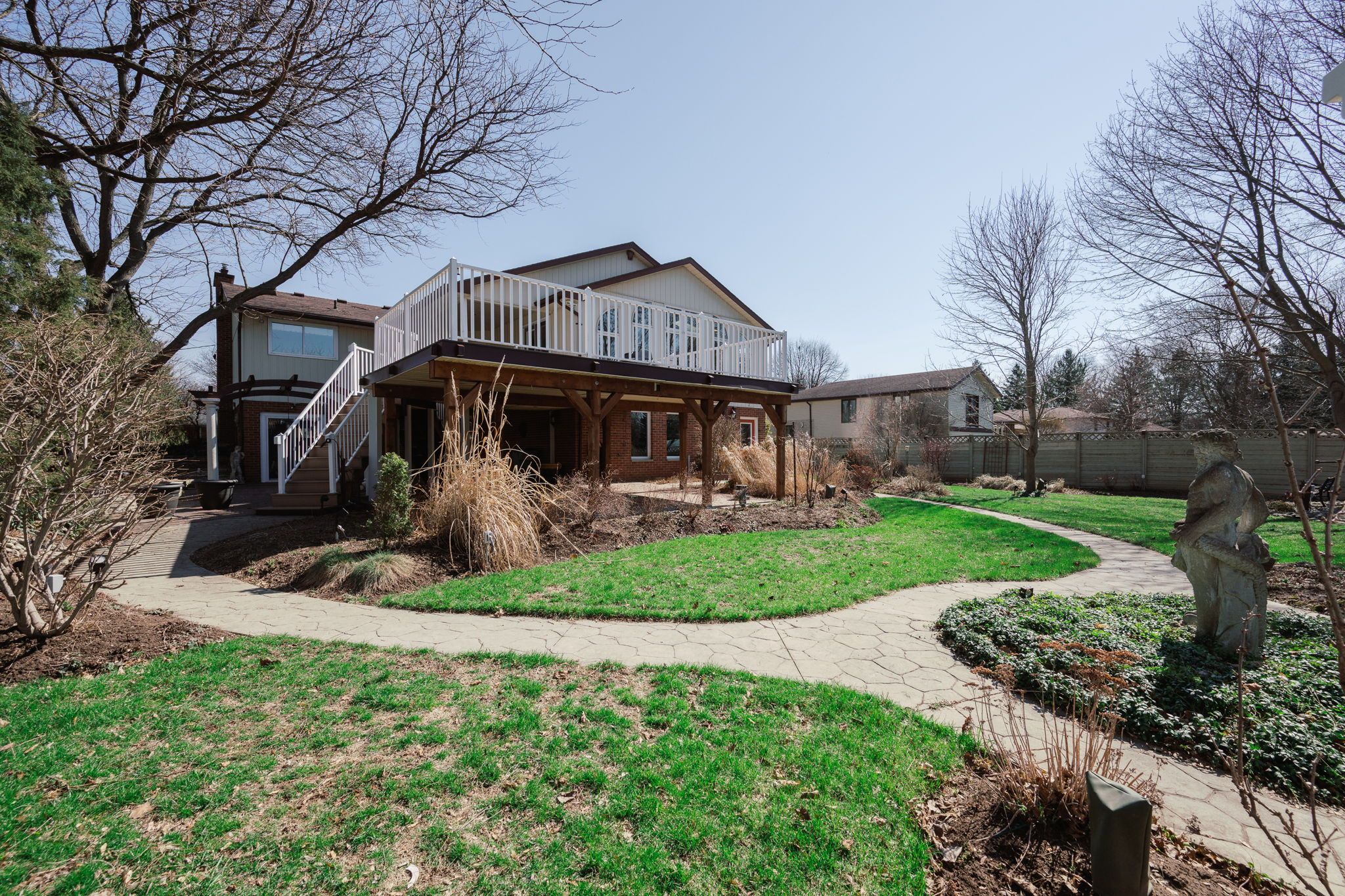 • Large deck overlooking a beautifully landscaped backyard, great for entertaining.