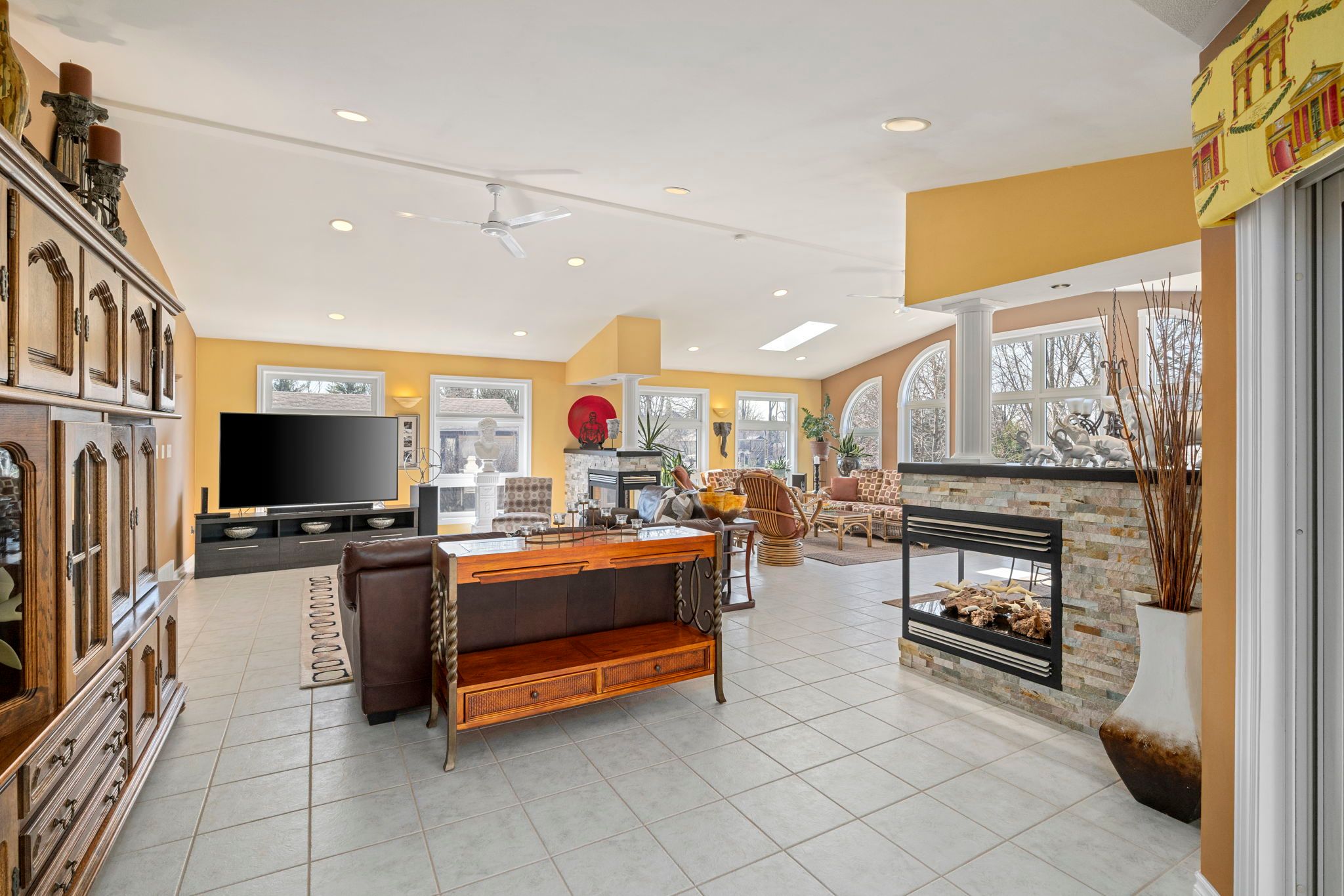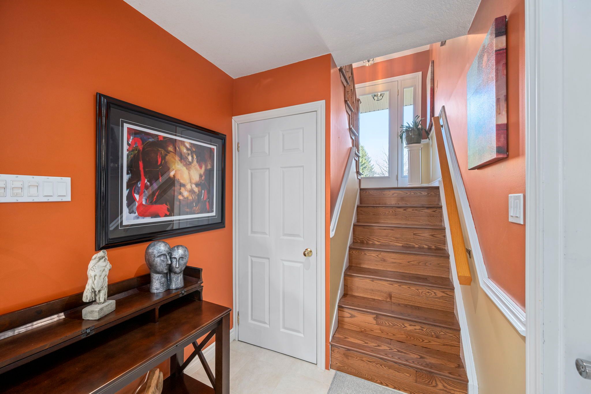 Beautiful, unique, and exceptionally spacious, this impressive home offers over 3,000 sq. Ft. Of well-designed living space plus an 800 sq. Ft. Heated workshop with storage loft and greenhouse area - a rare and valuable bonus. The welcoming front entry leads either upstairs to the heart of the home or downstairs to a versatile lower level with incredible potential. The upper level features an updated kitchen with a massive island, flowing into a warm dining area highlighted by a charming gas fireplace. The spacious, beautifully decorated living room opens onto a large deck overlooking the masterfully landscaped backyard - perfect for relaxing or entertaining. The primary suite with private ensuite is conveniently located off the living room, while two additional bedrooms and a full bath are tucked down the hall for added privacy. The lower level offers four separate access points - through the garage, backyard, patio, and private side entrance - making it ideal for multi-generational living or an in-law suite. Complete with a bar area, rec room, sitting room (easily converted to a bedroom), full bathroom, and laundry, the possibilities are endless. With a large deck, and thoughtfully designed outdoor space, this property truly has it all. A must-see to fully appreciate everything it offers.