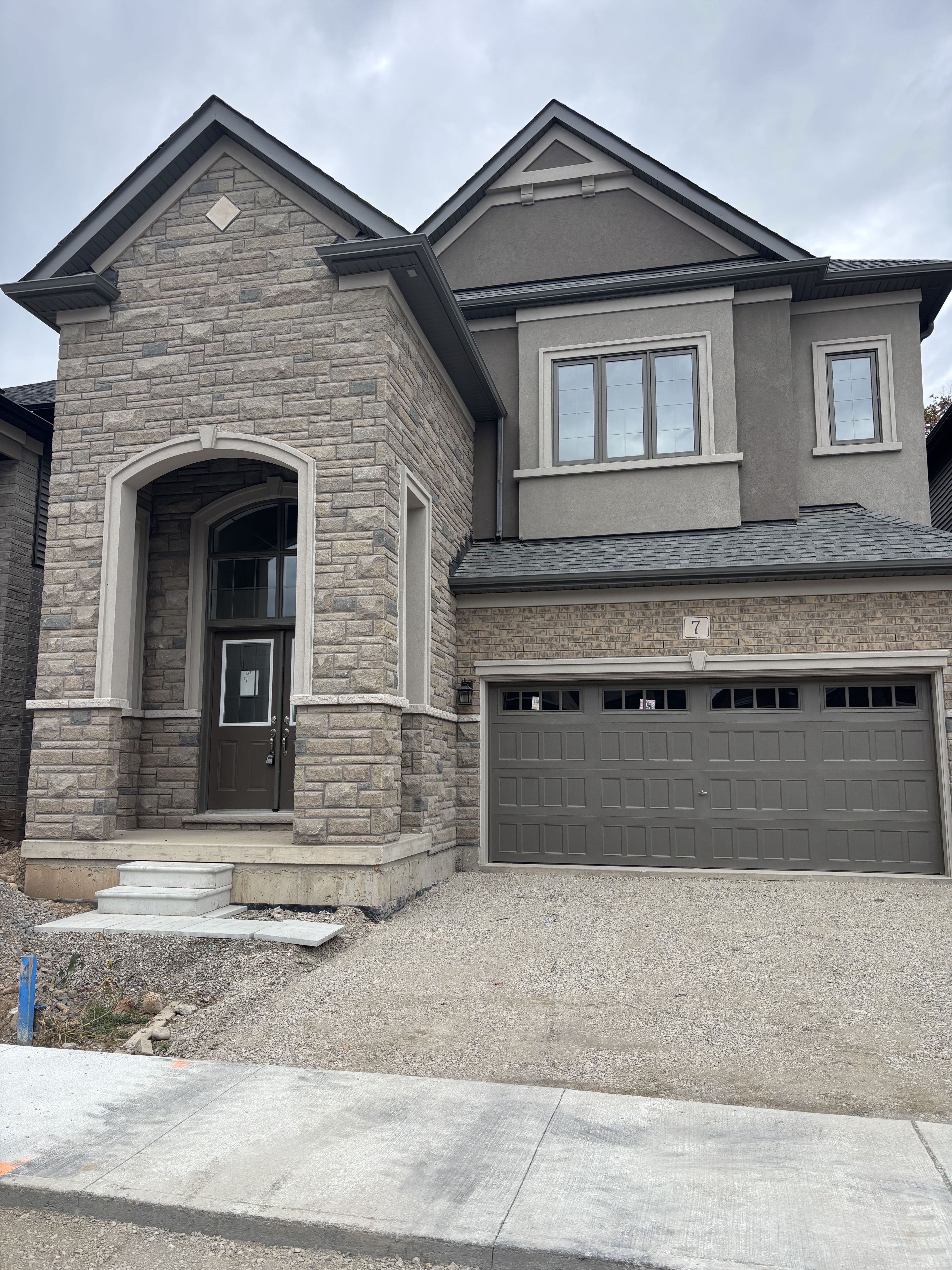 Be the first to call this stunning brand-new 3,000 sq. Ft. Home your own! Perfectly situated in one of brantford's newest and most desirable communities, this modern 5-bedroom, 4-bathroom residence offers a lifestyle of comfort, convenience, and connection with nature. Surrounded by scenic grand river trails and offering easy access to hwy 403, this location combines tranquility with everyday practicality. Sitting proudly on a premium ravine lot, the home is flooded with natural light from multiple exposures. The modern open-concept layout showcases 9' ceilings on both the main and second floors, creating a bright and airy feel throughout. A welcoming front porch opens into a spacious double height foyer, glass doors, and a coat closet, leading to a grand hallway with an open-to-above hardwood staircase. The great room, designed for both style and function, features large windows with transoms to maximize sunlight and flows seamlessly into a cozy corner living area overlooking mature trees. The sleek modern kitchen includes abundant storage, a breakfast bar for four, and a bright breakfast area with walkout to the backyard. Convenience continues with a main-floor laundry room and inside access to a double garage upstairs, a sunlit hallway with a vaulted window leads to spacious bedrooms. The primary suite impresses with a luxurious ensuite featuring a freestanding tub, separate shower, and an oversized walk-in closet.