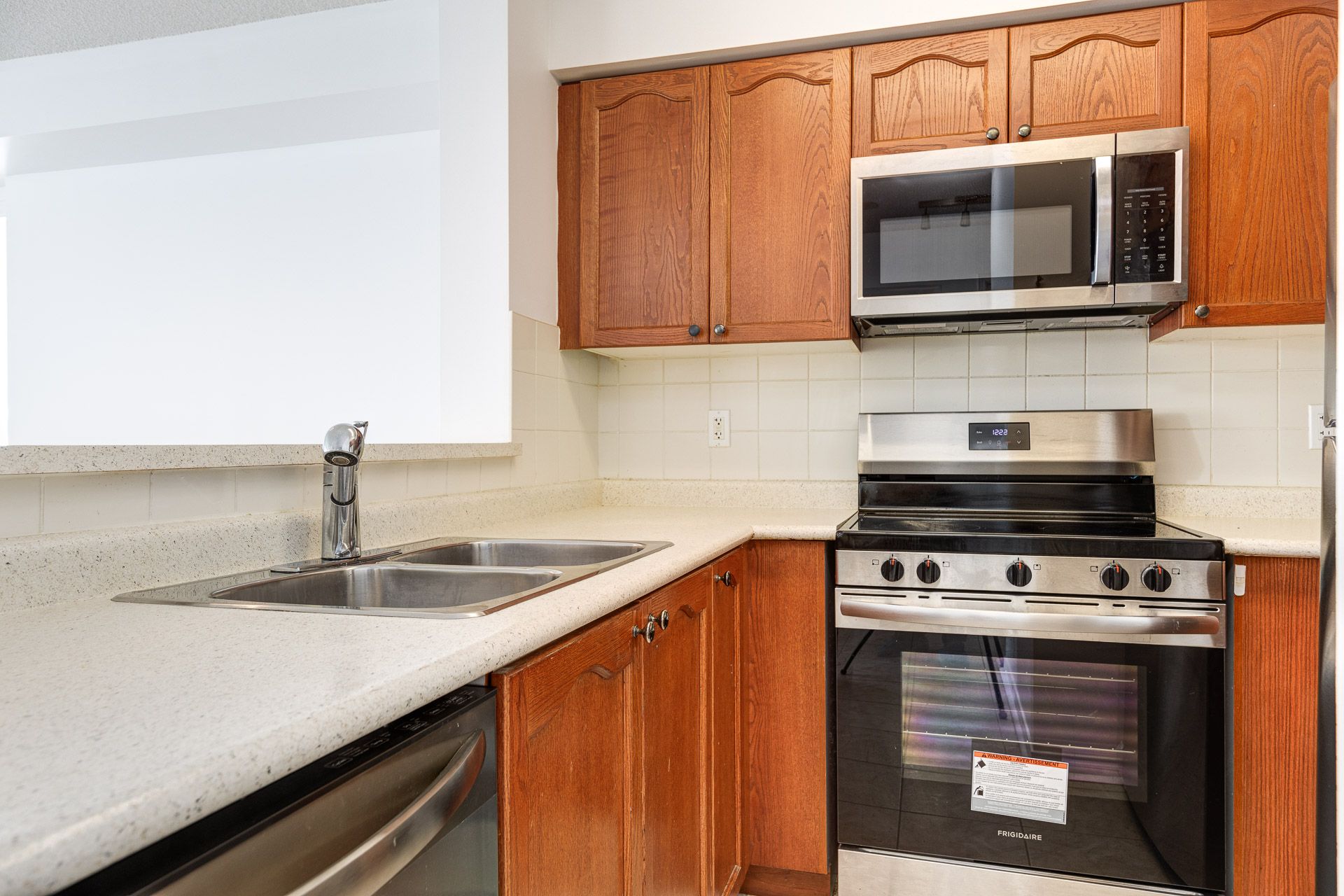 Welcome to this bright and spacious 2-bedroom, 2-bathroom corner suite in the highly desirable port royal place community. This well-maintained unit features a functional open concept layout with a spacious kitchen overlooking the living and dining area, and a walkout to a private balcony, perfect for enjoying your morning coffee or evening relaxation. The unit has been recently updated with brand new 2024 stainless steel appliances including fridge, stove, built-in microwave, and dishwasher, along with updated bathroom cabinets. Additional updates completed in 2025 include new living room flooring, modern light fixtures, and a freshly painted interior, making the unit move-in ready. The primary bedroom toilet will be replaced prior to closing, and the carpets have been professionally cleaned. The spacious primary bedroom features a private ensuite bathroom and ample closet space. This unit also offers the convenience of maintenance fees that include all utilities - heat, hydro, and water. Conveniently located close to transit, schools, parks, shopping, and major highways. A great opportunity for first-time buyers, downsizers, or investors.