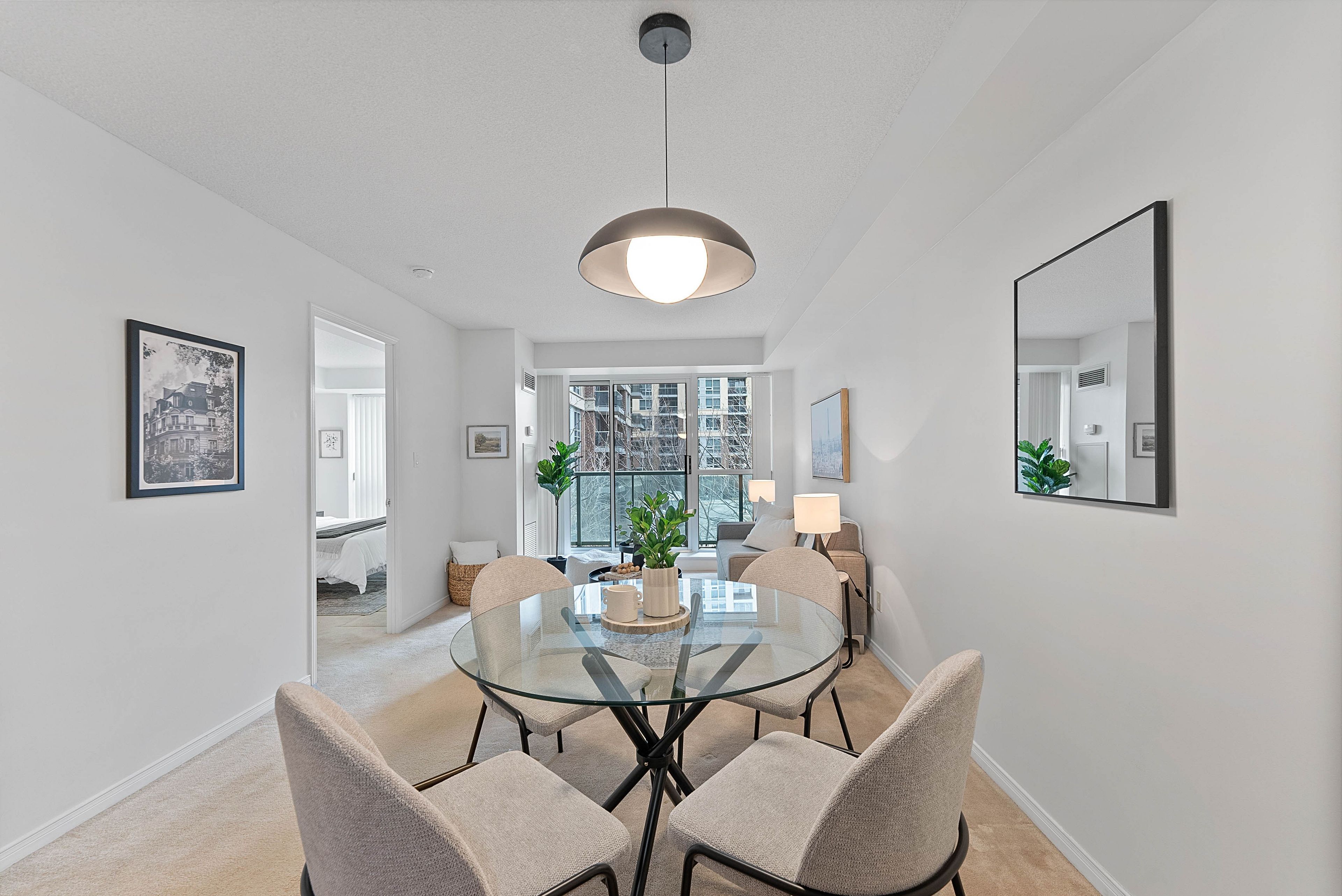 Bright and spacious 1 bedroom + den, 2 bathroom condo offering 780 sq ft of well-designed living space at port royal place, located at 7 michael power place in the heart of islington village in central etobicoke. This freshly painted suite features floor-to-ceiling windows and a sunny south exposure, an open concept living and dining area with a walkout to a large balcony, a generous kitchen with an island and excellent storage, a large primary bedroom with a double closet, 4-piece ensuite and floor-to-ceiling windows, a versatile den ideal for a home office or second bedroom, ensuite laundry and an additional full bathroom. 1 parking space and 1 locker included. Maintenance fee includes heat, hydro and water. Residents enjoy excellent building amenities including a gym, concierge, newly renovated party/meeting room, games room, golf simulator, visitor parking and more. Located directly across from the future etobicoke civic centre, which will feature a pool, recreation centre, library, art gallery and more! Excellent location near michael power park with playground and splash pad, montgomery's inn and farmers' market, tom riley park, shops and restaurants along dundas street west and six points plaza, and walking distance to islington subway station and kipling go station. Easy access to the gardiner expressway and highway 427 for a convenient commute to downtown toronto or pearson airport. Walk score of 91 and transit score of 90! A great opportunity to own in a well-managed building in one of etobicoke's most convenient and connected neighbourhoods.