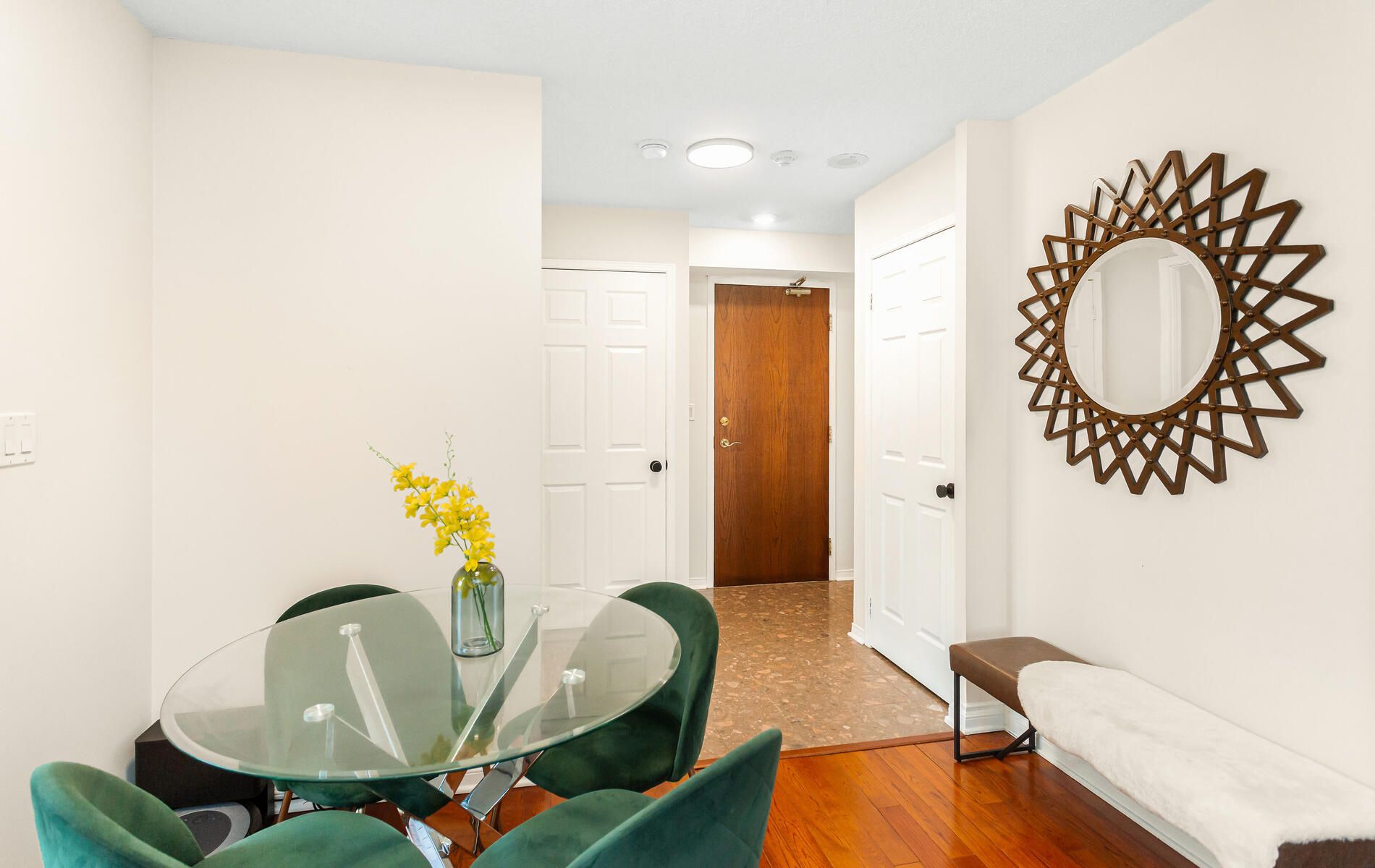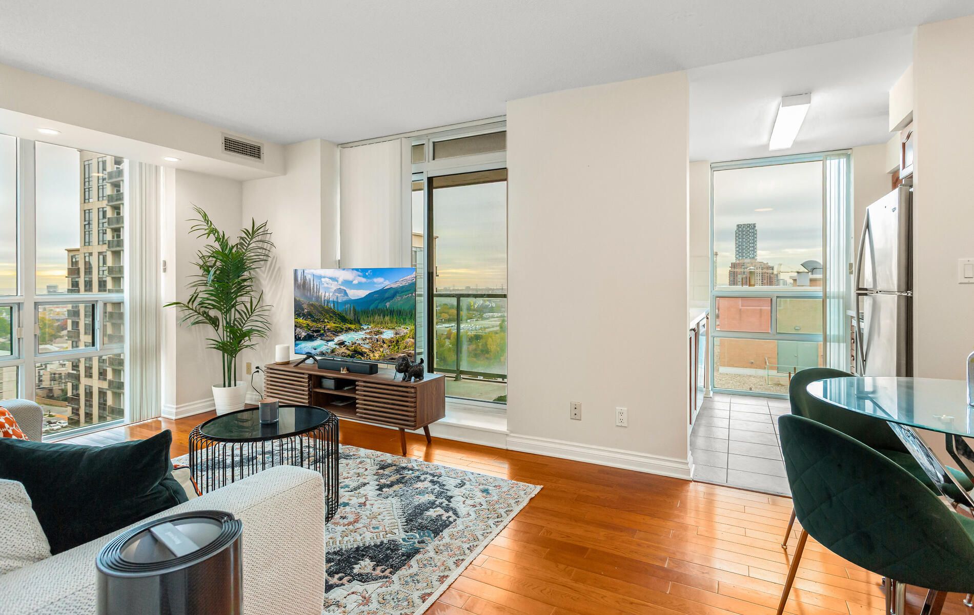 Welcome to this sophisticated lower penthouse 2-bedroom suite, located in the highly desirable islington village in central etobicoke. This spacious corner unit features a thoughtfully designed split-bedroom layout with two full bathrooms, offering both comfort and privacy. Expansive floor-to-ceiling windows flood the space with natural light, creating a bright and inviting atmosphere throughout. The contemporary galley kitchen is equipped with stainless steel appliances, while gleaming hardwood floors add a refined touch of elegance. Quiet and functional, this residence is ideal for those seeking a harmonious balance of tranquility and convenience with 24/7 concierge, pool table & golf simulator. Situated just minutes from the prestigious islington golf club and a short walk to islington subway station, nearby parks, top-rated schools, and a diverse selection of restaurants, this home offers the perfect combination of urban living and upscale community charm.