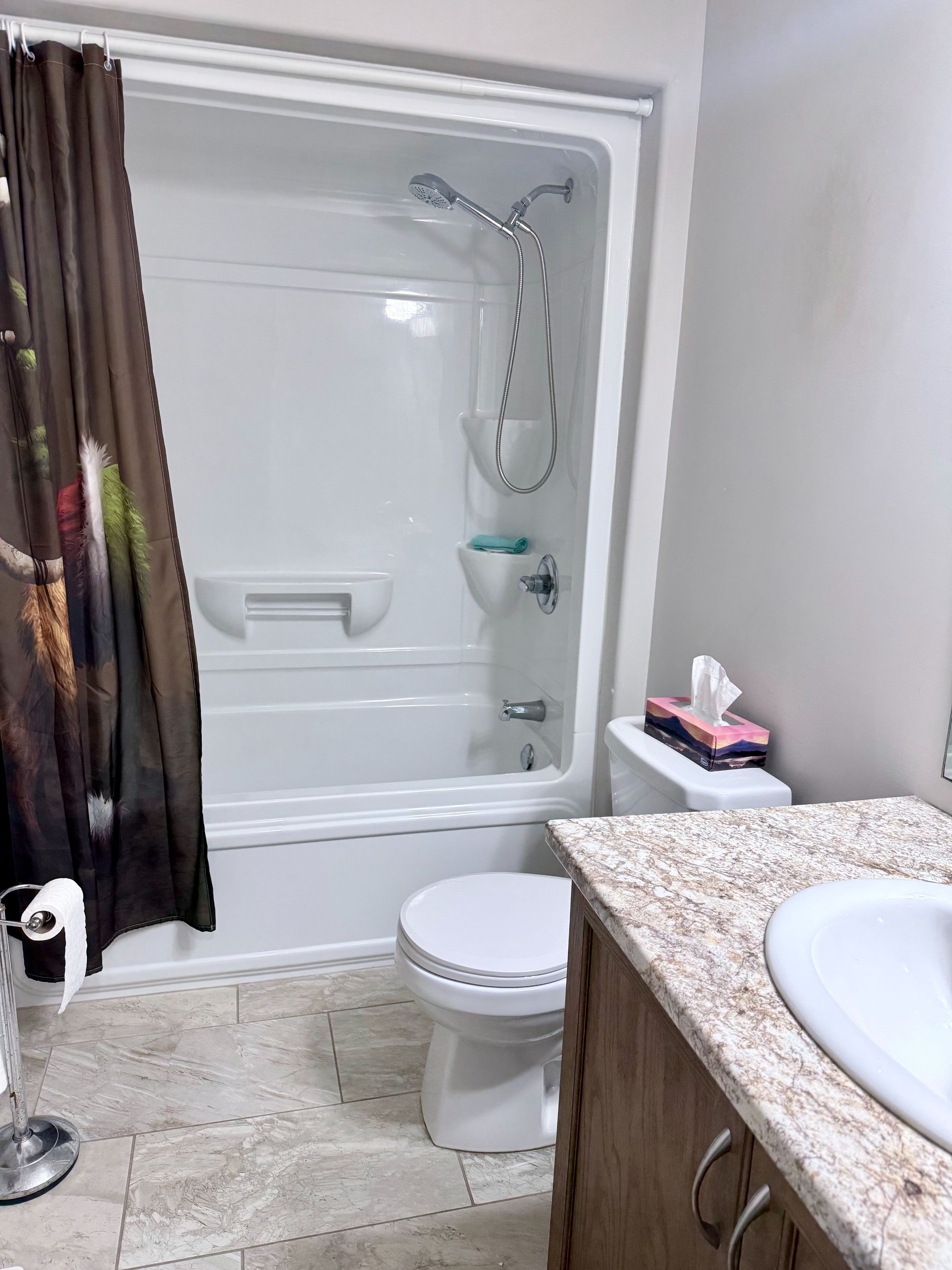 • Modern stone-finished home built in 2017 with timeless style.