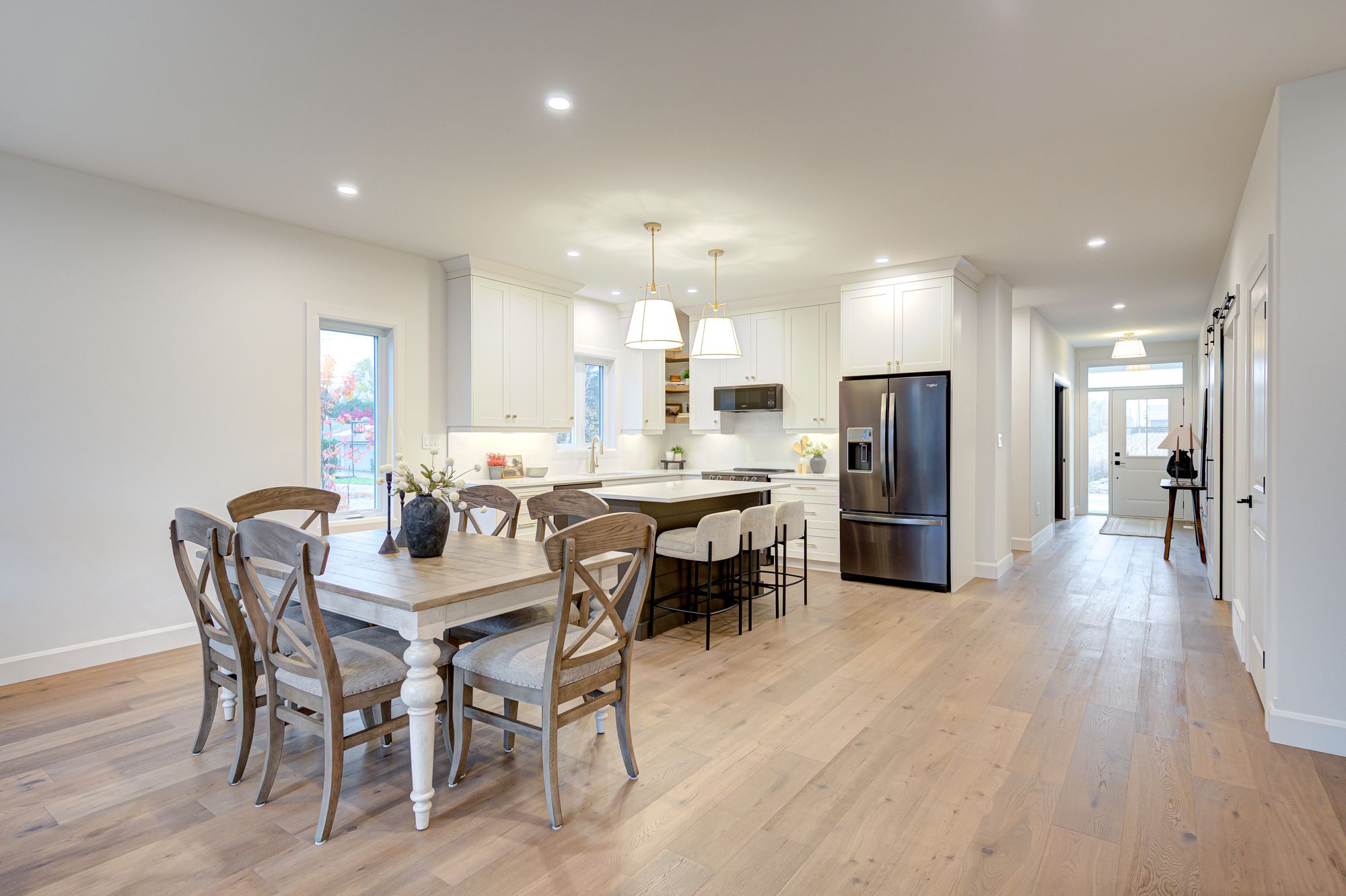 • Spacious four-bedroom, three-bathroom custom home with modern features.