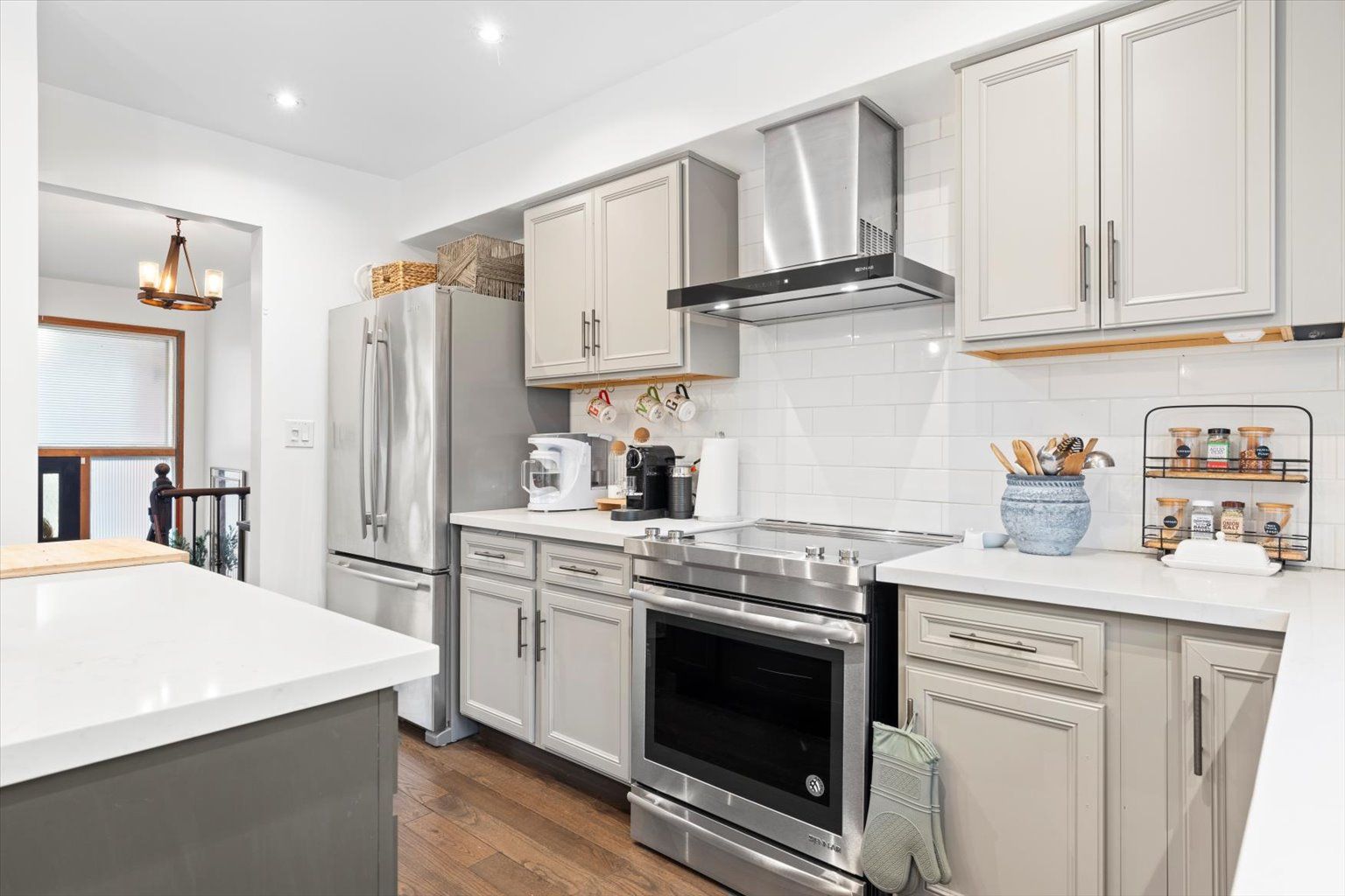 • Recently renovated kitchen featuring quartz countertops and stainless steel appliances.