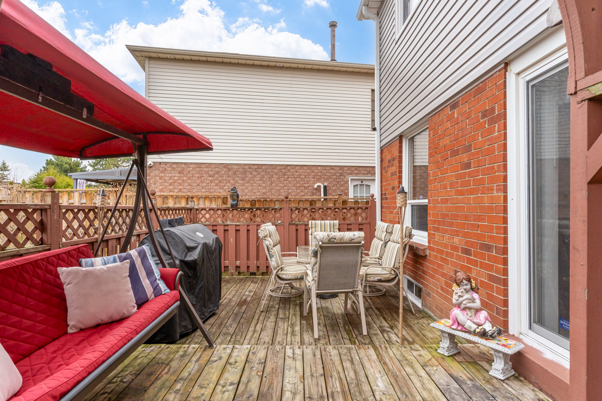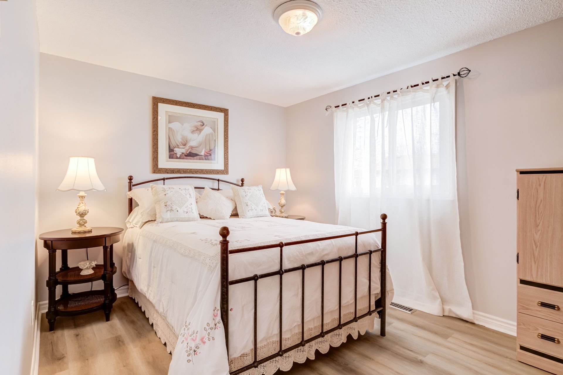 Welcome to much sought after park haven enclave neighbourhood right in central heart lake subdivision. Ideally situated within walking distance to multiple school choices, shopping, restaurants, cafes, public transit, major highways and most of all heart lake conservation area for nature walks, swimming, picnicking, family sports, canoeing and more. Gorgeous detached home all upgraded inside and out. Featuring an enclosed vestibule, wide foyer, open concept living and dining rooms with upgraded plank size flooring/huge sun filled bay window. Large eat-in kichen with neutral ceramic tile flooring, backsplash, glass display cabinets, display shelving, sliding door walk-out to a large deck, double sinks, retractable faucet/window view to yard, built-in dishwasher, pot drawers and pantry. Three spacious bedrooms, primary features his/her clothes closets and a semi-ensuite, large 4 pc bathroom. All bedrooms are finished in upgraded laminate flooring, stairwell and upper landing are finished in hardwood flooring. Professionally finished lower level is a complete in-law suite with a second eat-in kitchen with ample white cabinetry, ceramic backsplash, laminate flooring and a window feature. Open concept recreation room, a fourth bedroom and a 3 pc bath with separate shower stall (lower level just needs a separate entrance to be a separate in-law suite). Beautiful yard with a large wood deck, large tool shed, fenced-in yard and many flowerbeds with perennials and a whimsical wishing well with water pump. Upgraded roof shingles, vinyl windows, central a/c, upgraded furnace, double driveway accommodating four vehicles, single garage with storage loft. Home in move-in ready condition. Shows 10+++!