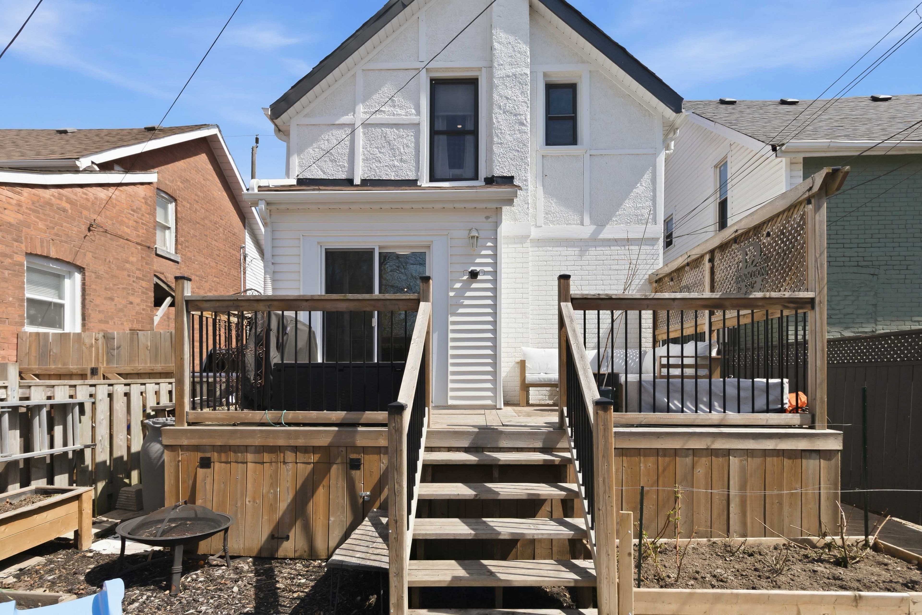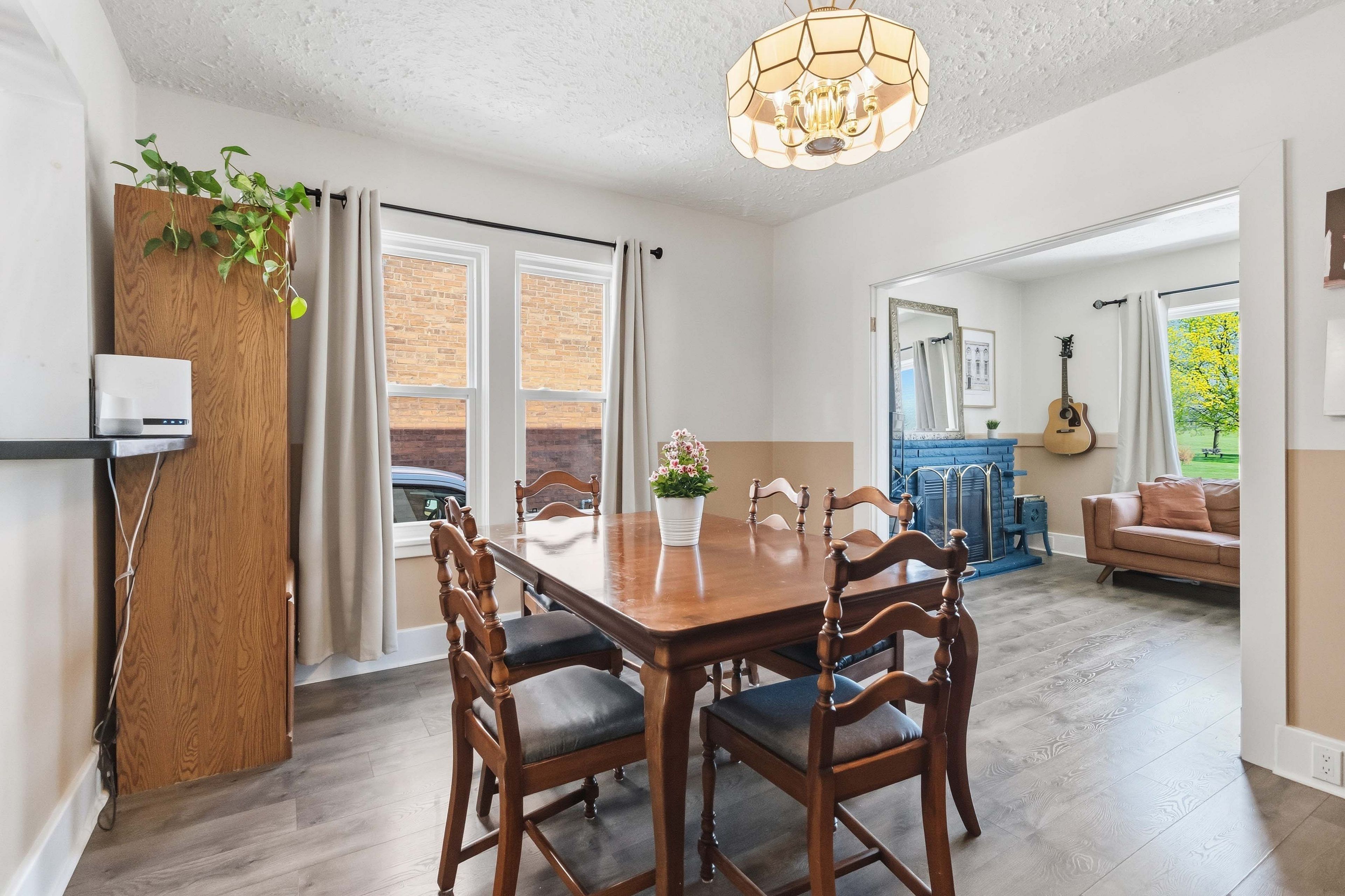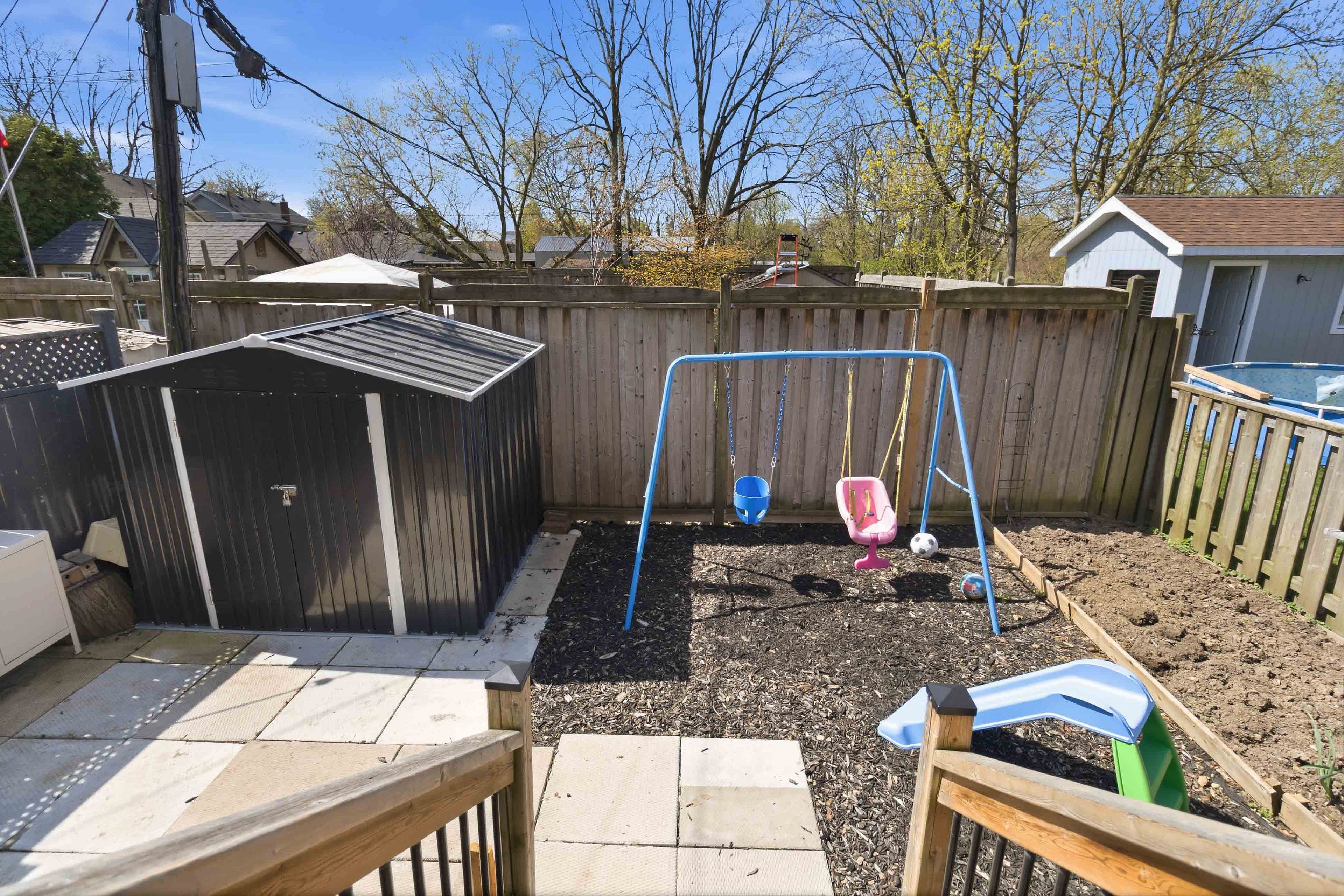 Welcome to 7 ontario street, a beautifully updated 2-storey detached home tucked into a desirable brantford neighbourhood just steps to the grand river and endless outdoor recreation. This charming home offers the perfect blend of character, functionality and opportunity. The main floor features a warm and inviting living room with a cozy gas fireplace opening into a spacious dining room, and a refreshed kitchen with updated cabinetry, countertops, charming shiplap accents and sliding doors leading to a newer deck and fully fenced, landscaped backyard complete with a shed. Restored solid wood stairs bring you upstairs, where you'll find three comfortable bedrooms including a spacious primary retreat, along with a beautifully refinished full bathroom featuring updated vanity, tile and fixtures. The fully finished lower level adds incredible versatility with two additional bonus rooms, updated flooring, a 3-piece bathroom and laundry area, ideal for larger families, guests, home office space or storage. With refinished flooring throughout, thoughtful updates inside and out, updated electrical wiring and a location close to trails, parks, shopping, restaurants and both conestoga and wilfrid laurier campuses, this move-in ready home offers exceptional lifestyle and investment potential in one attractive package.