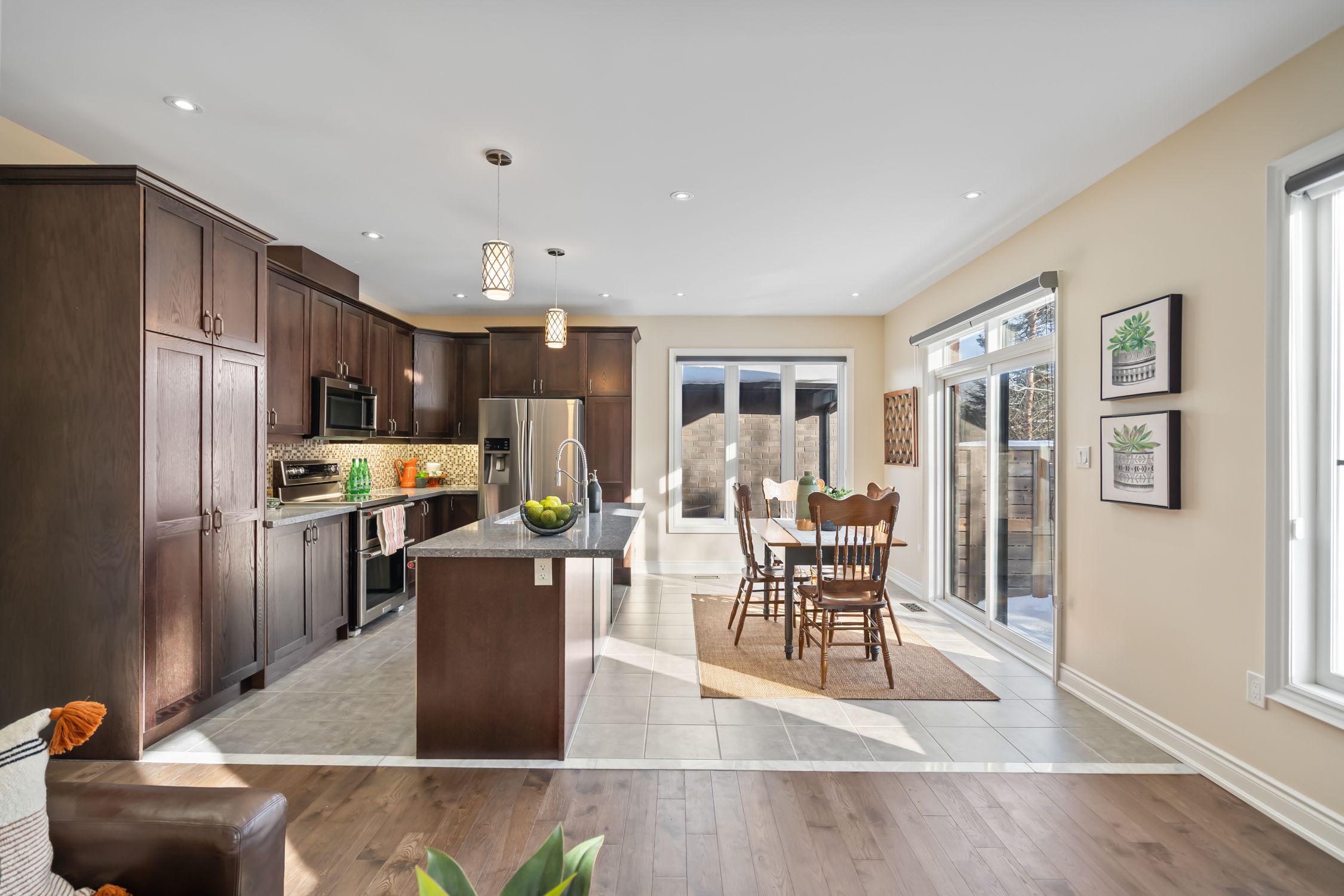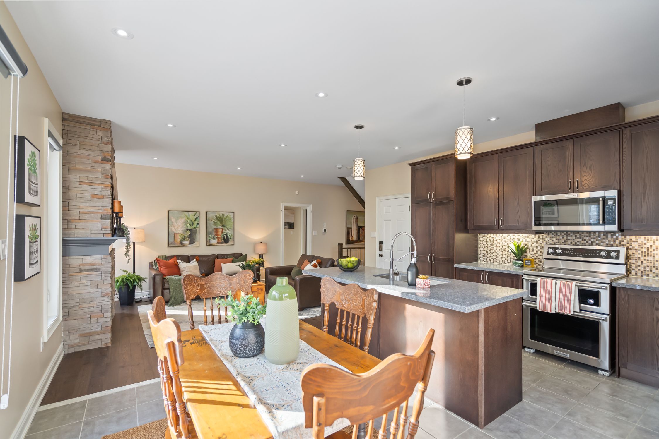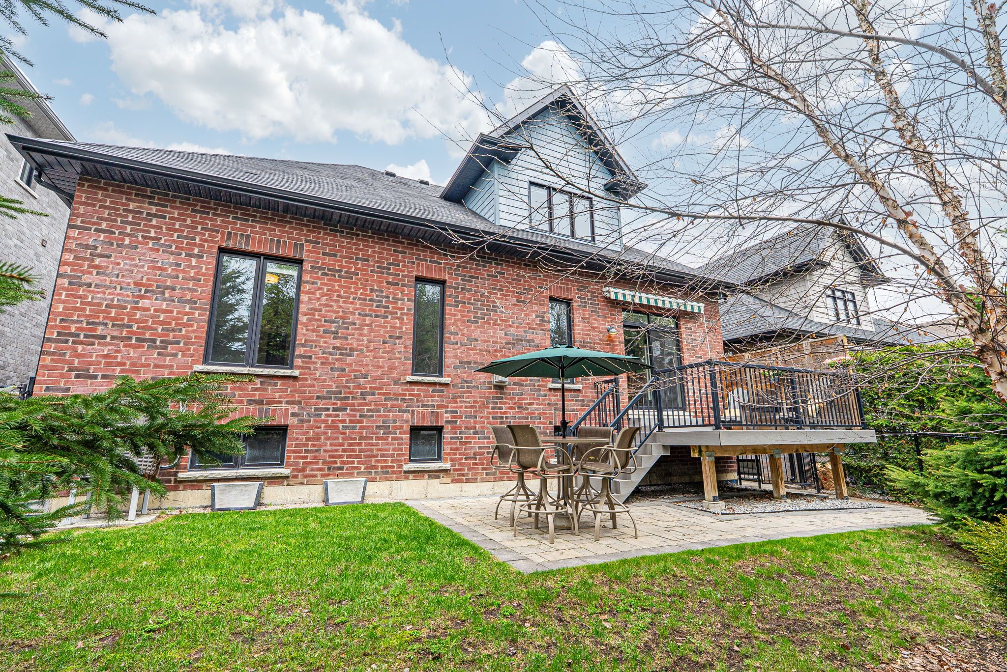 Curb appeal is the first thing you notice with this beautiful 4 bedroom bungaloft on prestigious os james hunt court. With rich red brick and a neutral stone facade, interlock walkway and natural stone steps you are welcomed with immediate warmth. Entering the home you'll appreciate the open concept layout across the back of the house including the living room with gas fireplace featuring cultured stone veneer and framed within 2 large windows, the spacious kitchen with stainless steel appliances and quartz countertops and the dining area which walks out to the deck through the patio slider. The principal suite includes a 5 pc ensuite with built in soaker tub and glass shower enclosure and a spacious walk-in closet with wardrobe. The 2nd bedroom overlooks the front with a gorgeous arched window and has semi-ensuite access to the 4pc main bathroom. Laundry is conveniently located on the main floor while two additional closets provide ample storage for linens and jackets near the foyer. The upper level features two additional large bedrooms with closet organizers and a third full bathroom. The lower level is unfinished, you can visualize the potential with the wide open space and above-grade windows, and includes a rough-in for an additional bathroom. The landscaped backyard features a raised composite deck (permitted 2017 per mpac) and interlock patio seating area which continues to wrap around to the gate and walkway to the front of the house. **extras** potl $286. 94. 57 includes street snow removal and garbage/recycle/compost waste removal - full inclusions to be confirmed with the status certificate.