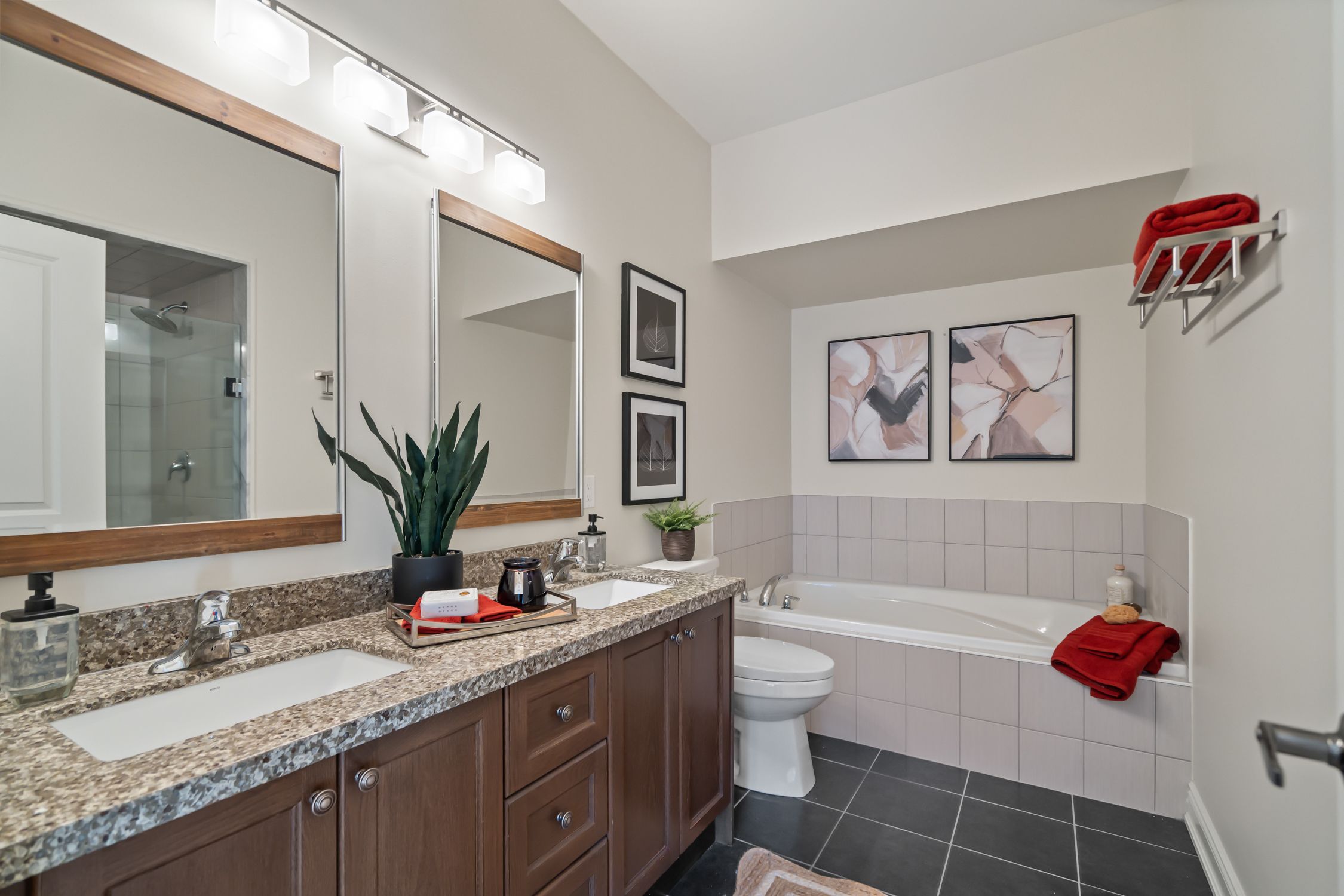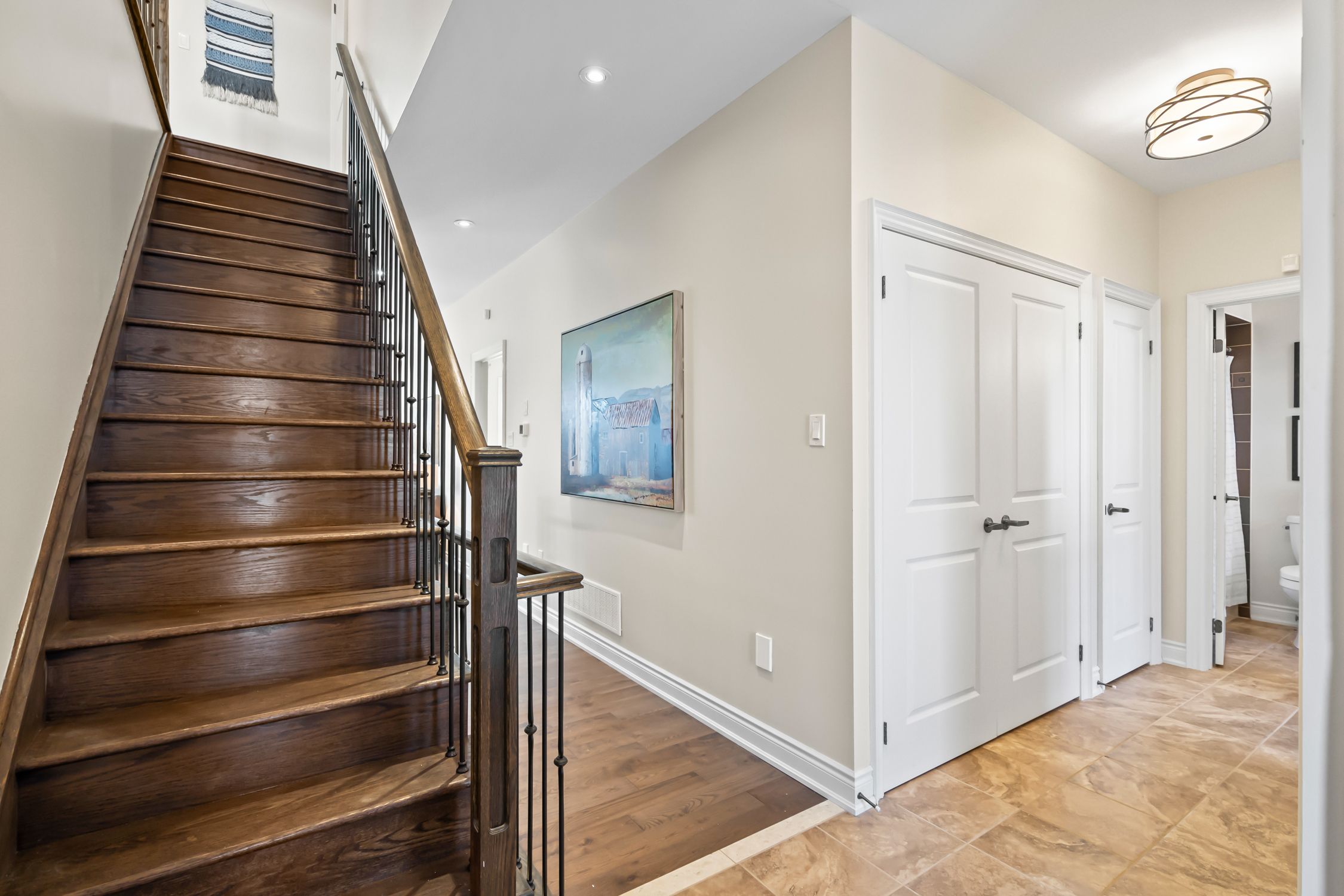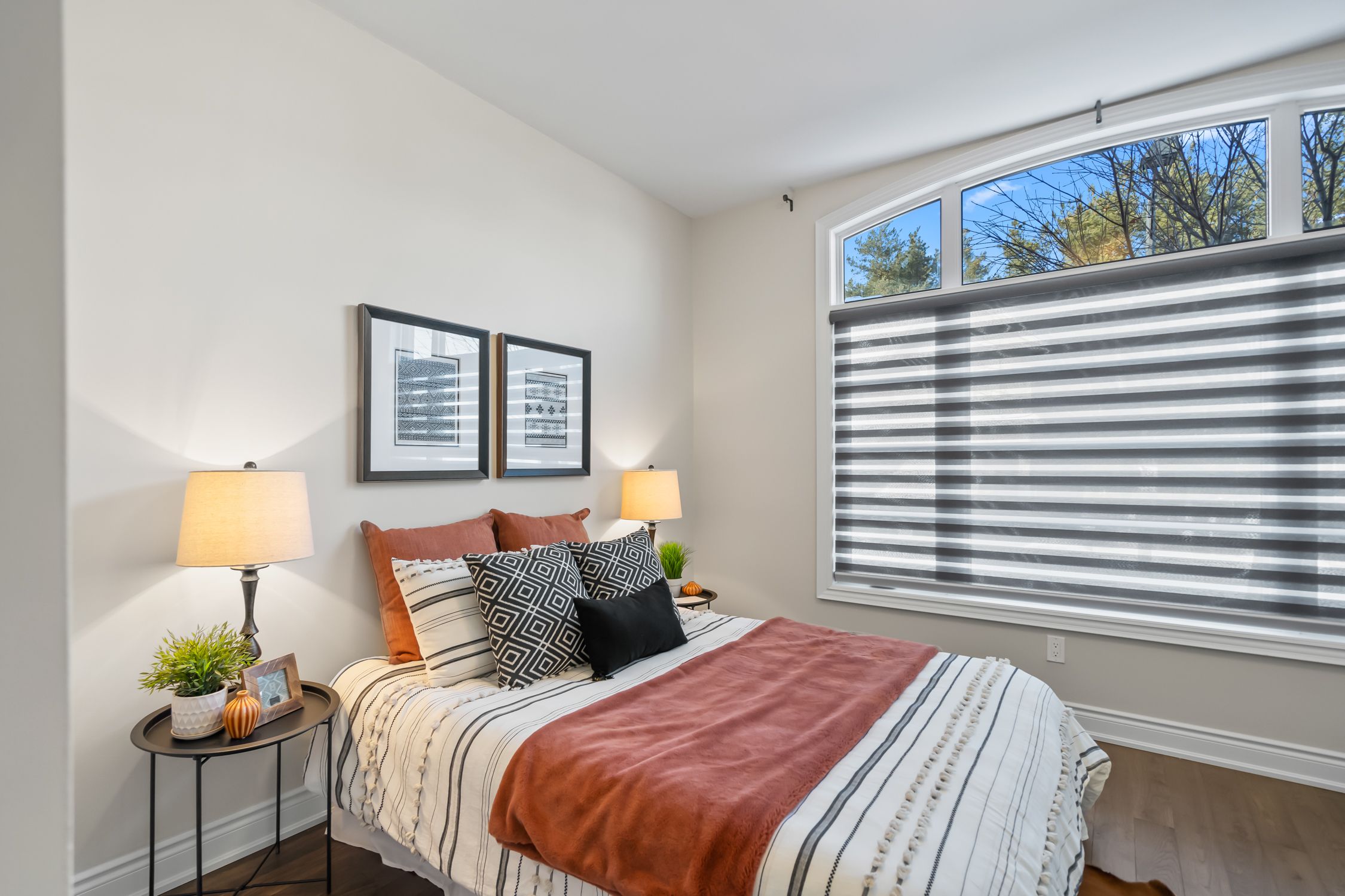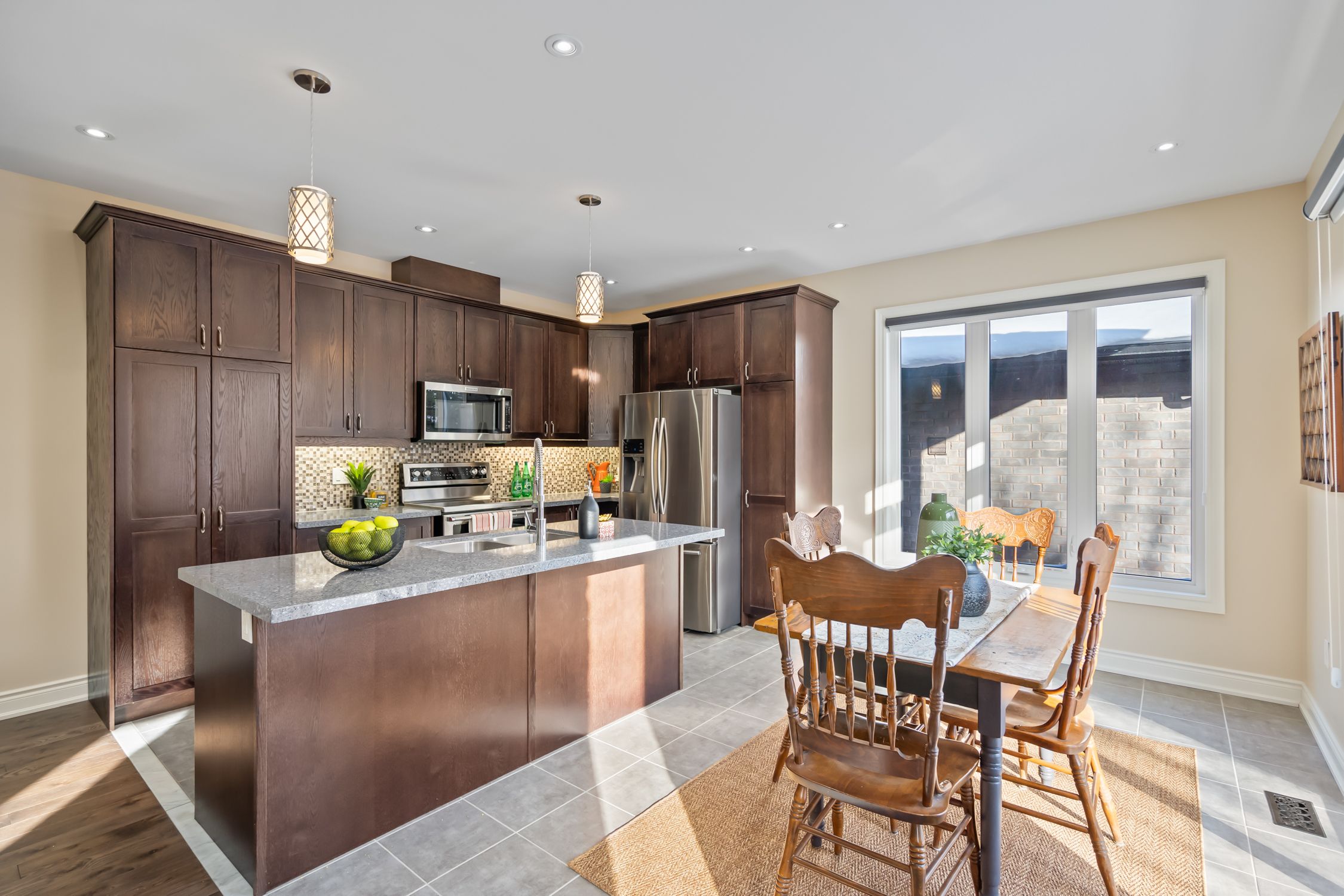 Curb appeal is the first thing you notice with this beautiful 4 bedroom bungaloft on prestigious os james hunt court. With rich red brick and a neutral stone facade, interlock walkway and natural stone steps you are welcomed with immediate warmth. Entering the home you'll appreciate the open concept layout across the back of the house including the living room with gas fireplace featuring cultured stone veneer and framed within 2 large windows, the spacious kitchen with stainless steel appliances and quartz countertops and the dining area which walks out to the deck through the patio slider. The principal suite includes a 5 pc ensuite with built in soaker tub and glass shower enclosure and a spacious walk-in closet with wardrobe. The 2nd bedroom overlooks the front with a gorgeous arched window and has semi-ensuite access to the 4pc main bathroom. Laundry is conveniently located on the main floor while two additional closets provide ample storage for linens and jackets near the foyer. The upper level features two additional large bedrooms with closet organizers and a third full bathroom. The lower level is unfinished, you can visualize the potential with the wide open space and above-grade windows, and includes a rough-in for an additional bathroom. The landscaped backyard features a raised composite deck (permitted 2017 per mpac) and interlock patio seating area which continues to wrap around to the gate and walkway to the front of the house. **extras** potl $286. 94. 57 includes street snow removal and garbage/recycle/compost waste removal - full inclusions to be confirmed with the status certificate.